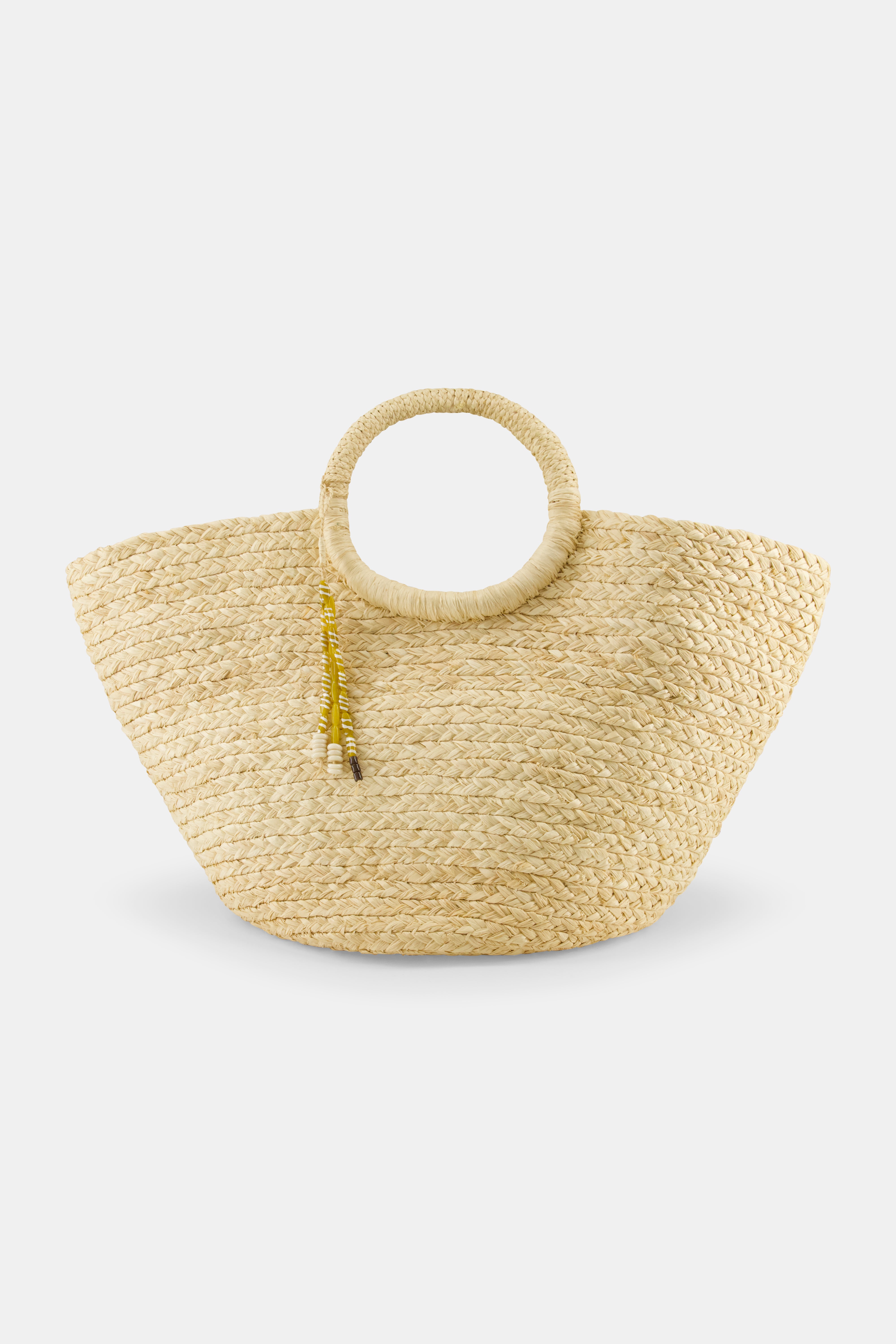 The Mimi Basket bag combines timeless woven charm with a stylish round handle, making it the perfect accessory for sunny days and casual outings.