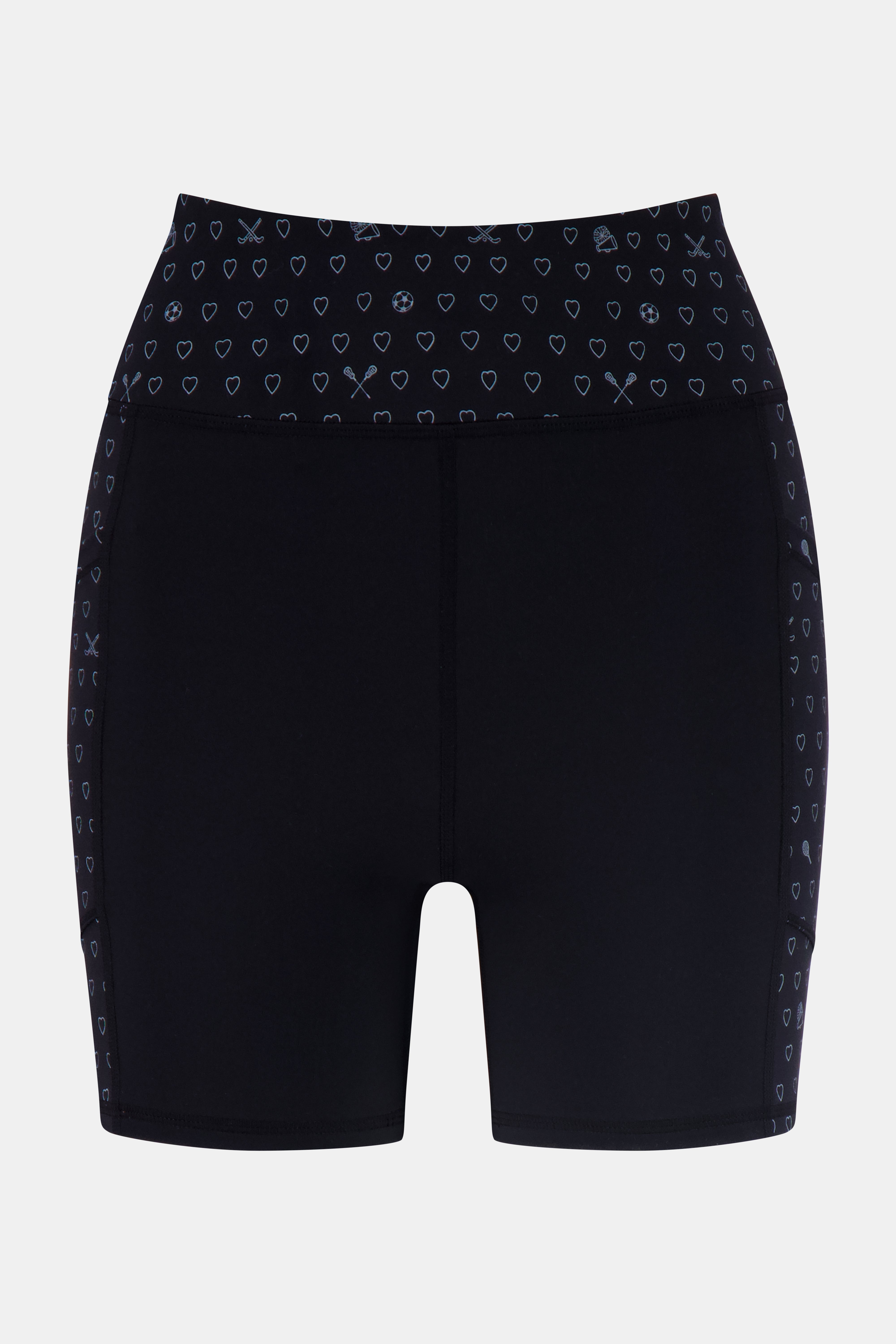 You don't have to be working out to wear the Kyla Bike Short, but they're a great gym buddy. They're stretchy and supportive with light compression. Elevate simple black shorts with the cute, colorful Sporty Hearts print.