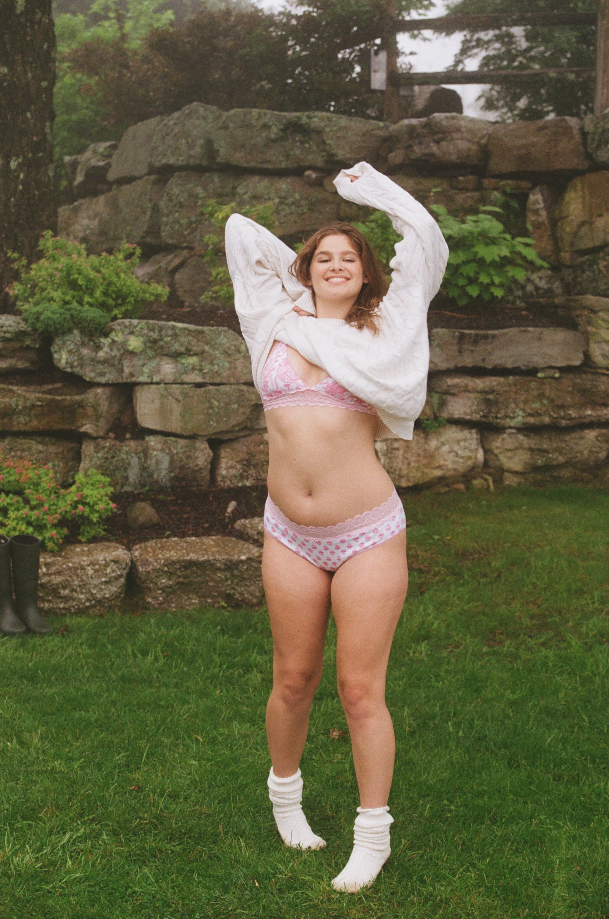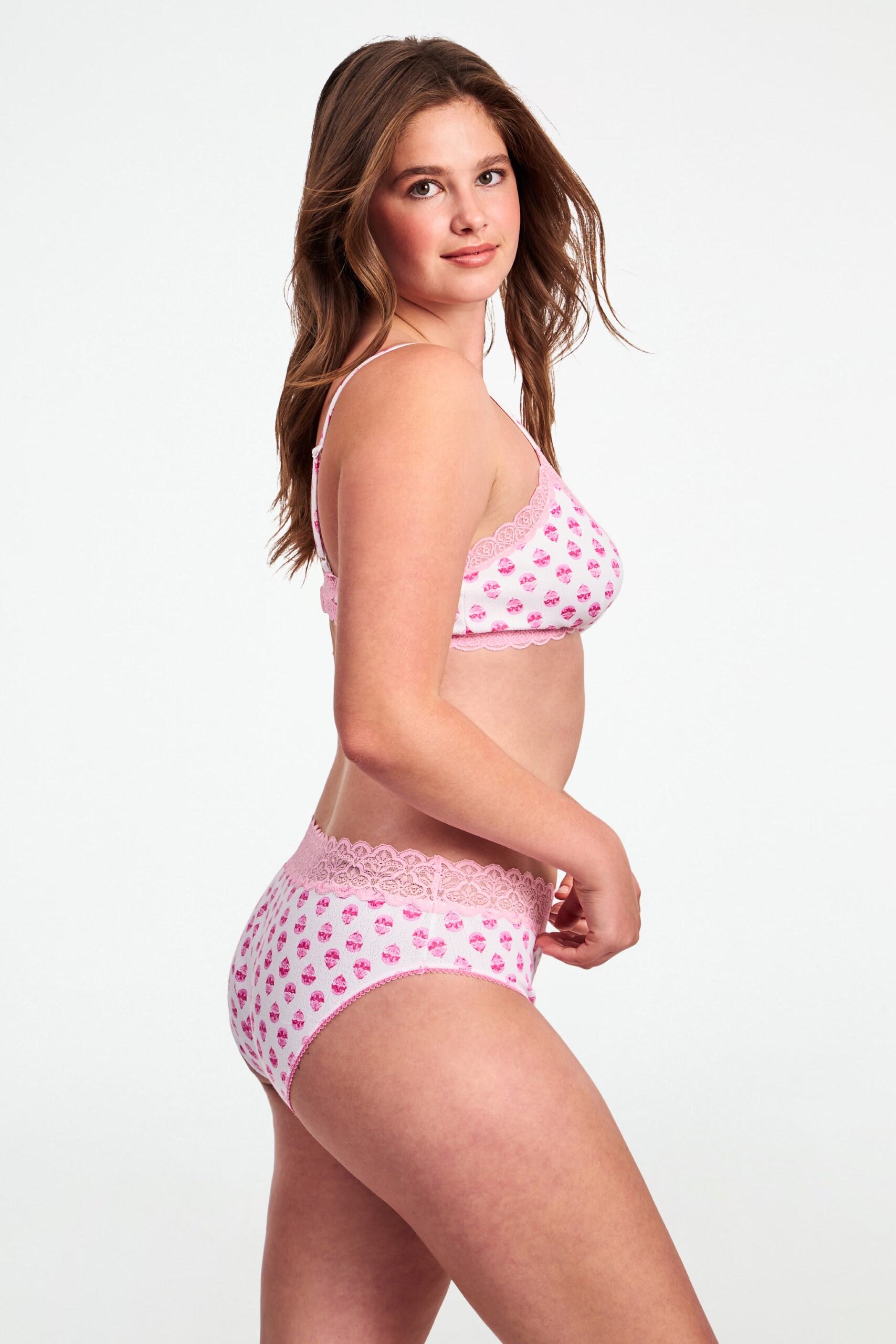Cute, comfy, and made of the softest Pima-modal cotton, the Cornelia Hipster is a full-coverage bottom in a sweet pink and white Ditsy Daisy print with a pastel pink waistband. Pair it with the matching Jane Bralette.