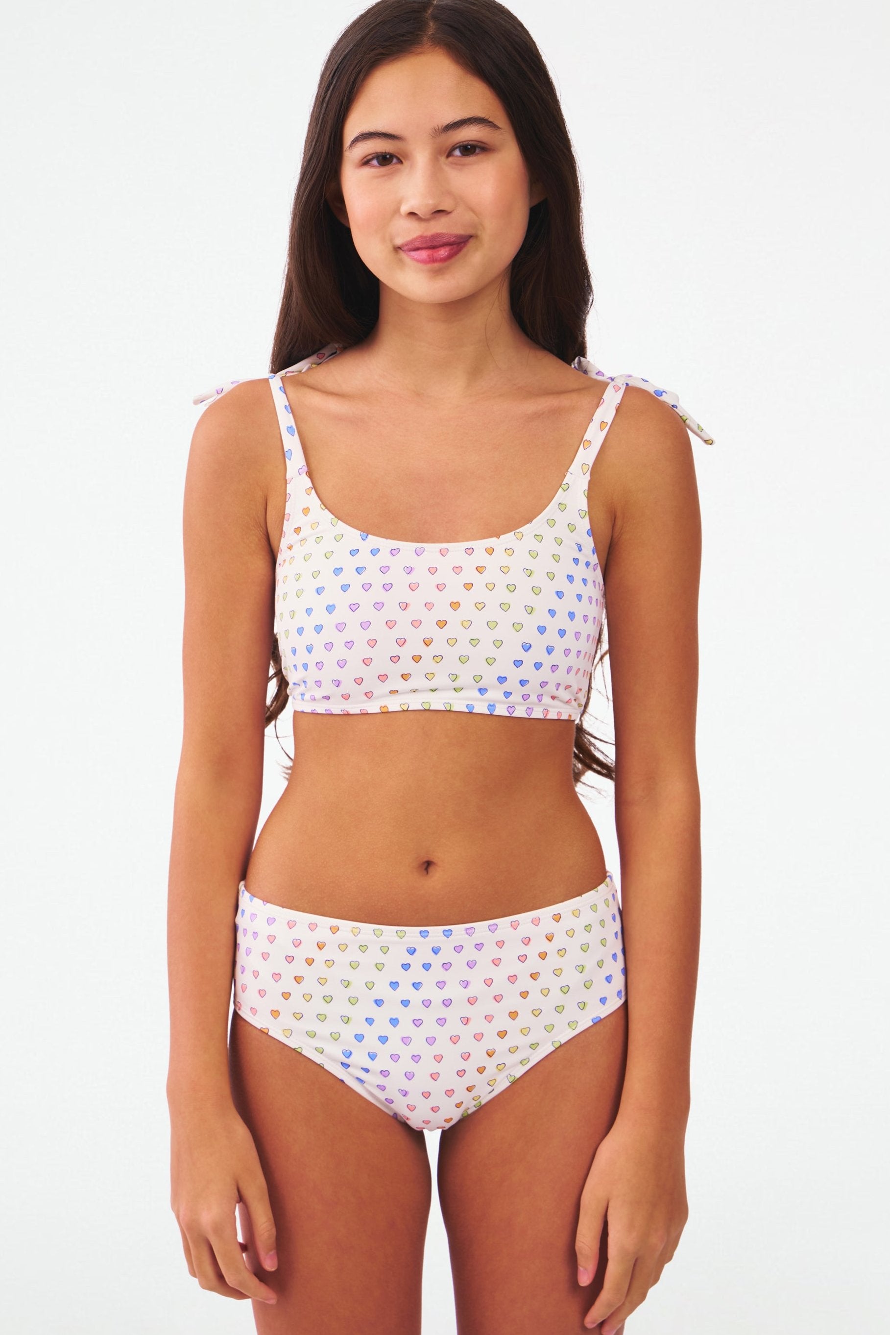 Ready for swimming, sunning, and splashing. The Kid's Cora swimsuit is a two-piece set with adjustable shoulder ties for a comfortable fit, and she'll love the sweet, classic, colorful print.