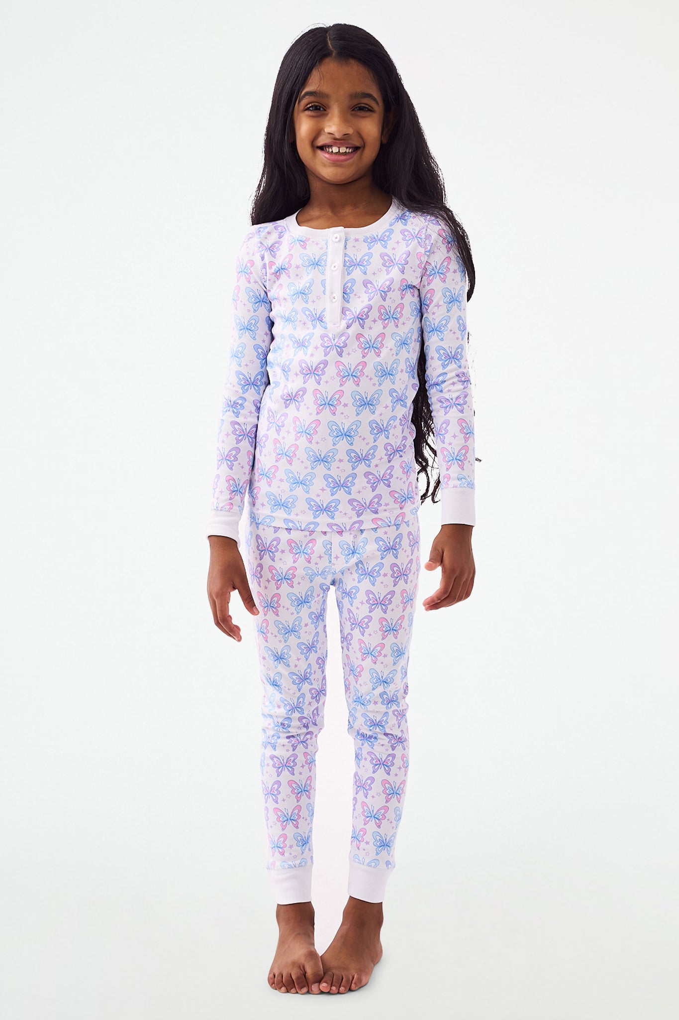 Flutter away into peaceful dreams, little one! Dazzling pink, lavender, and blue butterflies float across our signature super-soft pima PJs.