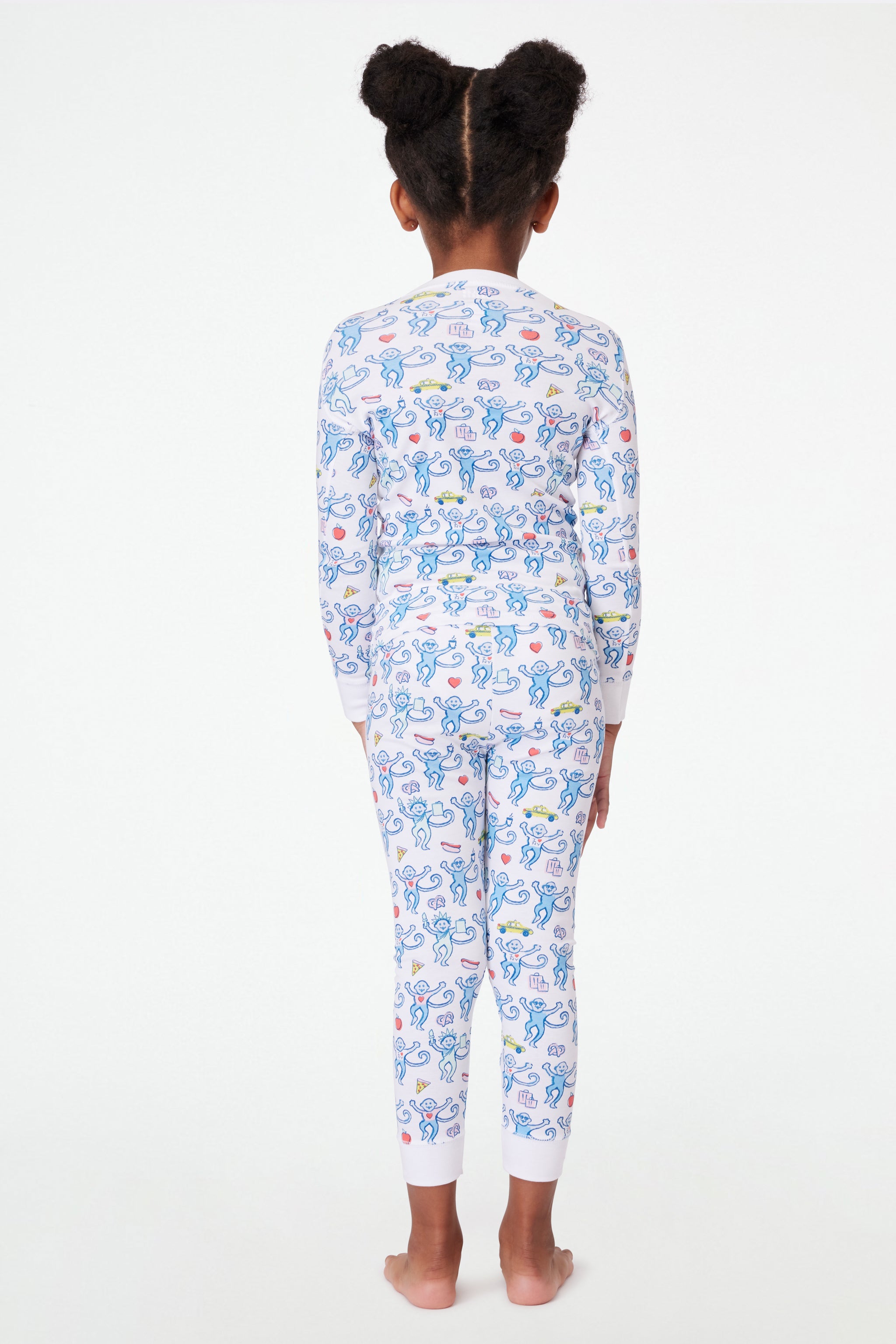 Dress your little New Yorkers in scenes from the Big Apple. Our signature monkeys take a trip to the greatest city in the world and enjoy hot dogs, shopping, and sightseeing. Your child will love the soft cotton fabric and cheeky print.