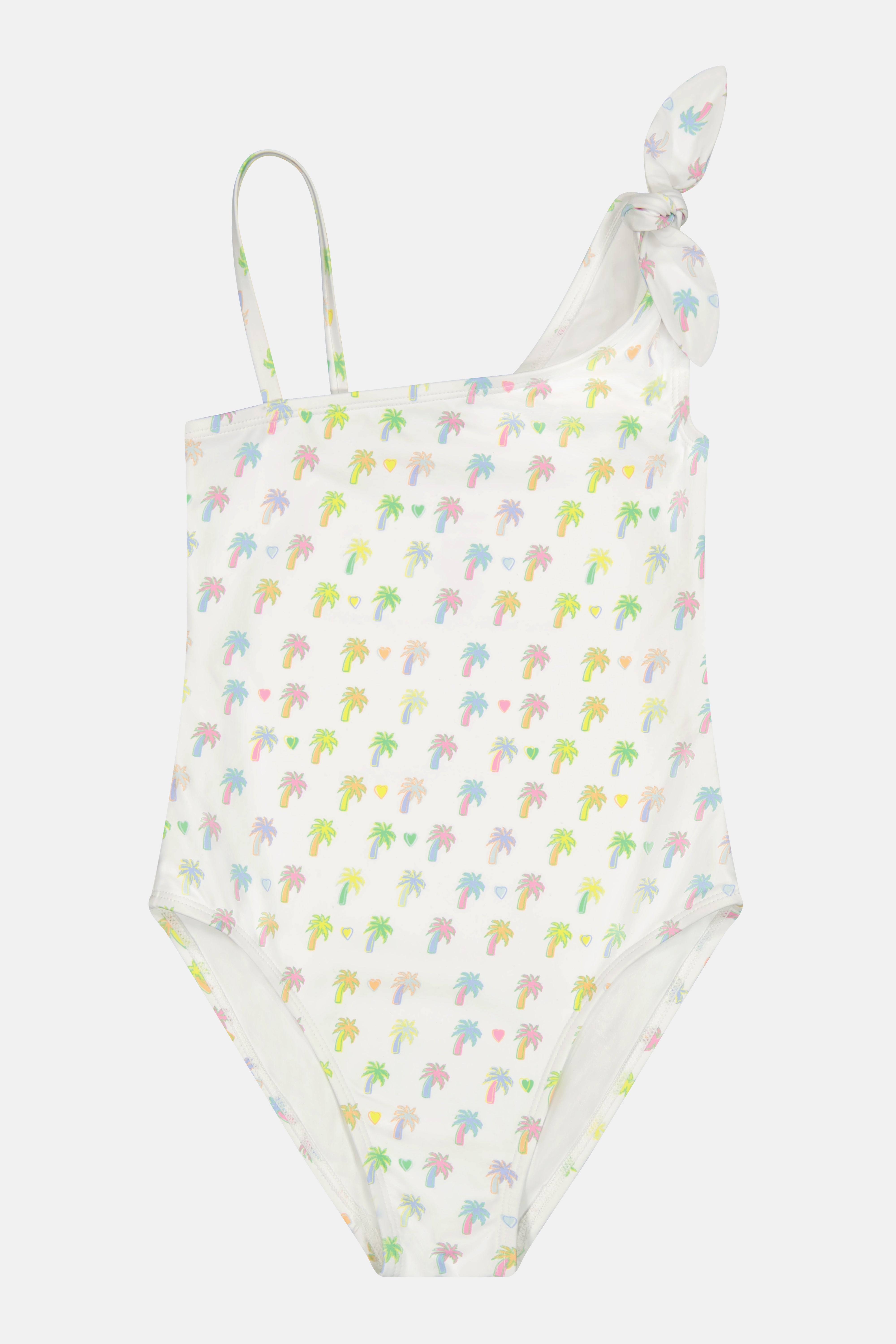Dive into summer fun in the Kids Jacey One Piece, a sweet suit styled in our pastel Palm Dreams print. The asymmetrical neckline features a slim spaghetti strap on one shoulder and a cute adjustable tie on the other. The Jacey One Piece is perfect for swimming lessons, beach days, and running through the sprinkler in the backyard.