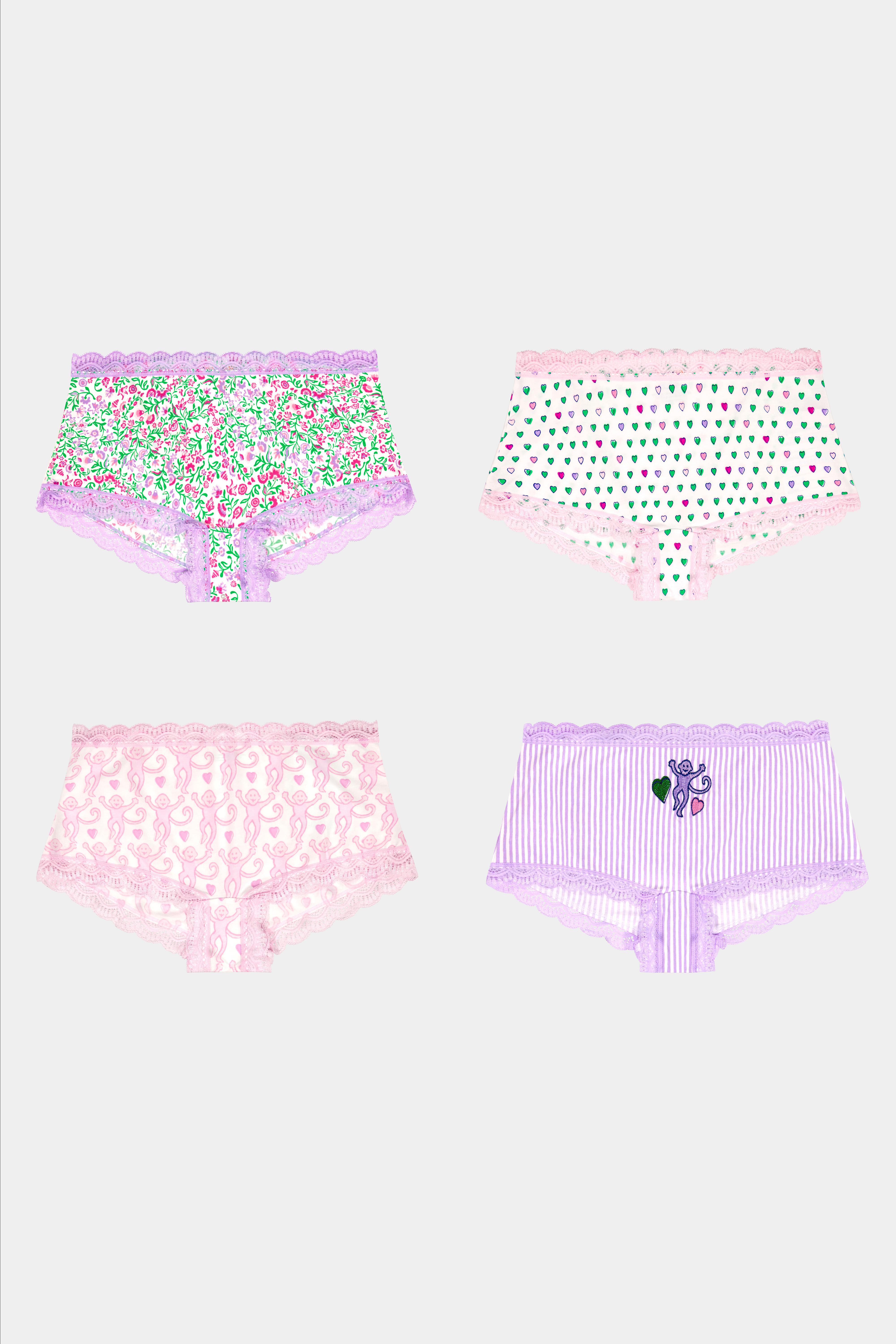 Boyshorts are practically the definition of comfort, especially when they're made with ultra-soft, breathable cotton modal. Choose between sweet pastel prints or our signature Disco Hearts and monkey motifs.