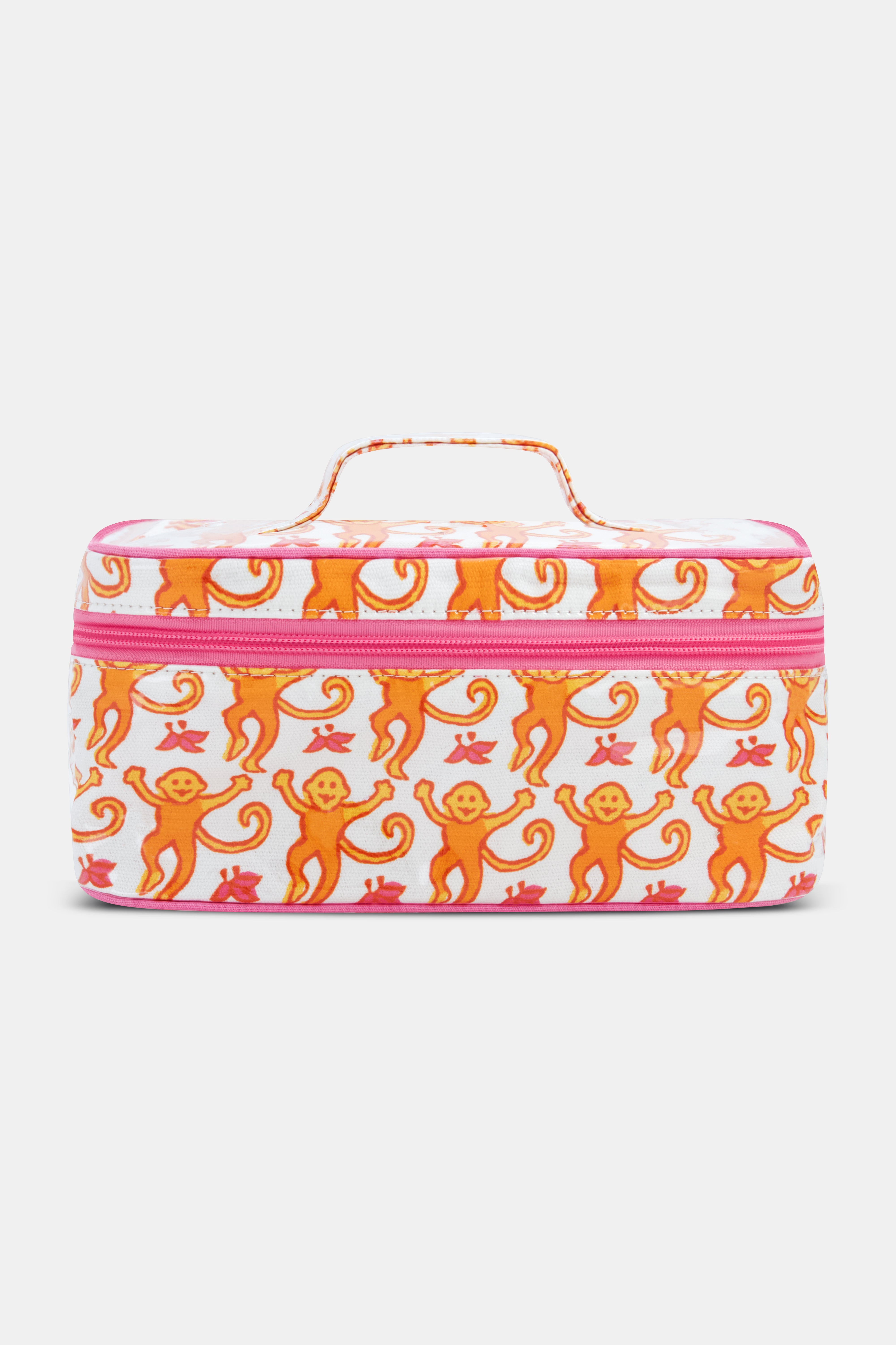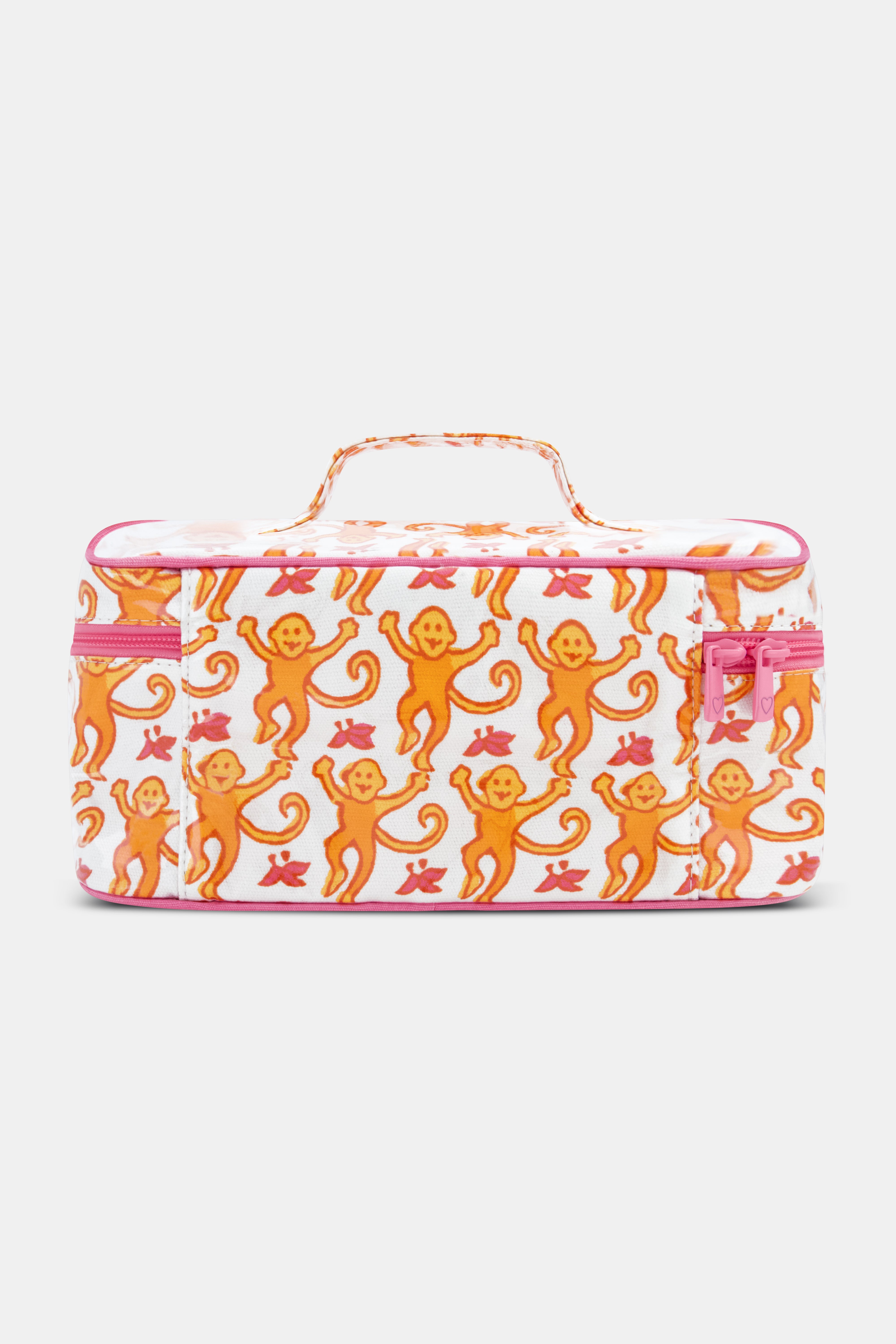 Packing will become leisurely rather than a chore with the Monkey Carryall Case. This is the perfect travel companion for all your bulkier items; hair appliances, vitamins, and chargers... it can fit them all! Featuring a zipper closure and water-resistant polyvinyl-covered canvas, this carryall will be your new best friend.