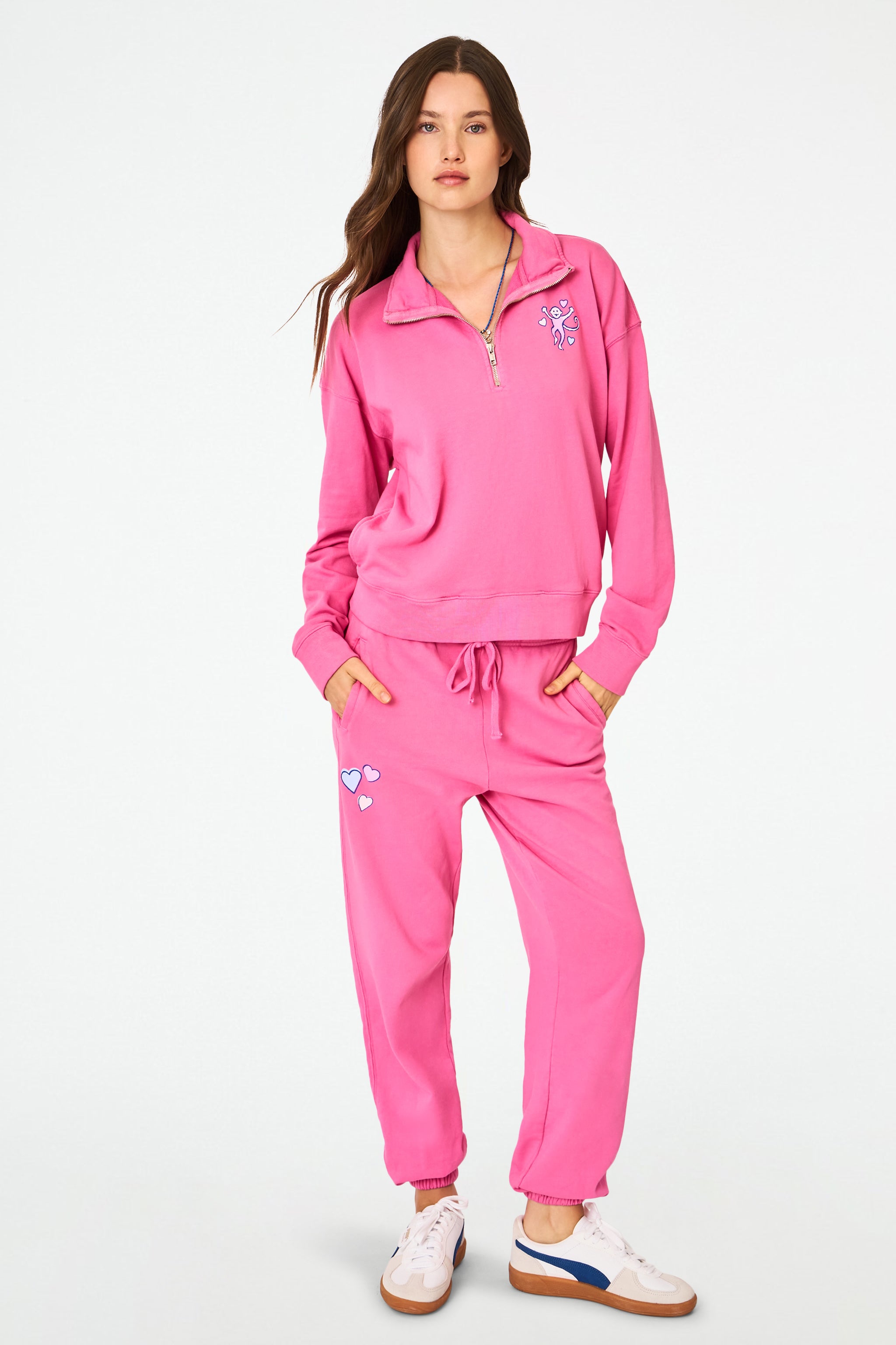 Whether you're heading to class or running out for coffee, get comfy and cute in the Half-Zip Sweatshirt, embellished with a sweet monkey logo near the collar. The punchy berry pink color elevates a day-off outfit, and soft cotton fleece keeps you cozy on chilly fall mornings.