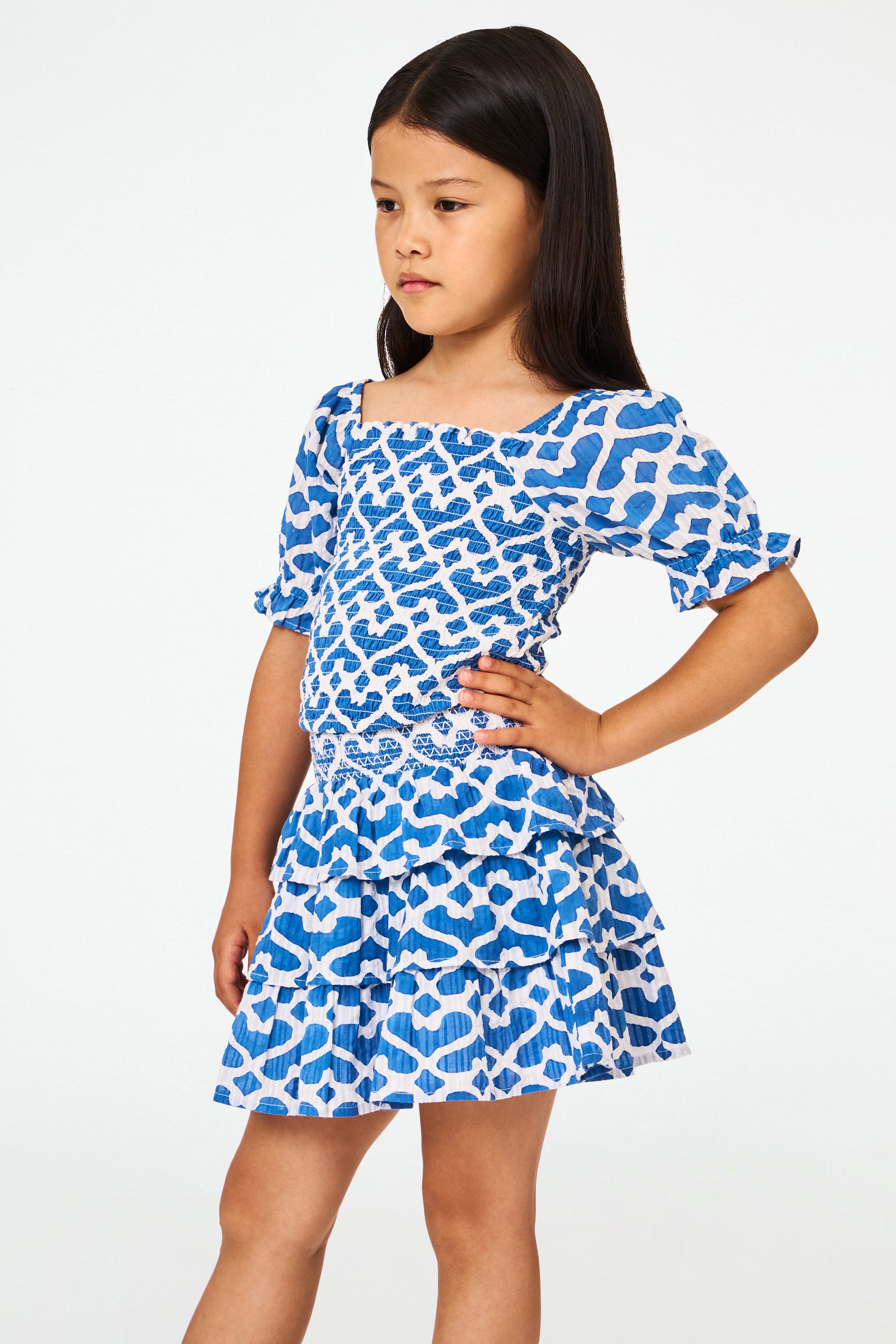 The Kids Sami Skirt is a back-to-school must. Wear this short, tiered skirt now with bare legs and sneakers or sandals, then add tights to warm it up for cooler days. The pull-on style has a smocked elastic waistband for comfort and looks both classic and vibrant in our blue-and-white Big Cata print.