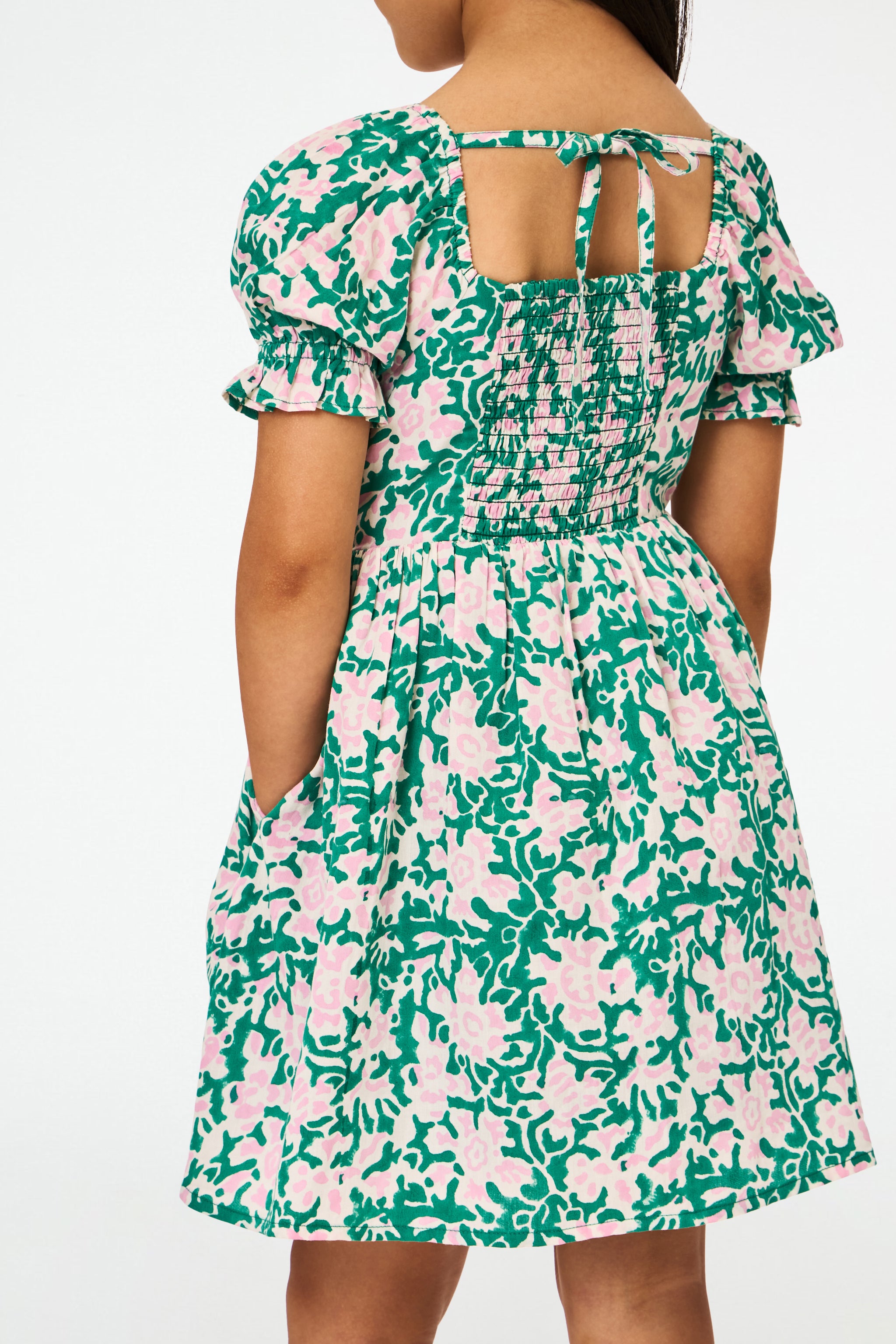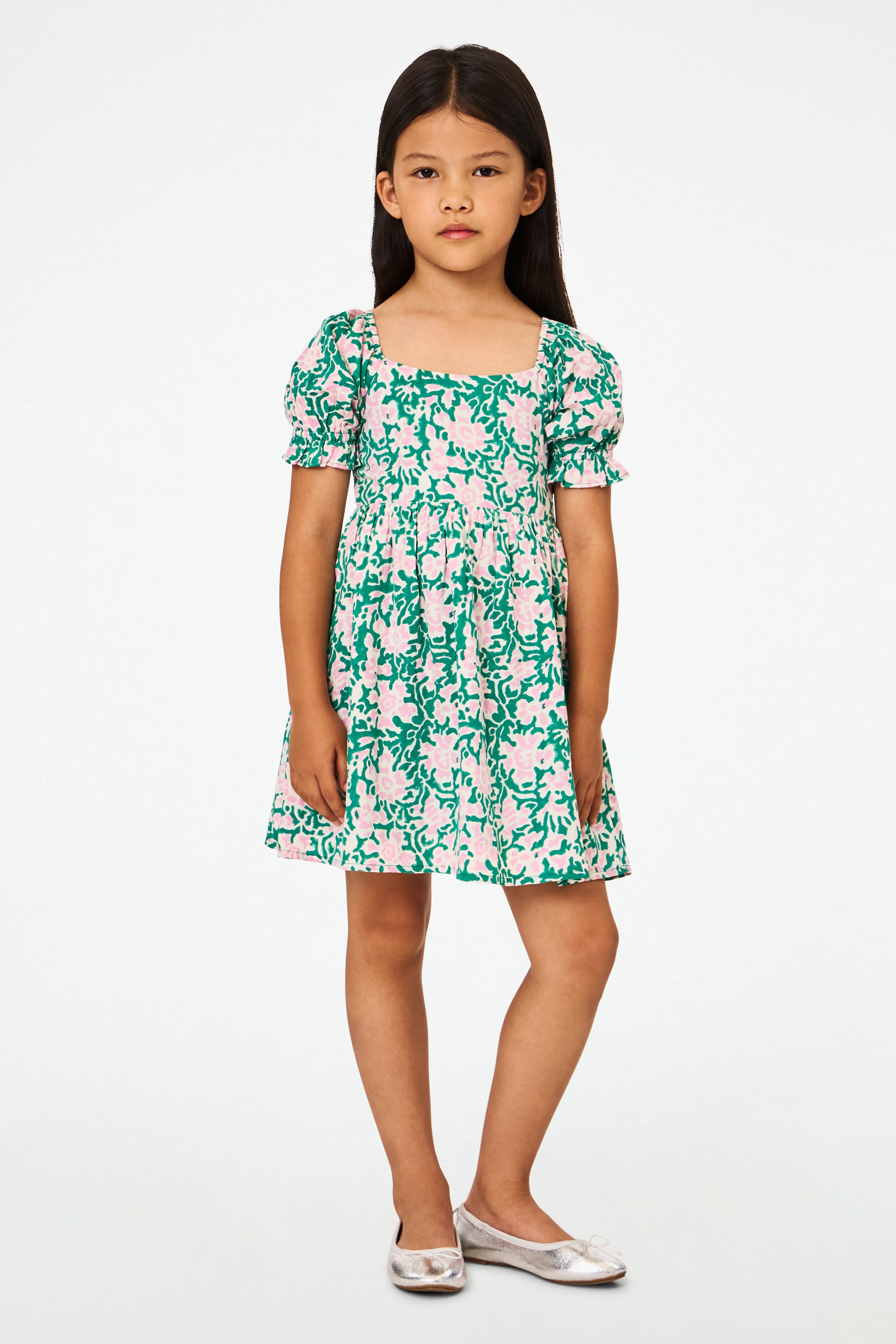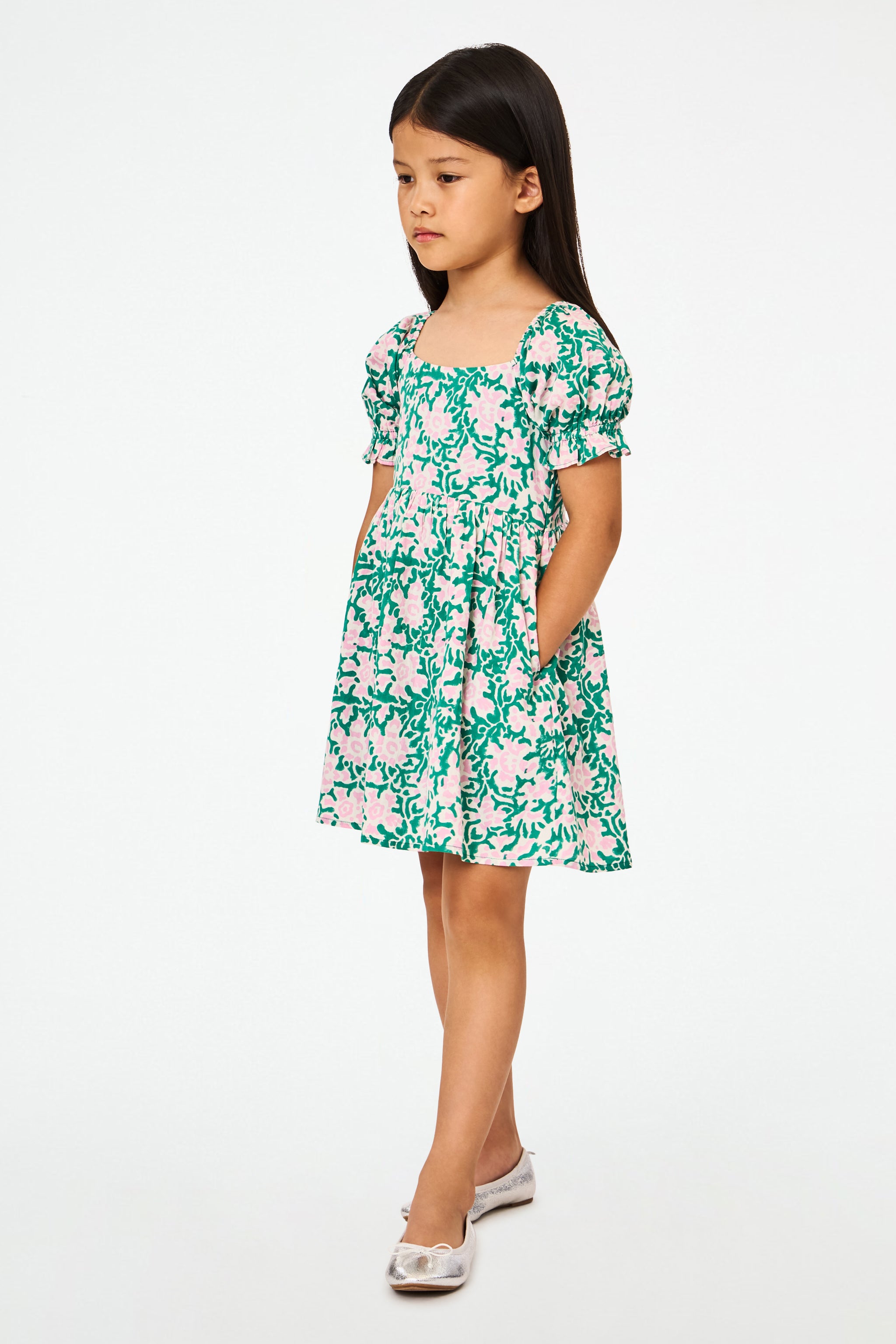 Preppy with a twist. Our Kids Nancy Dress is just dressy enough for fancier occasions, thanks to its satin batiste cotton fabric and pretty green-and-pink floral print, but you can easily toss it in the wash once playdates and parties are over. The pullover dress has long sleeves, an invisible side zip, and pockets so she can stash all her favorite things.
