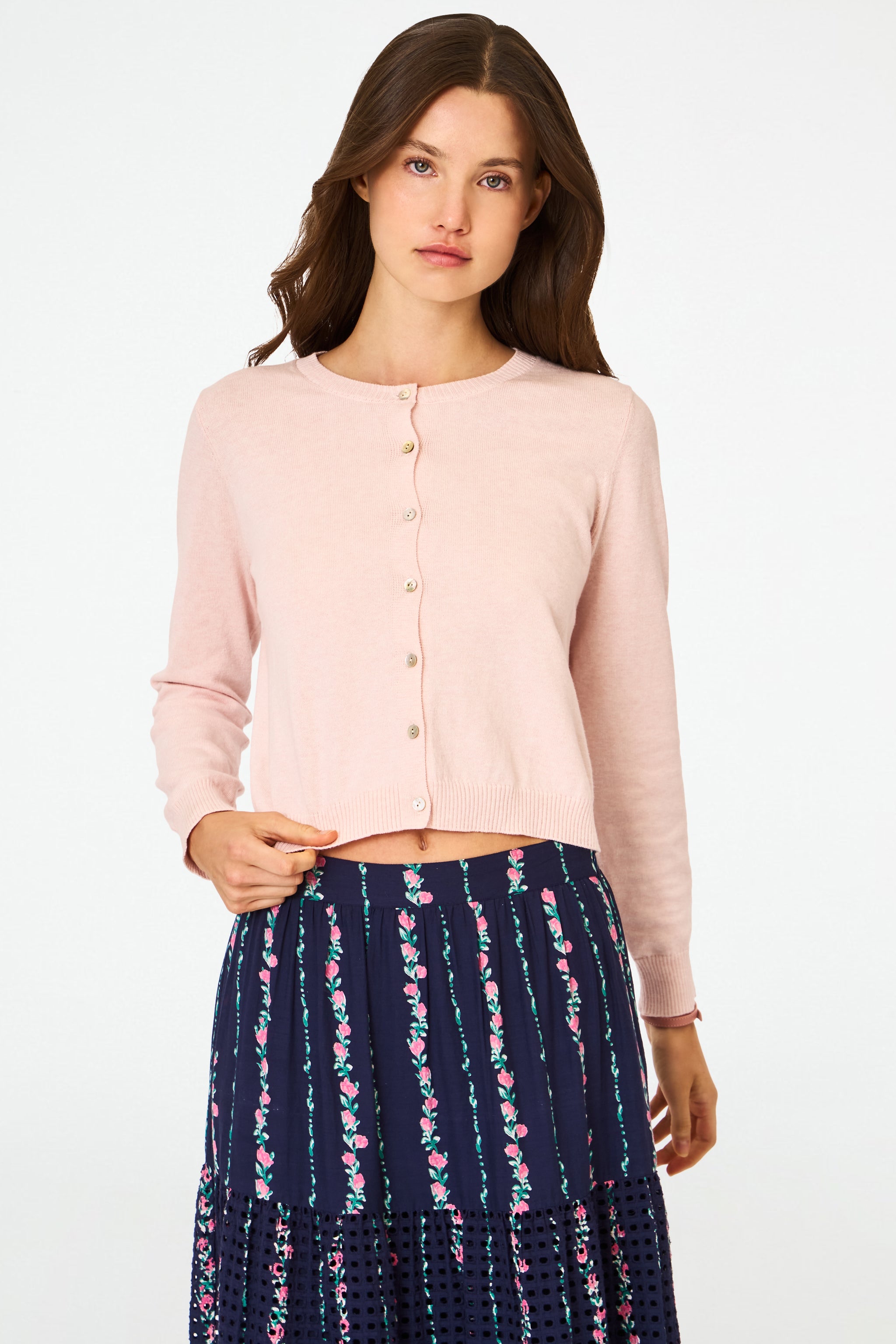 You'll be wearing the Moxie Cardigan all season long. Made of a cotton-cashmere blend, this pretty pastel cardigan has a classic silhouette with a crew neckline and button front. It's the perfect summer-to-fall transition piece—layer up for chilly mornings (or office AC), then switch to your sundress or tank when the weather warms up.
