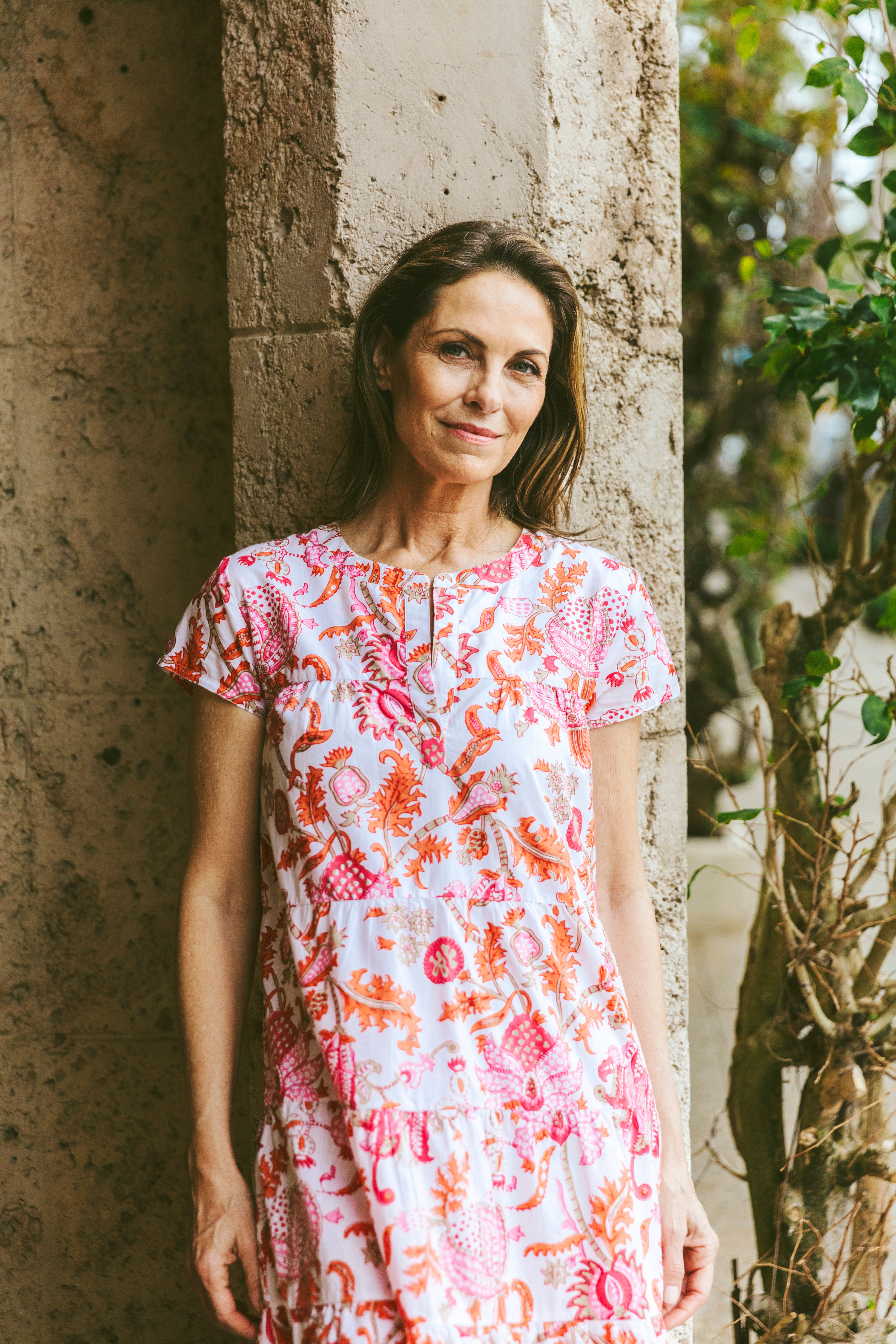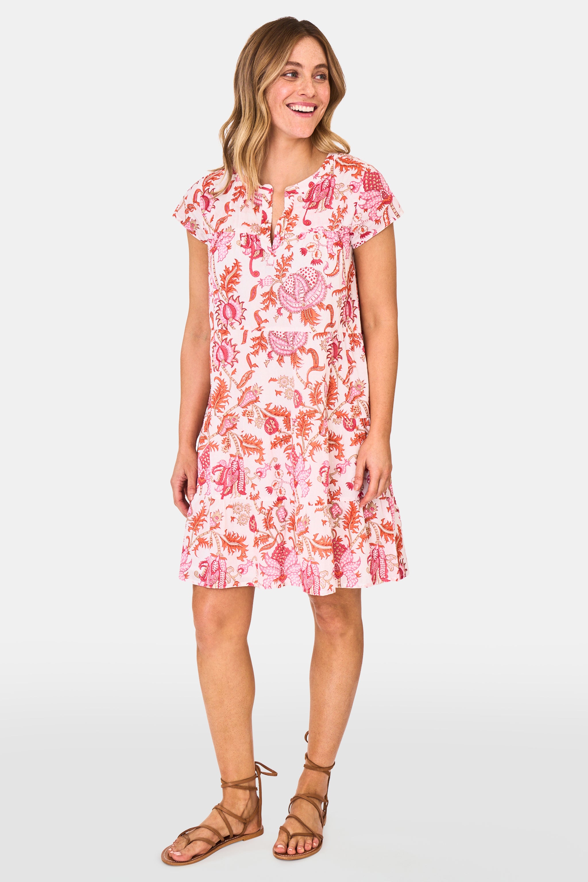 Brighten up everyone's day in the Pamela Dress, a short-sleeved, tiered cotton dress in summery orange paisley. It's the perfect everyday, anywhere dress that'll get you through the warm months.