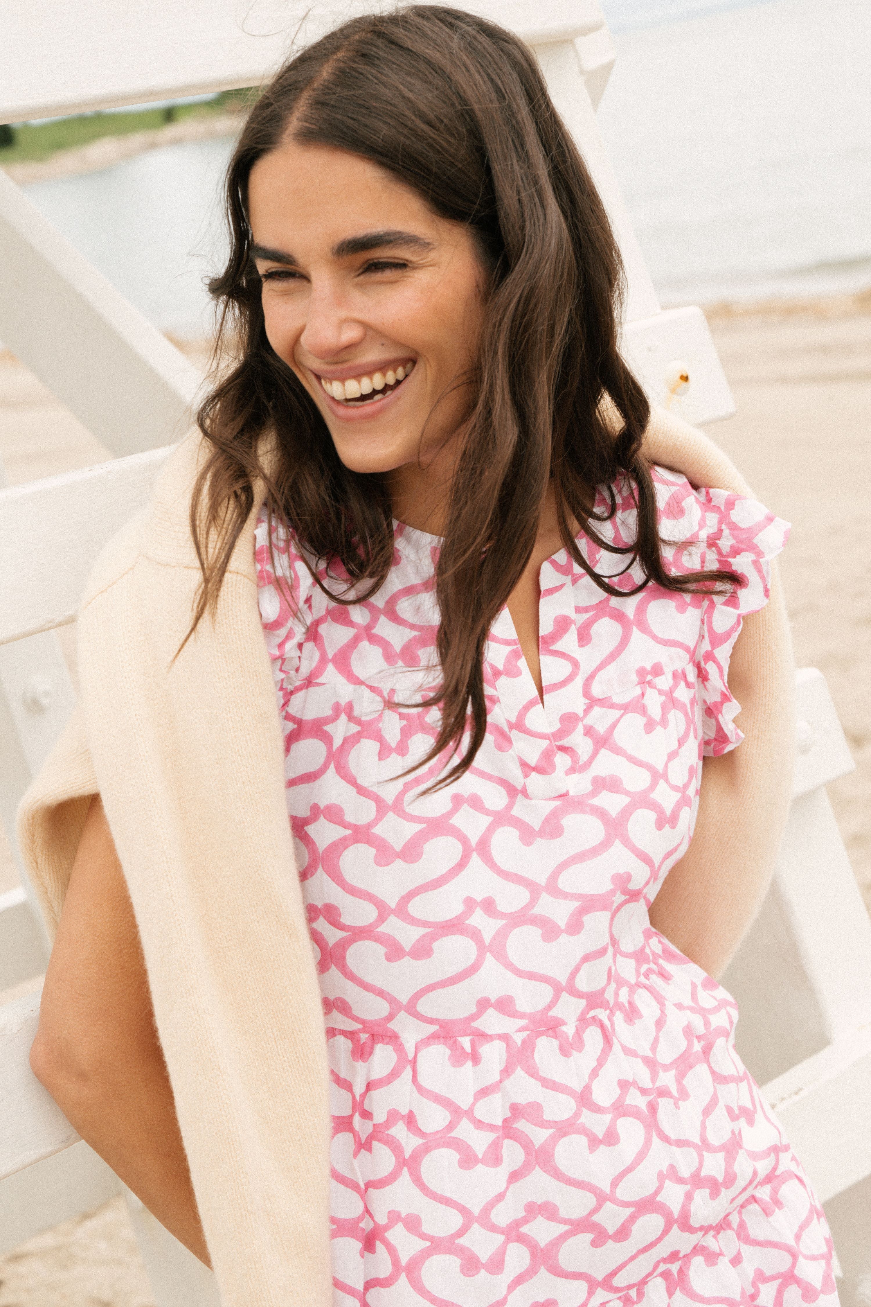Our bestselling short-sleeved dress is an absolute essential, especially in lightweight cotton voile. A pop of pink is both sophisticated and fun — just how we like it!