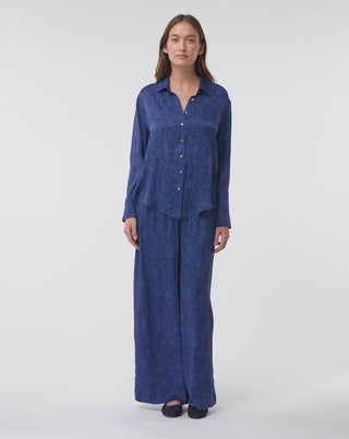 Silk pants without all the fuss? Believe it! Our Paige Pants are a wide-leg style with an elastic pull-on waist, made from the richest washable silk. The jewel-tone navy pants can be paired with the matching Boyfriend Shirt or mixed and matched with the rest of your wardrobe.