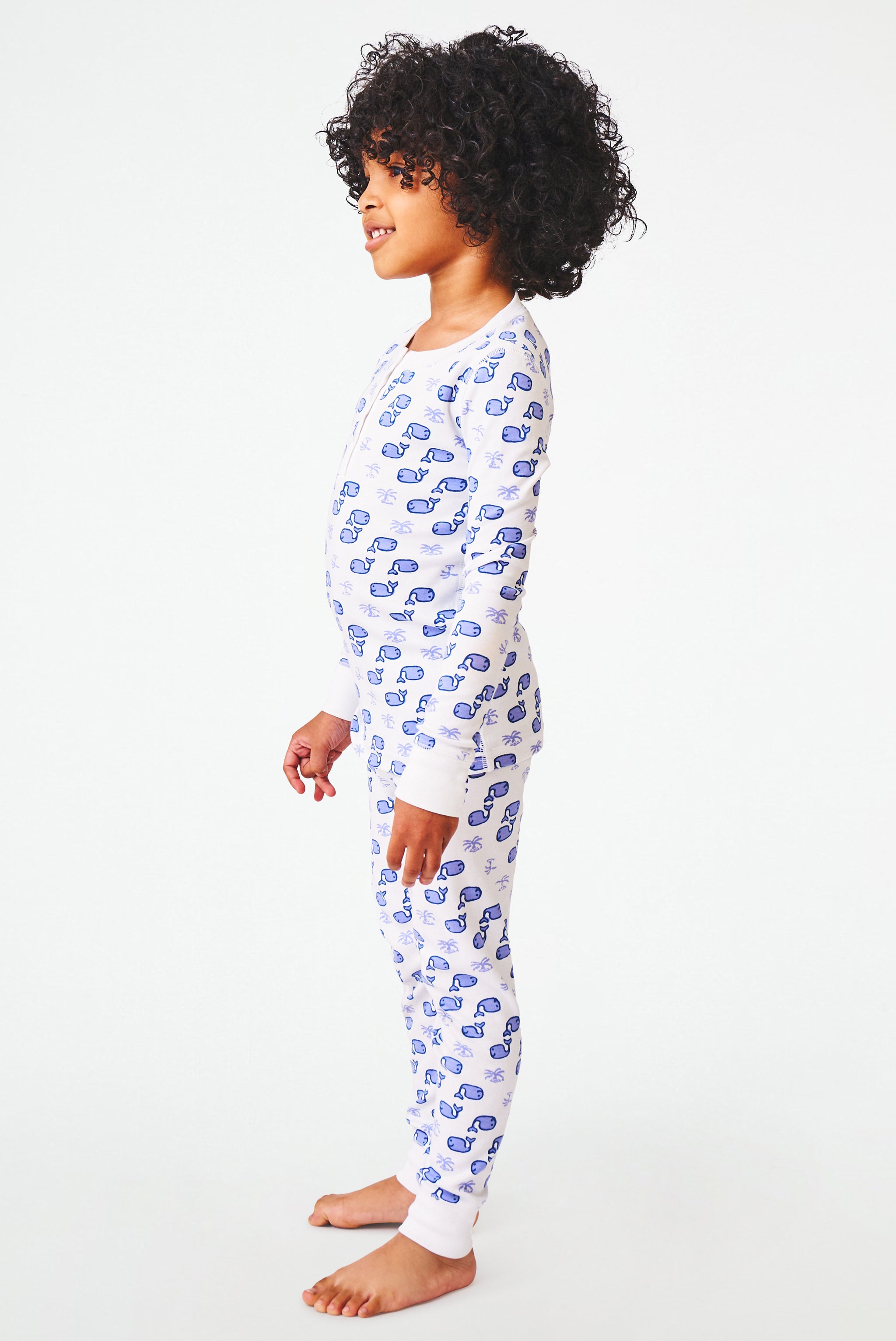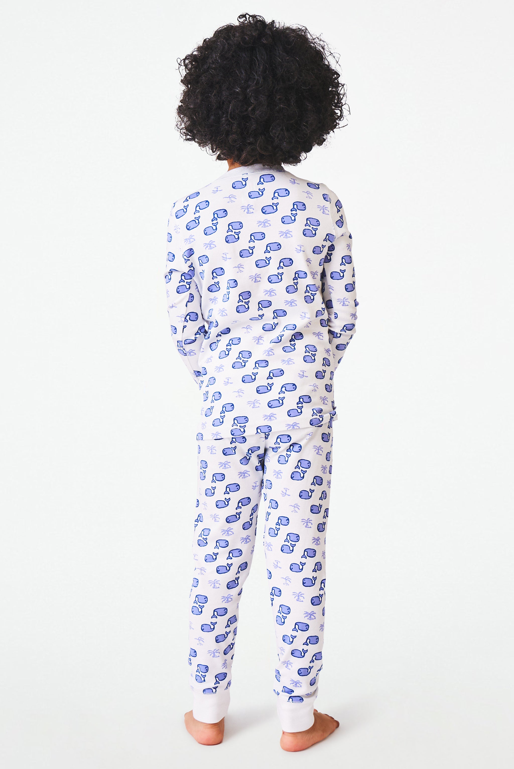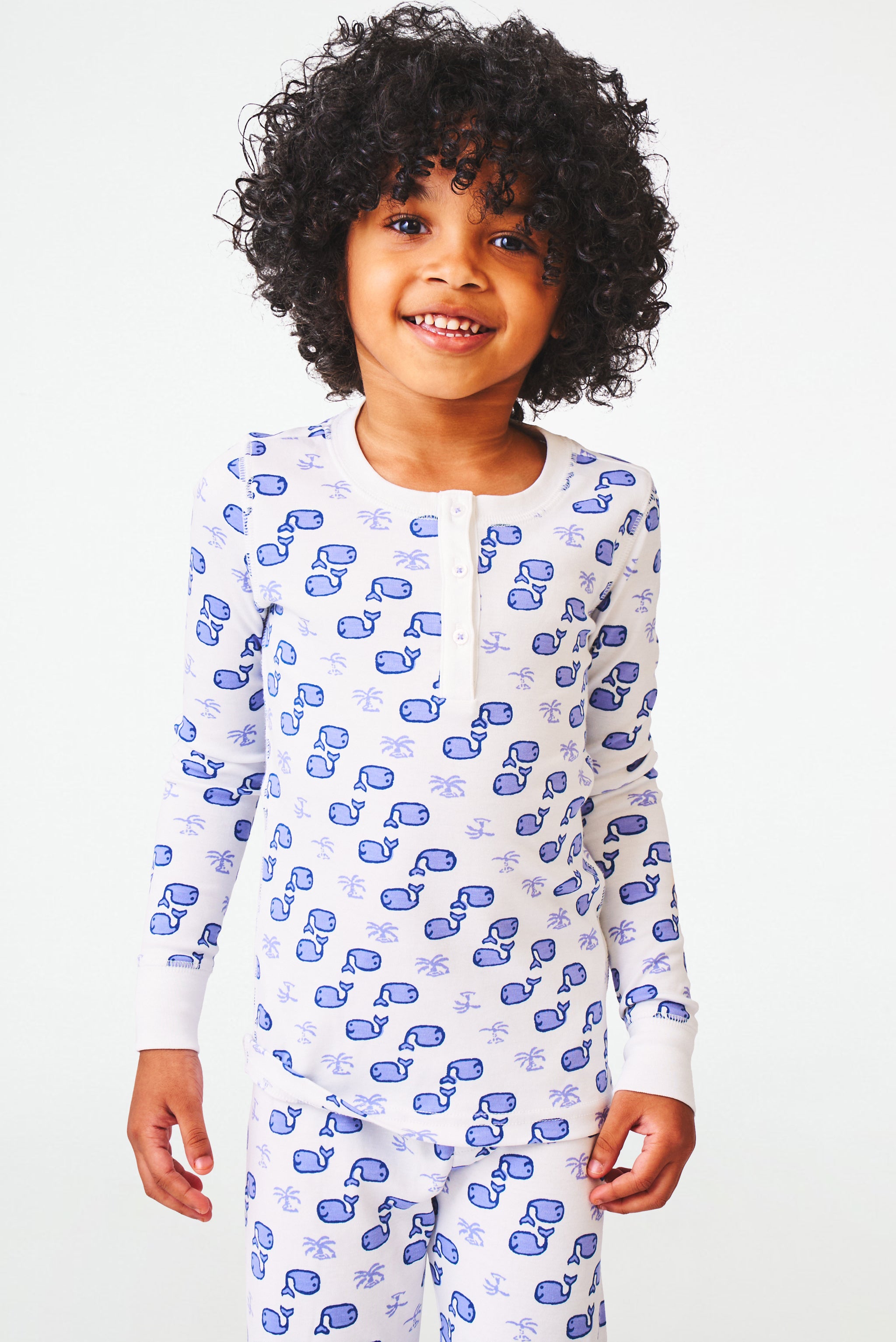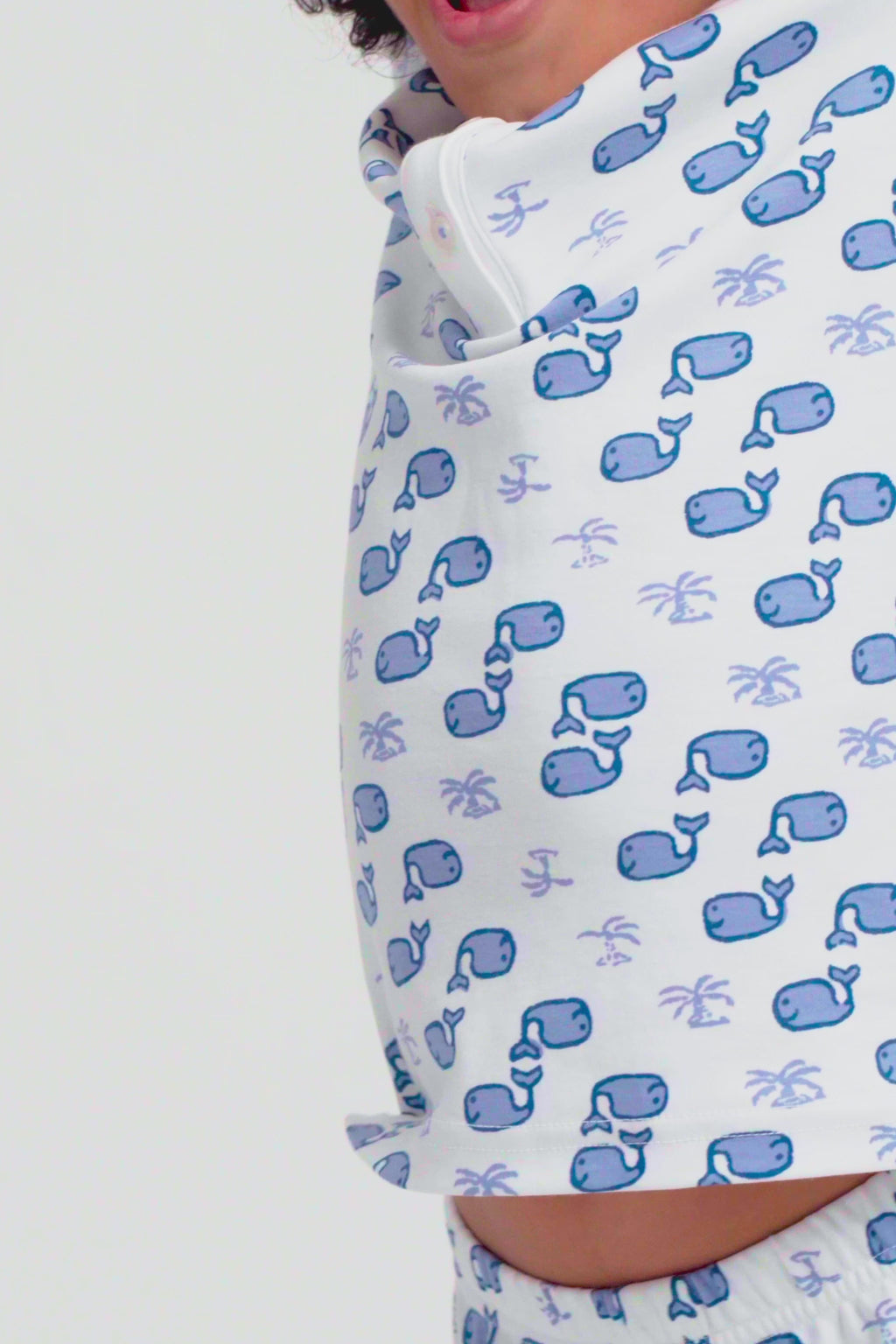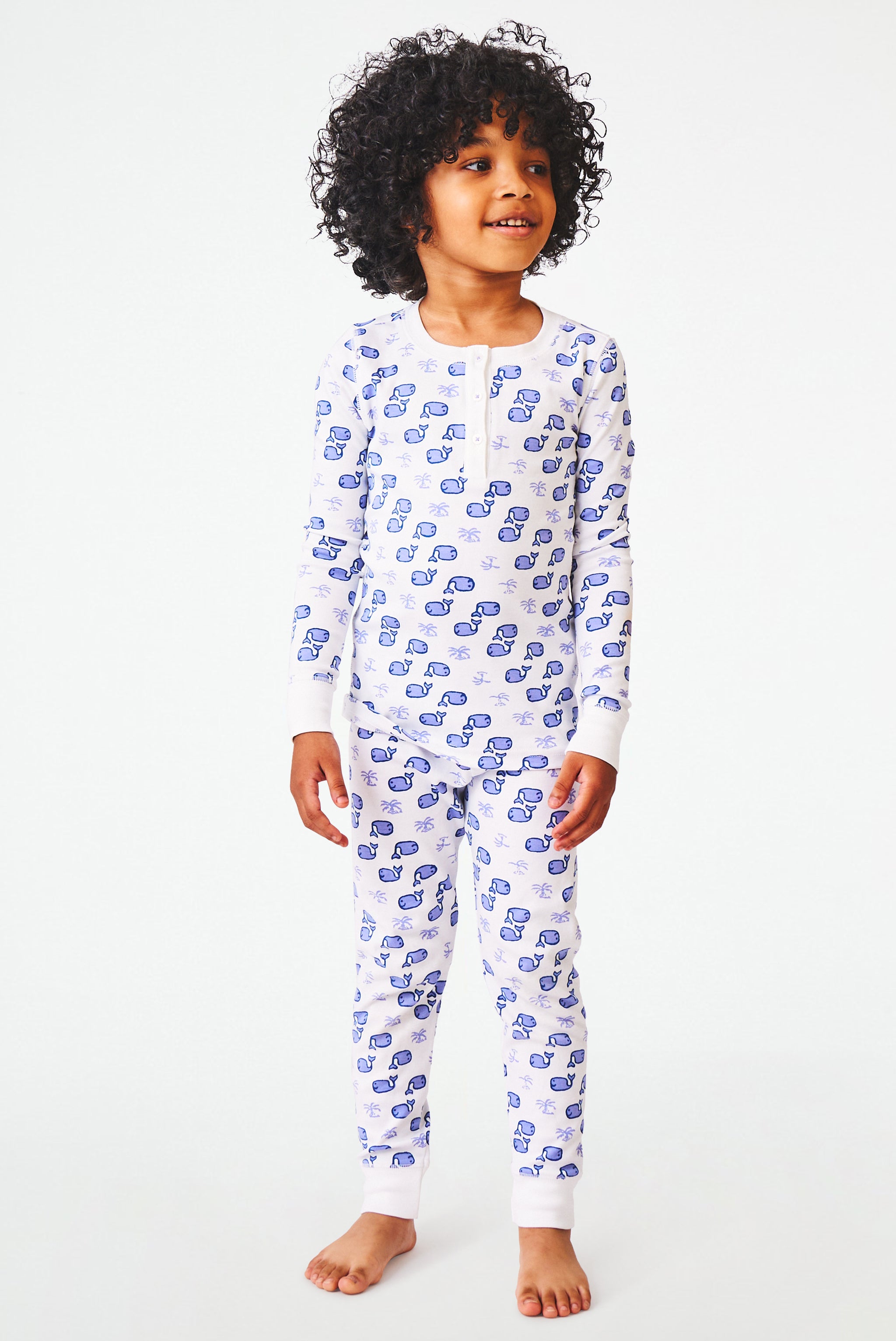 Your little one will enjoy the cozy comfort of our Moby Pajama Set that includes a long-sleeve pajama top with a button-up neckline and our charming original Moby whale print, plus matching pajama bottoms.