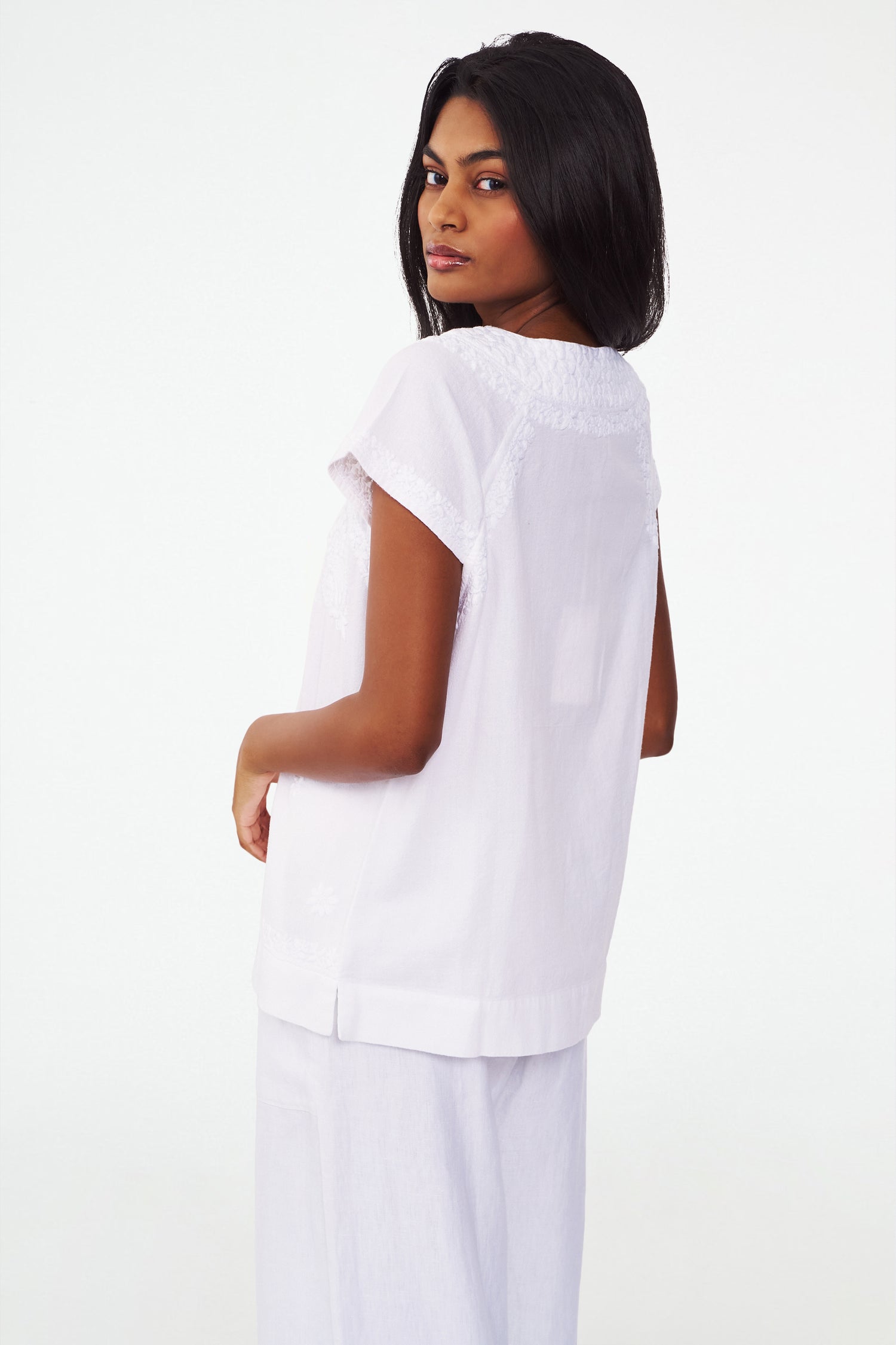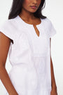 Intricate embroidered details on this cotton Faith Top give it a fancy feel that elevates a simple pair of white jeans and sneakers. This classic Roller Rabbit top stops at the hip, has short sleeves and a split collar.
