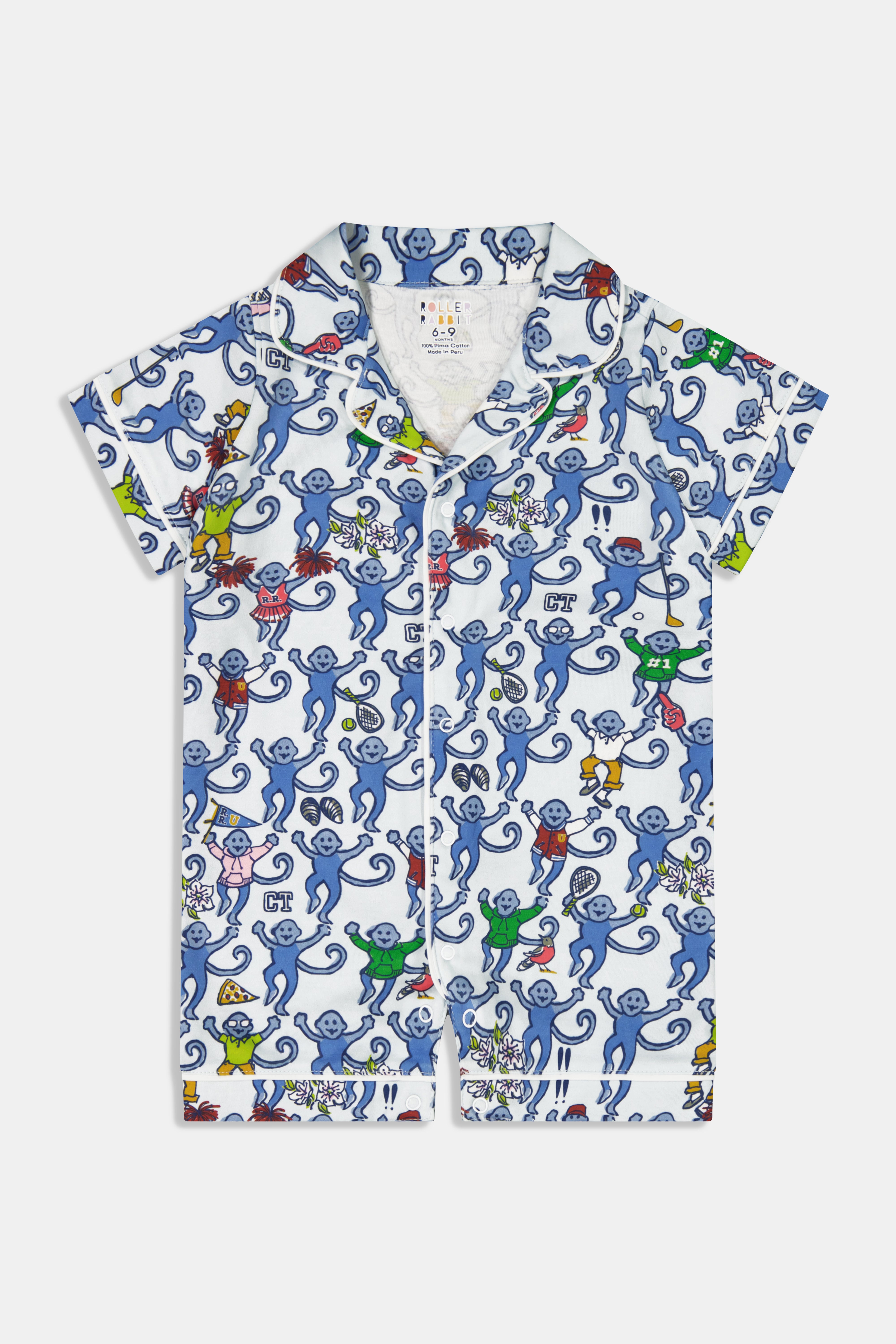 Baby's favorite monkey is showing CT spirit! Your little one can match the rest of the family in the adorable polo neck shorts onesie covered in Connecticut's fave Roller Rabbit monkey. Soft and breathable Pima cotton keeps them cool and comfortable and snap closures make changes a breeze!