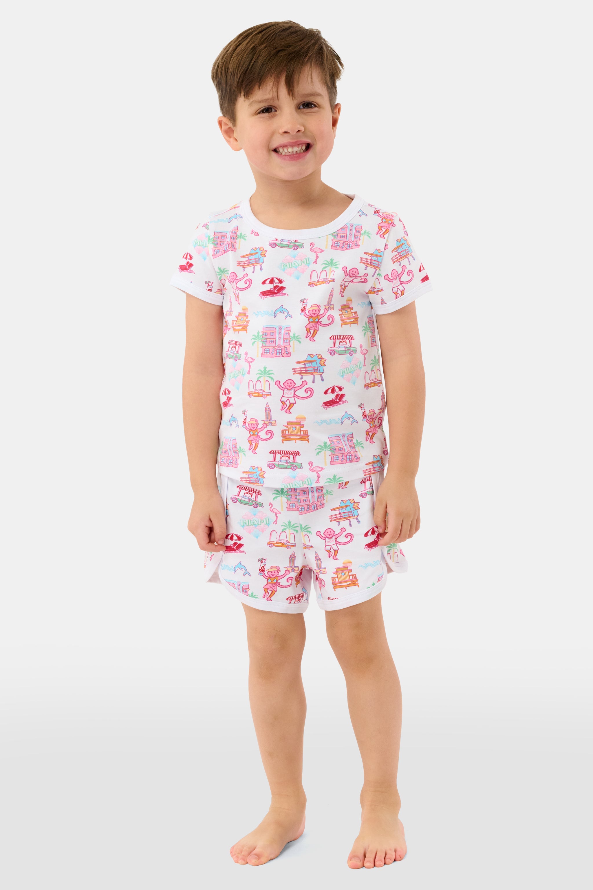 Making sandcastles just got a whole lot cuter. Pack our Kids Playa Set for your next beach vacay and let your little ones play and explore in Pima cotton comfort—and a cheeky, colorful Miami Monkey print!