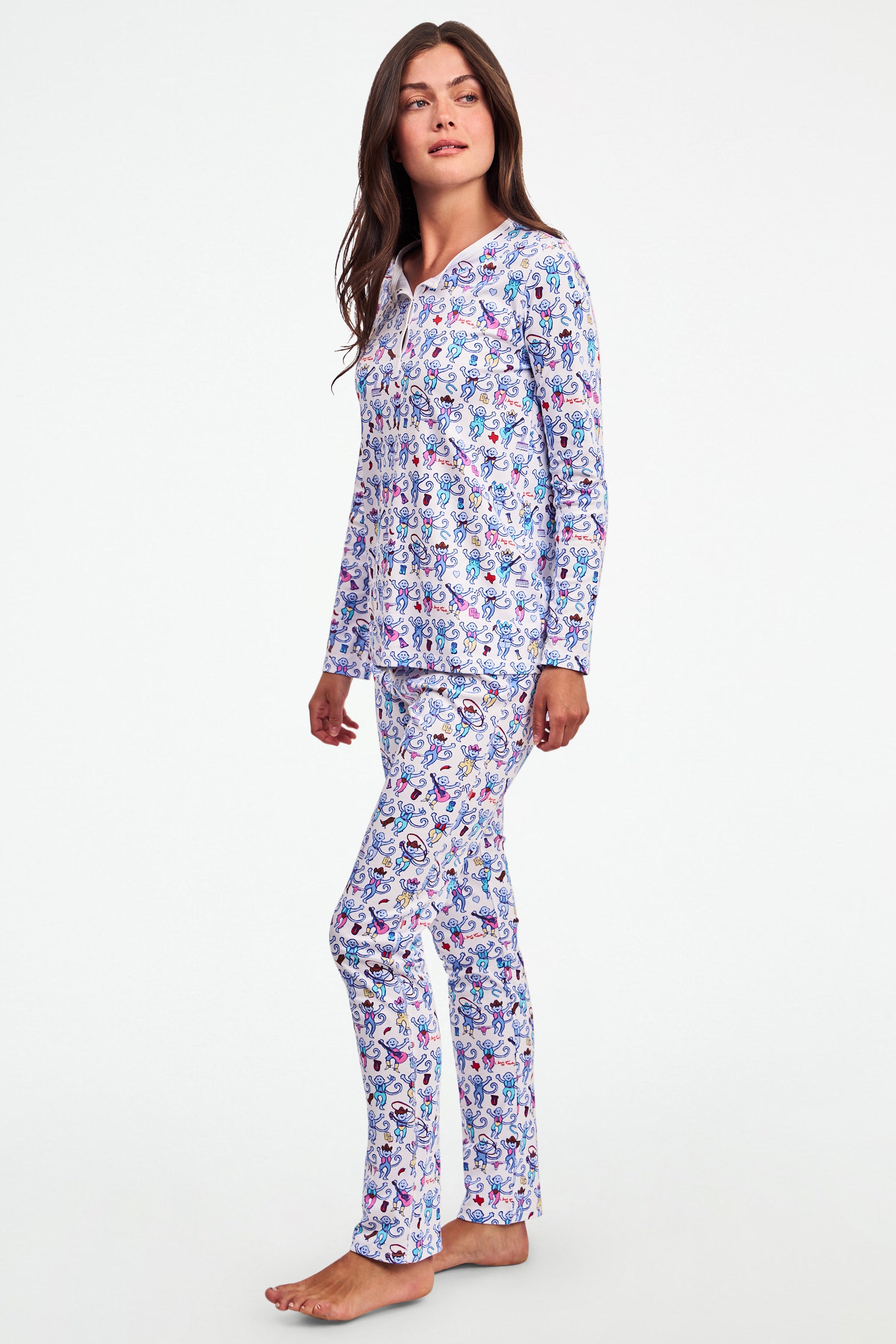 Everyone’s fave monkey is all dressed up and showing that Austin spirit! Our signature monkeys take a day-trip to Austin for some shopping on South Congress Ave, walking in the Zilker Metropolitan Park, and biking around Lady Bird Lake! Our fan-favorite pajama set is super soft and super cute, perfect for your next slumber party!