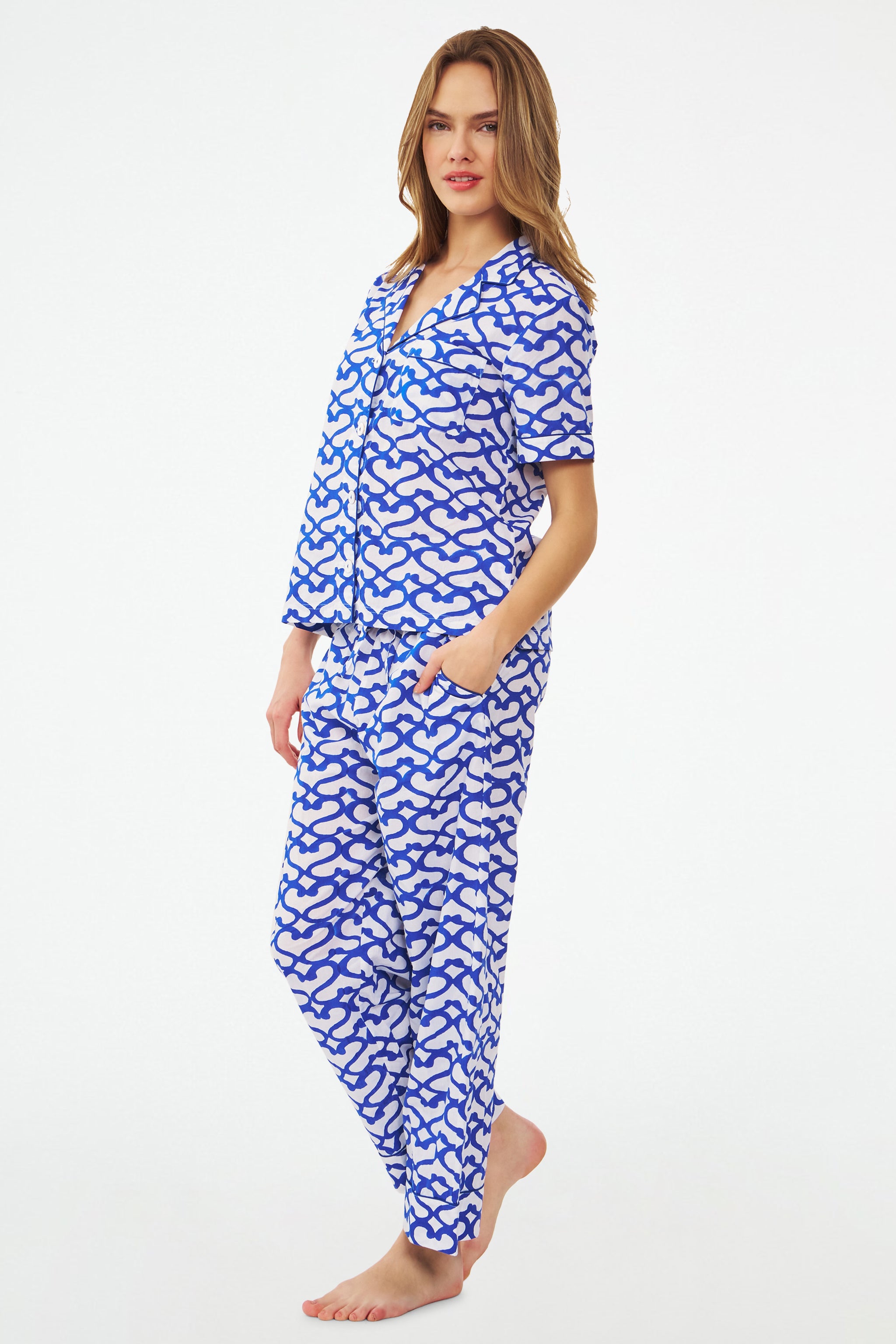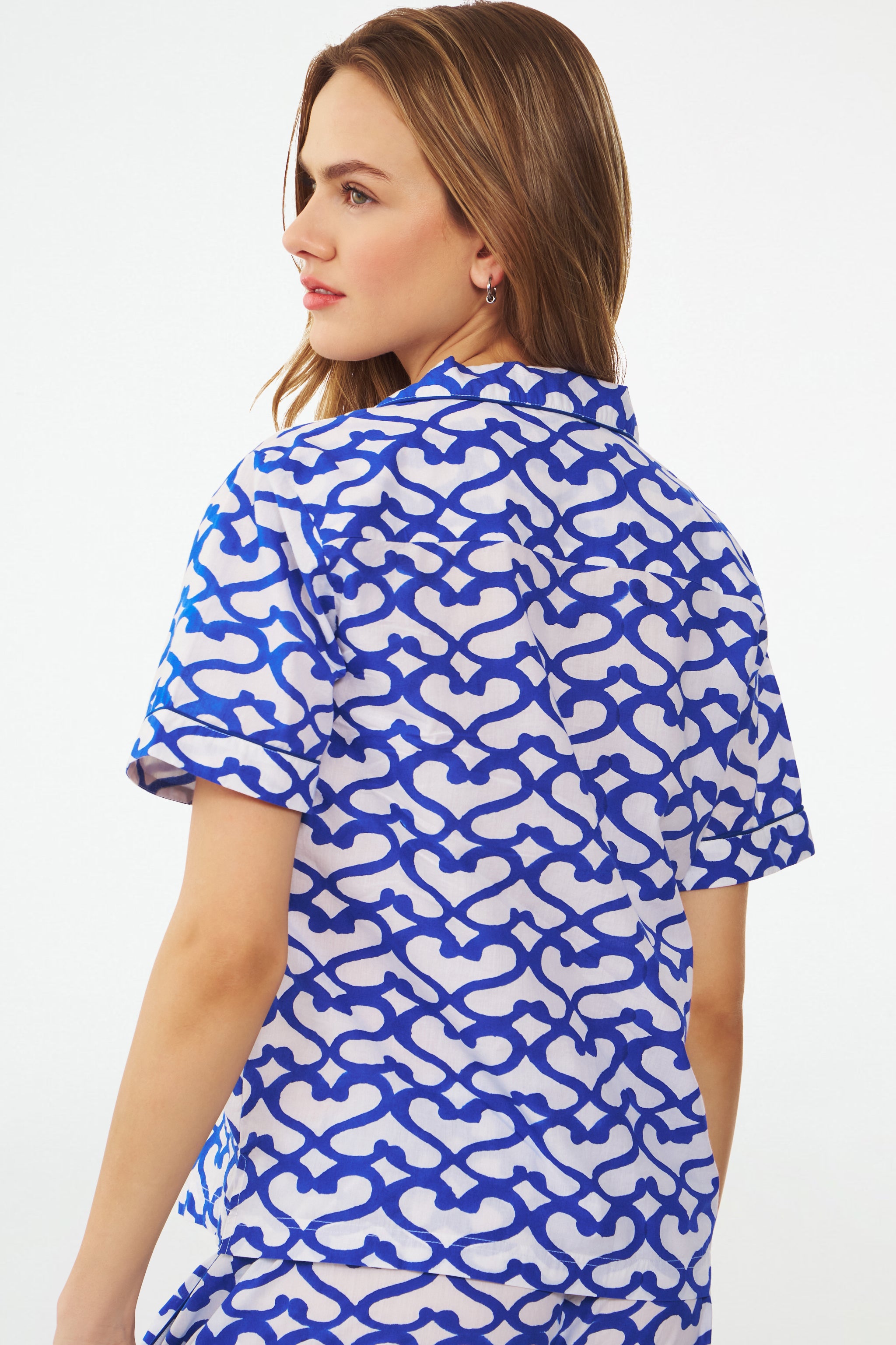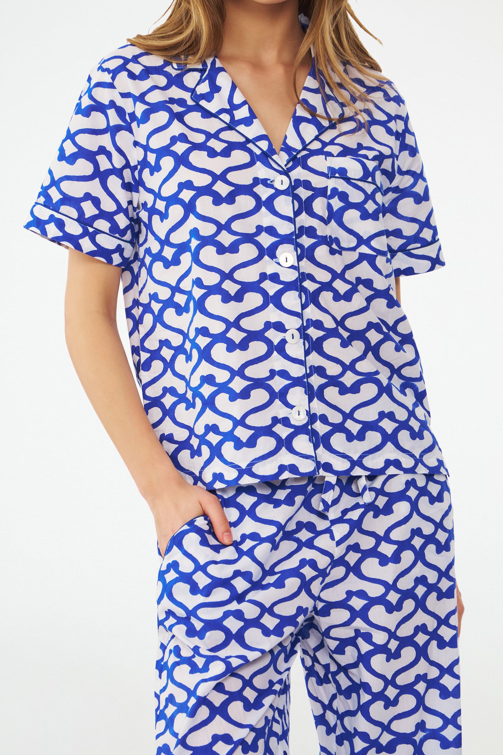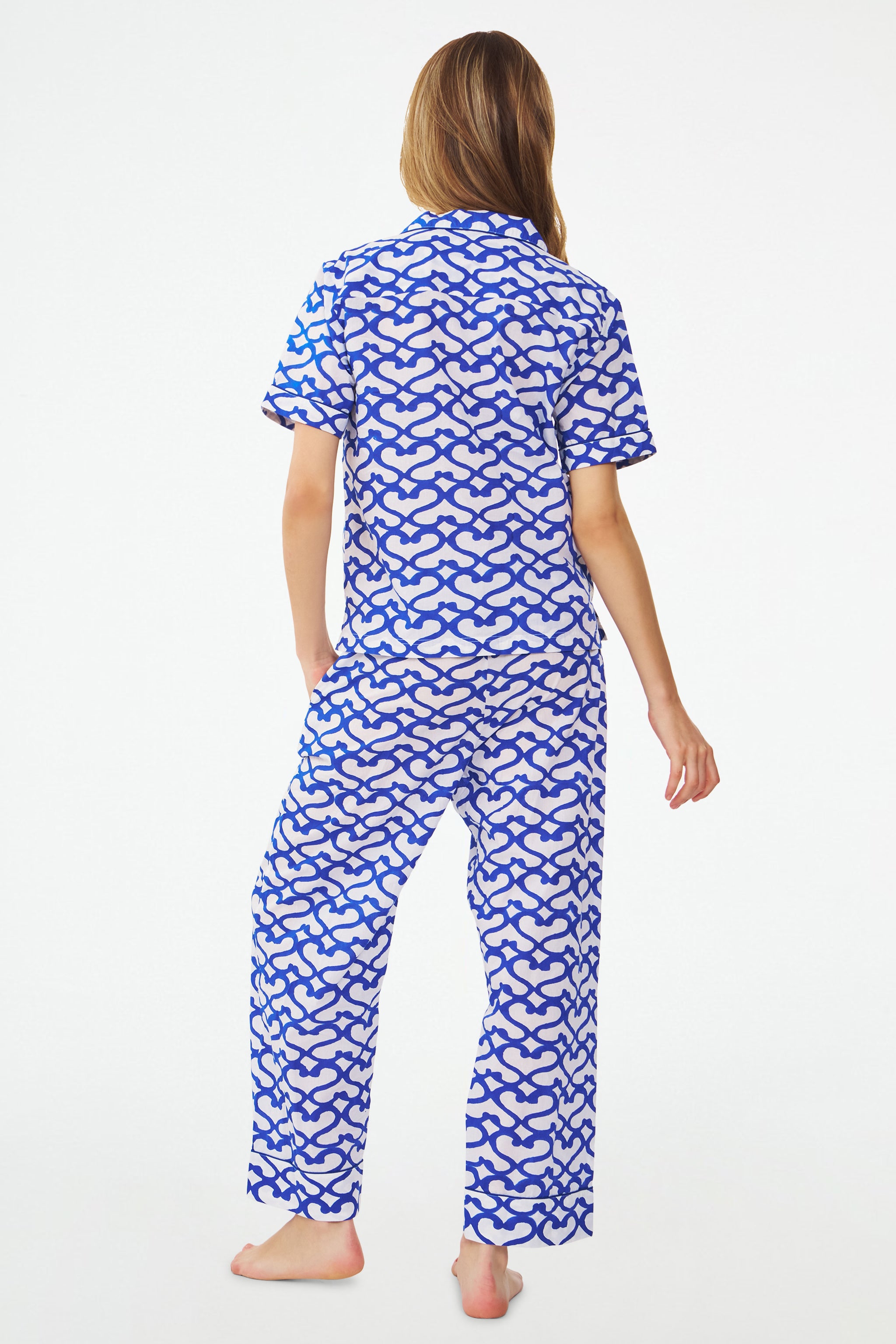 Live it up in the Liza Set, a spin on traditional PJs meant to maximize your relaxation time. The short-sleeved top and elastic-waist pants are covered in our signature Big Cata print, and the 60's cambric fabric feels as crisp and clean as fancy hotel sheets.
