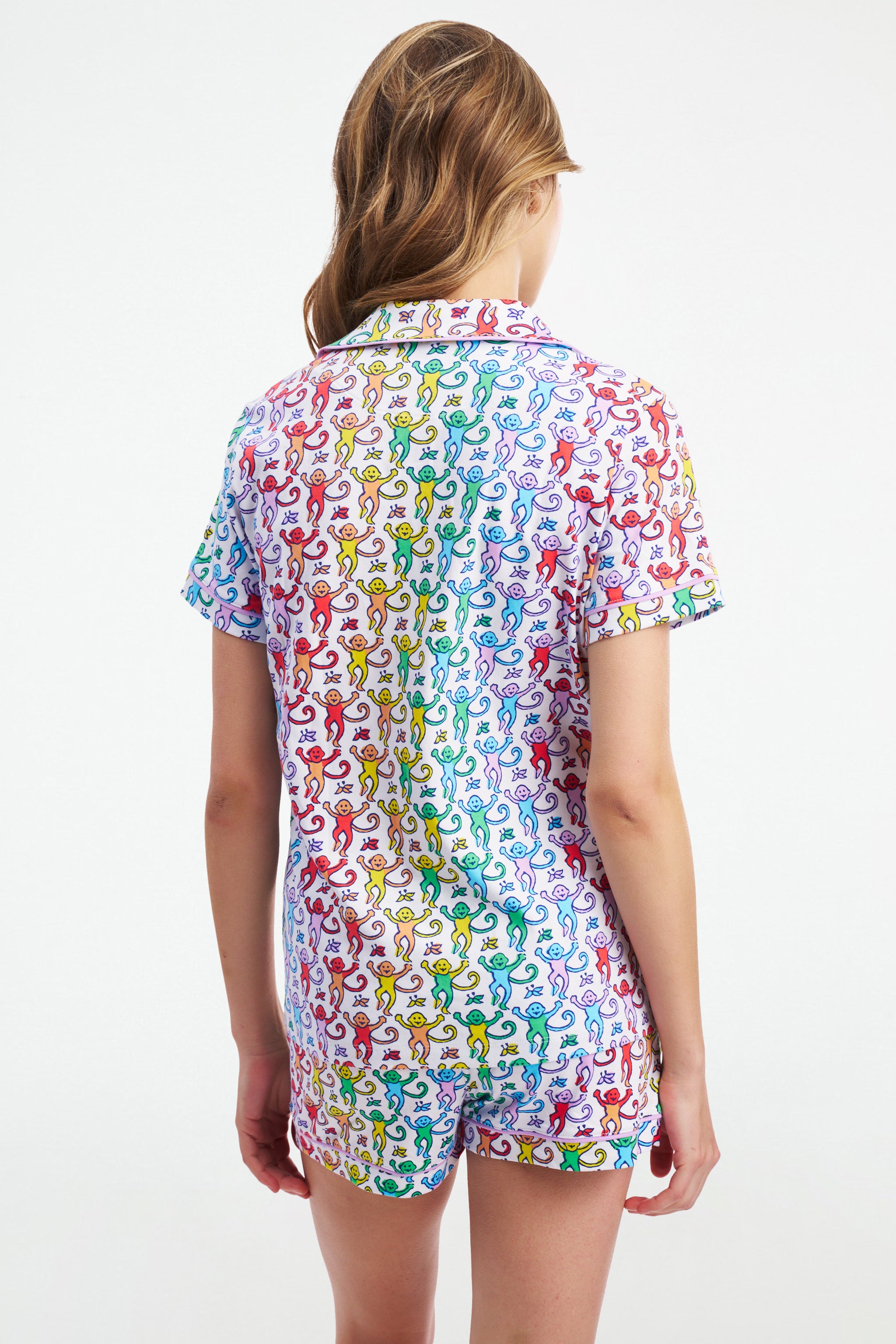 Boogie on over to bedtime in our Disco Monkey Polo Pajama Set. This groovy set is made of 100% cotton and keeps you cool all night long.