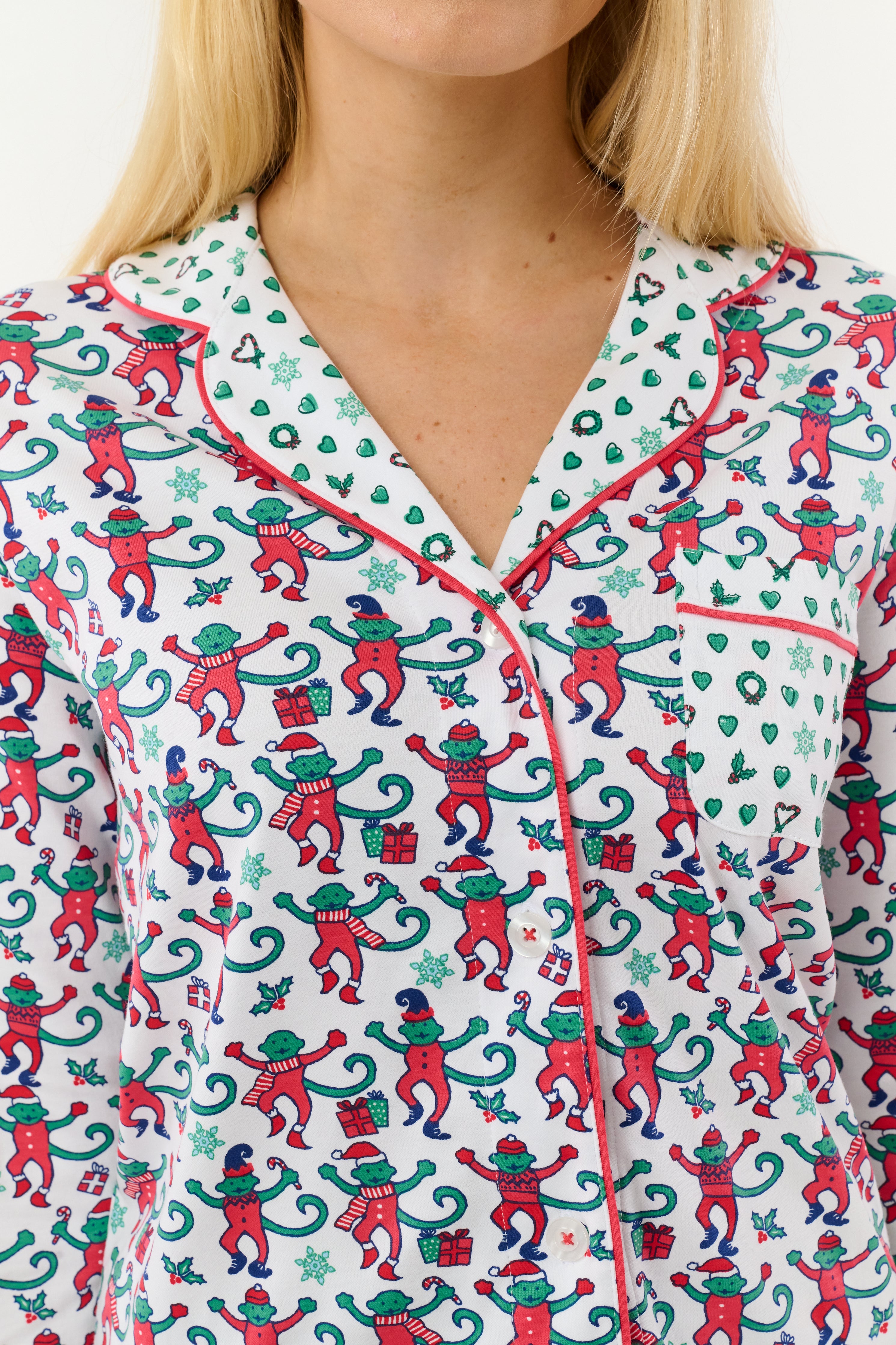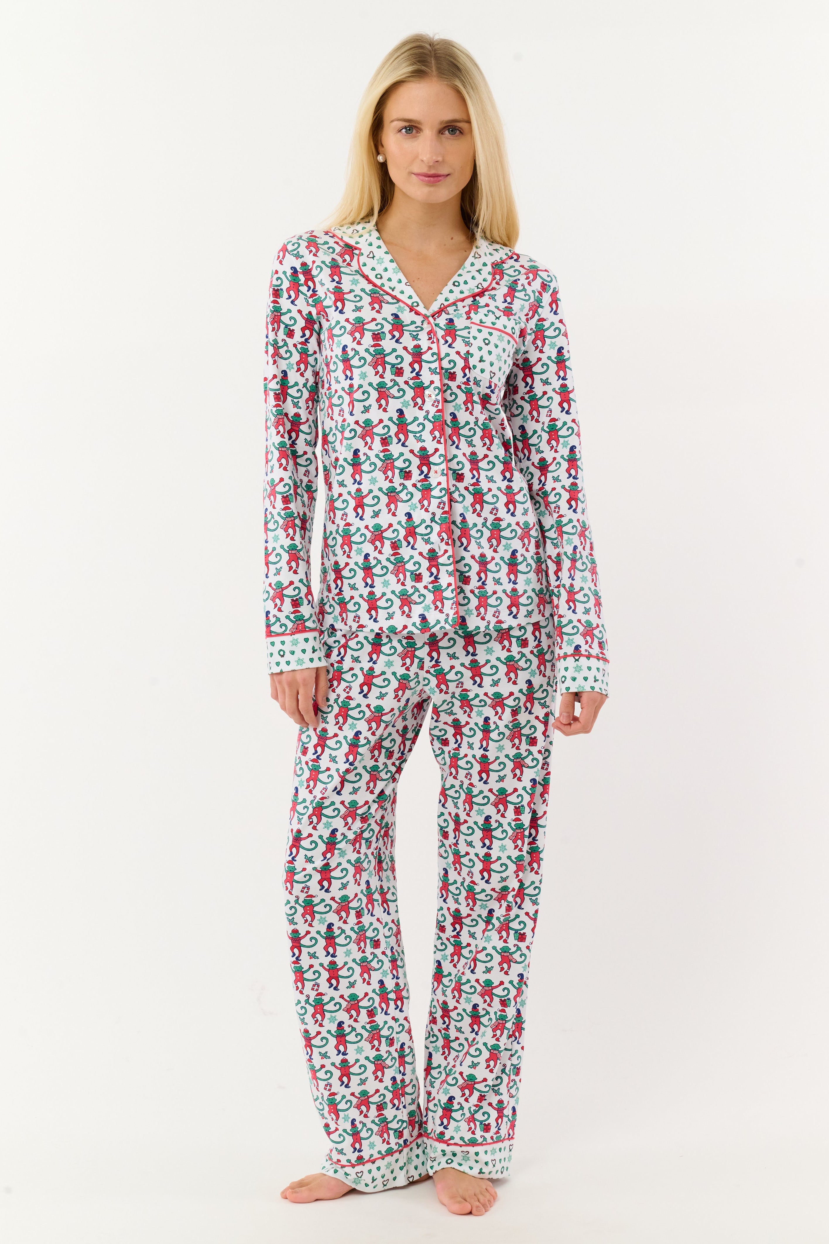 Merry Monkey Mas! Celebrate the season in festive, long-sleeved PJs for cozy nights in and lazy Saturday mornings. The dreamy Pima cotton and comfy silhouette will keep your spirits bright.