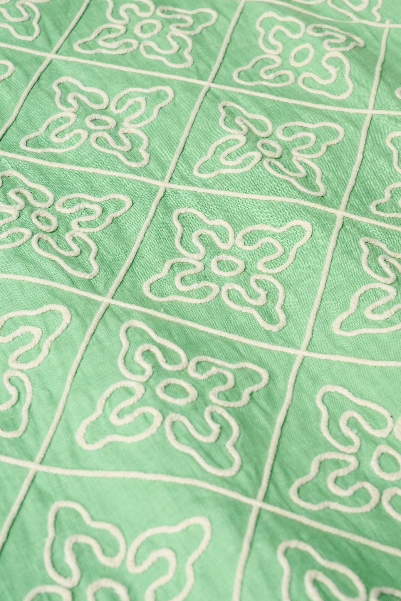 This crisp, cool green column dress is elegant and elevated, yet easy enough to wear every day. The Mira Dress features a high neckline, maxi-length skirt, and Corded Medallion print.