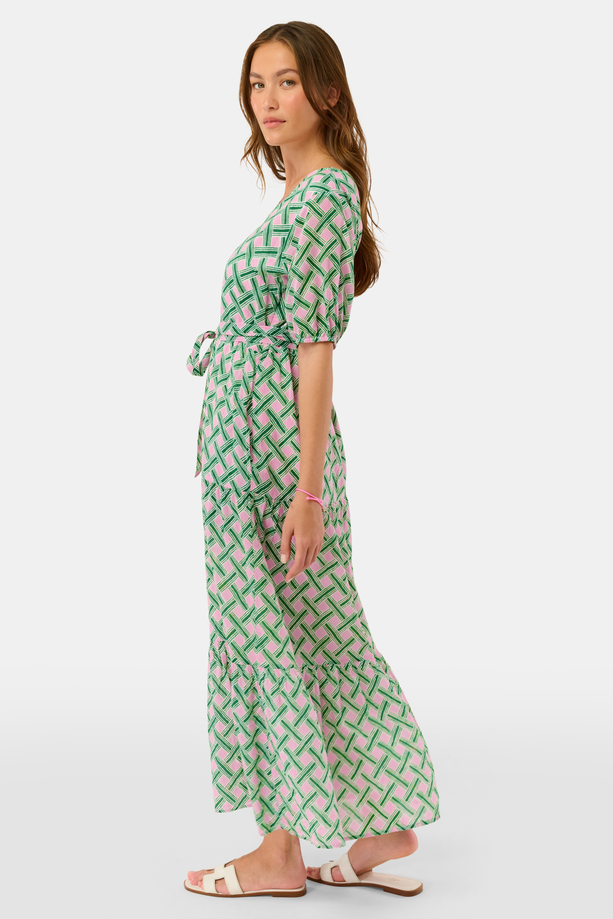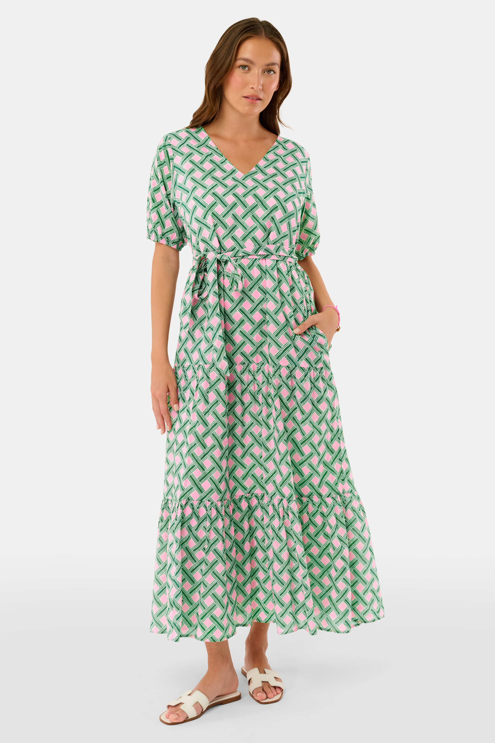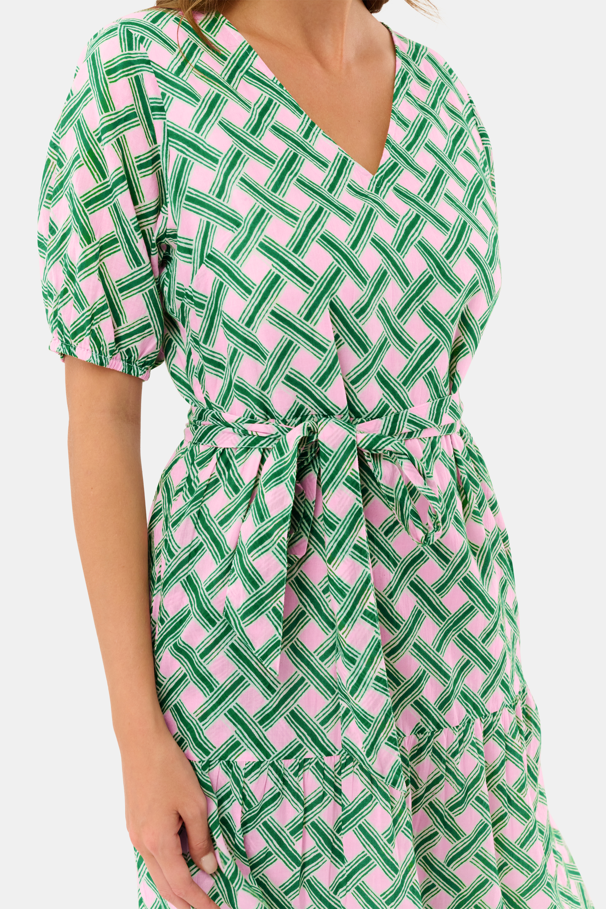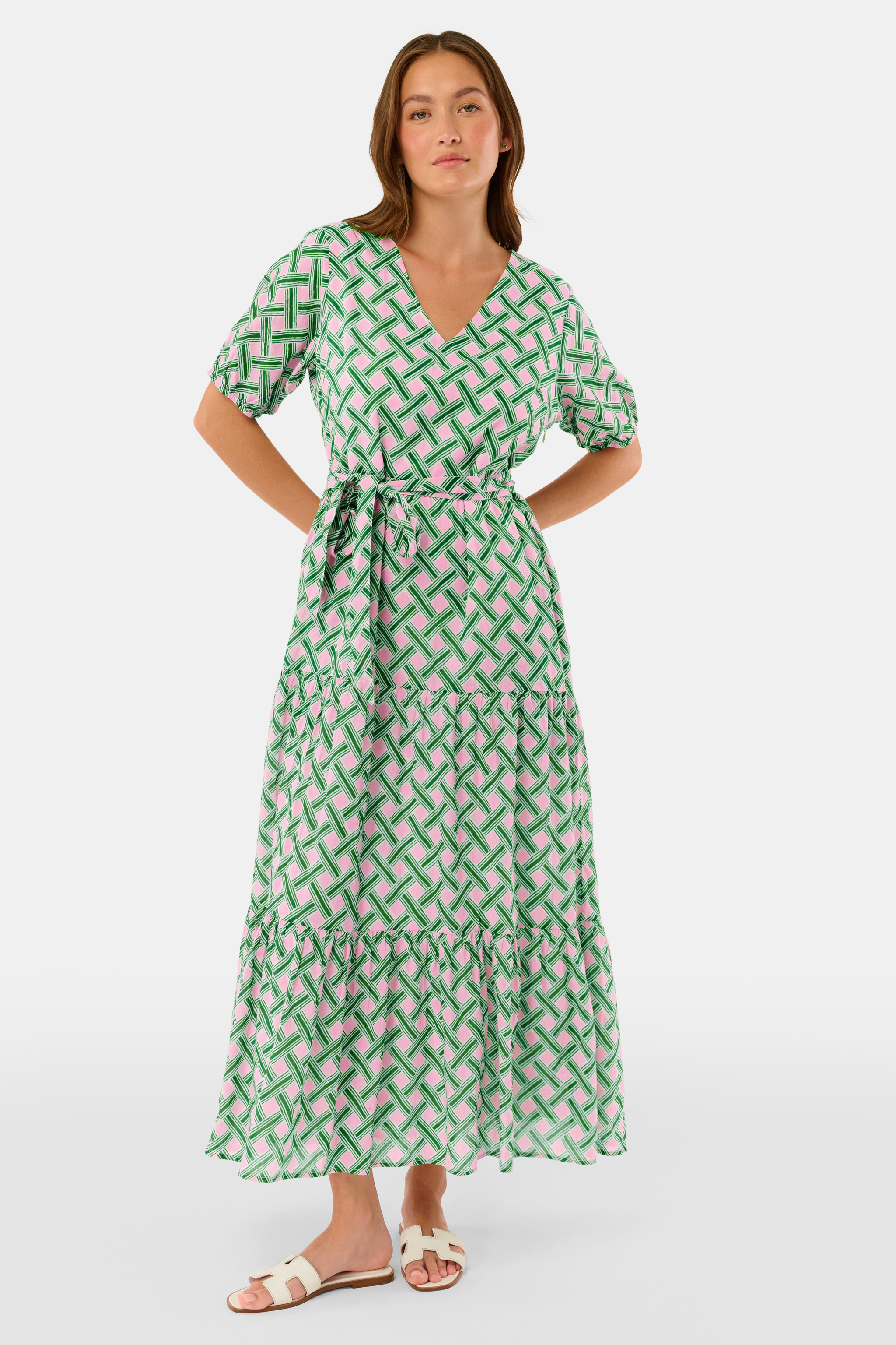 Go preppy in the Brigitta Dress, a full-length cotton voile maxi in a chic pink and green Liana print. With a V neck and elbow-length sleeves, this lightweight maxi can take you from work to weekend. A removable belt allows you to customize the silhouette.