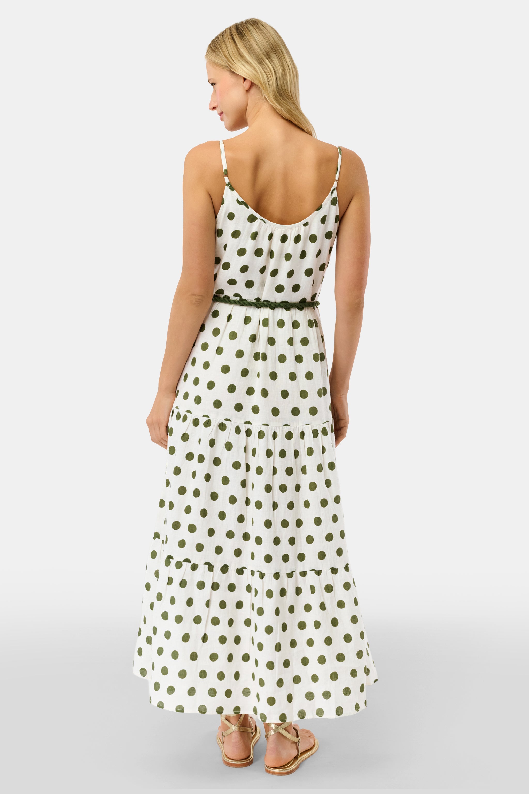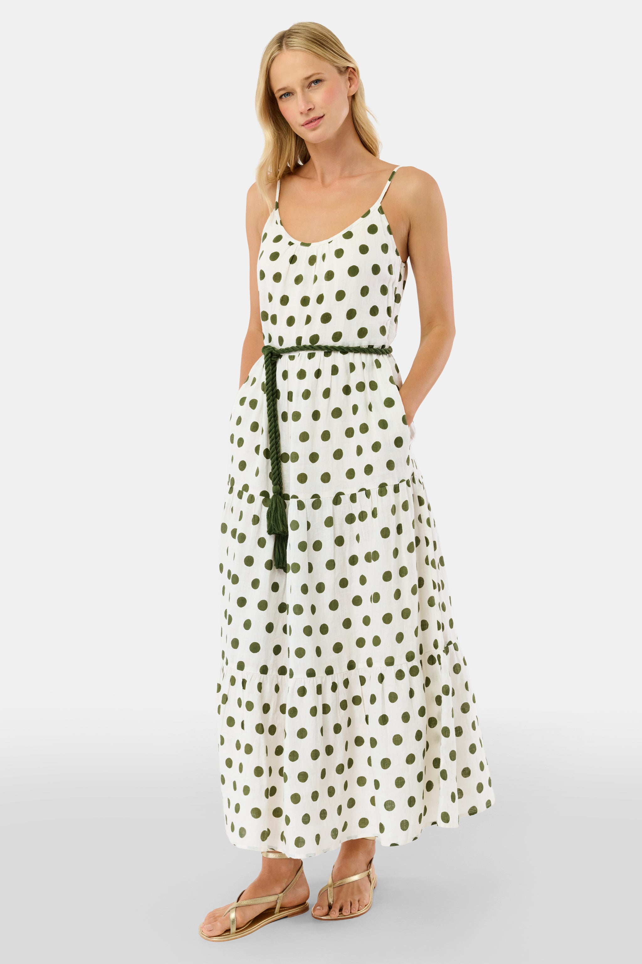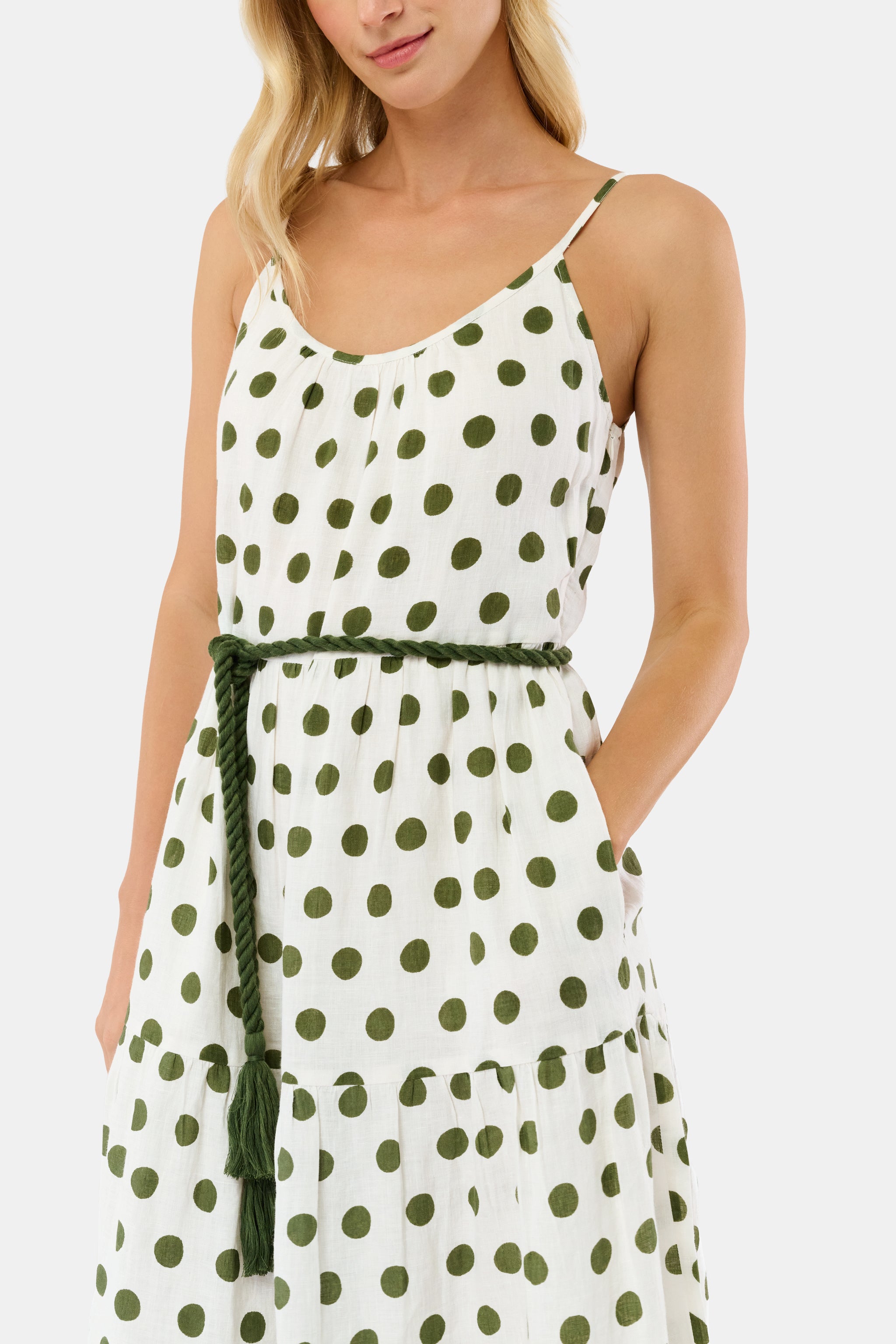 Polka dots are the must-have print of 2026, especially in a cool olive green! Our Belted Dakota Dress is a full-length linen maxi with slim straps and a loose, comfortable fit. Use the removable belt to cinch in the waist for a more fitted style.