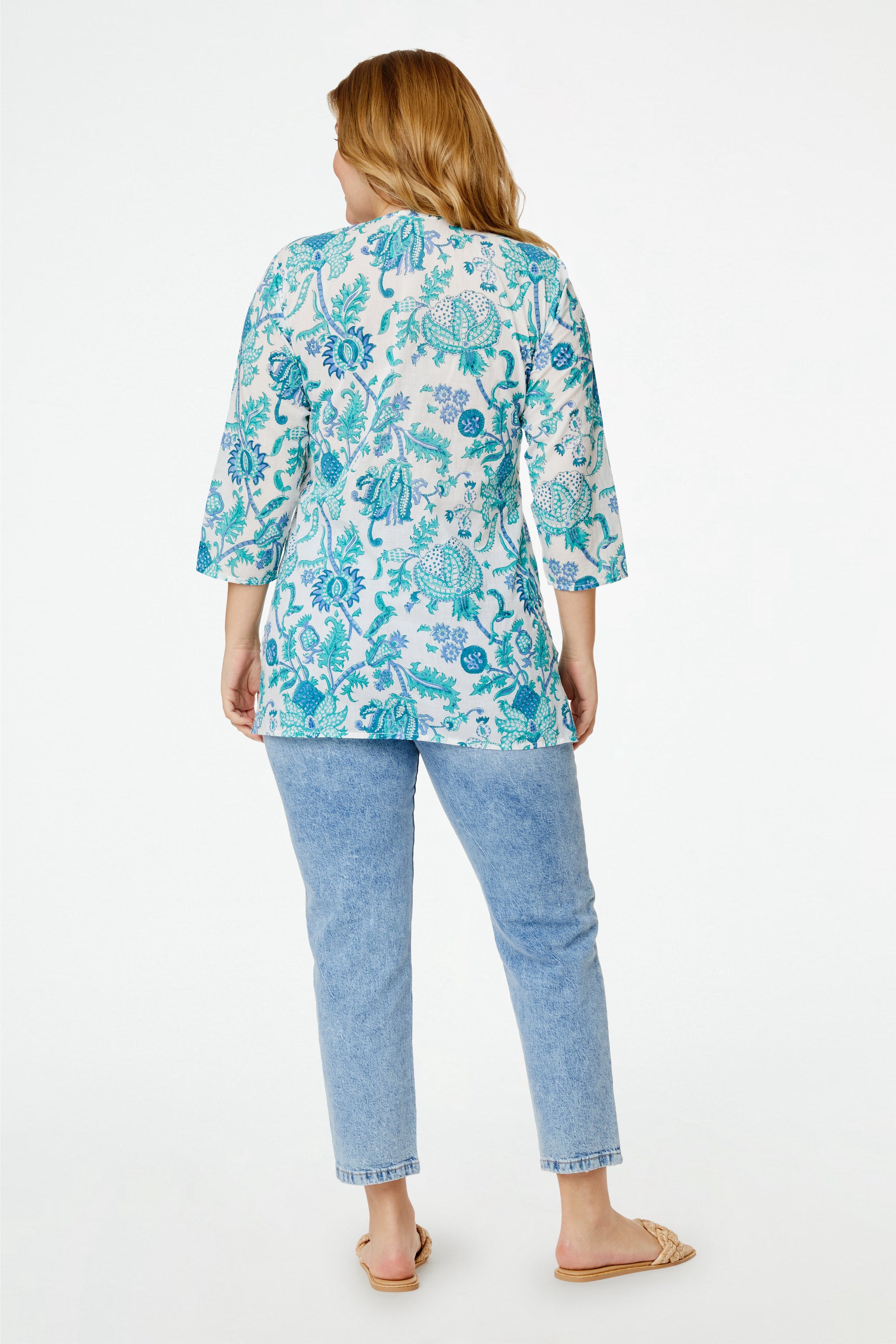 A Kurta is a traditional item of clothing typical of India. It has a loose, soft cut, with a split V-neck and sleeves. We've updated our Classic Kurta by giving it a contemporary cut and adding our signature hand-beaded accent at the side slit. It's the perfect top for a sunny day at the beach or for layering over pants in the Fall.