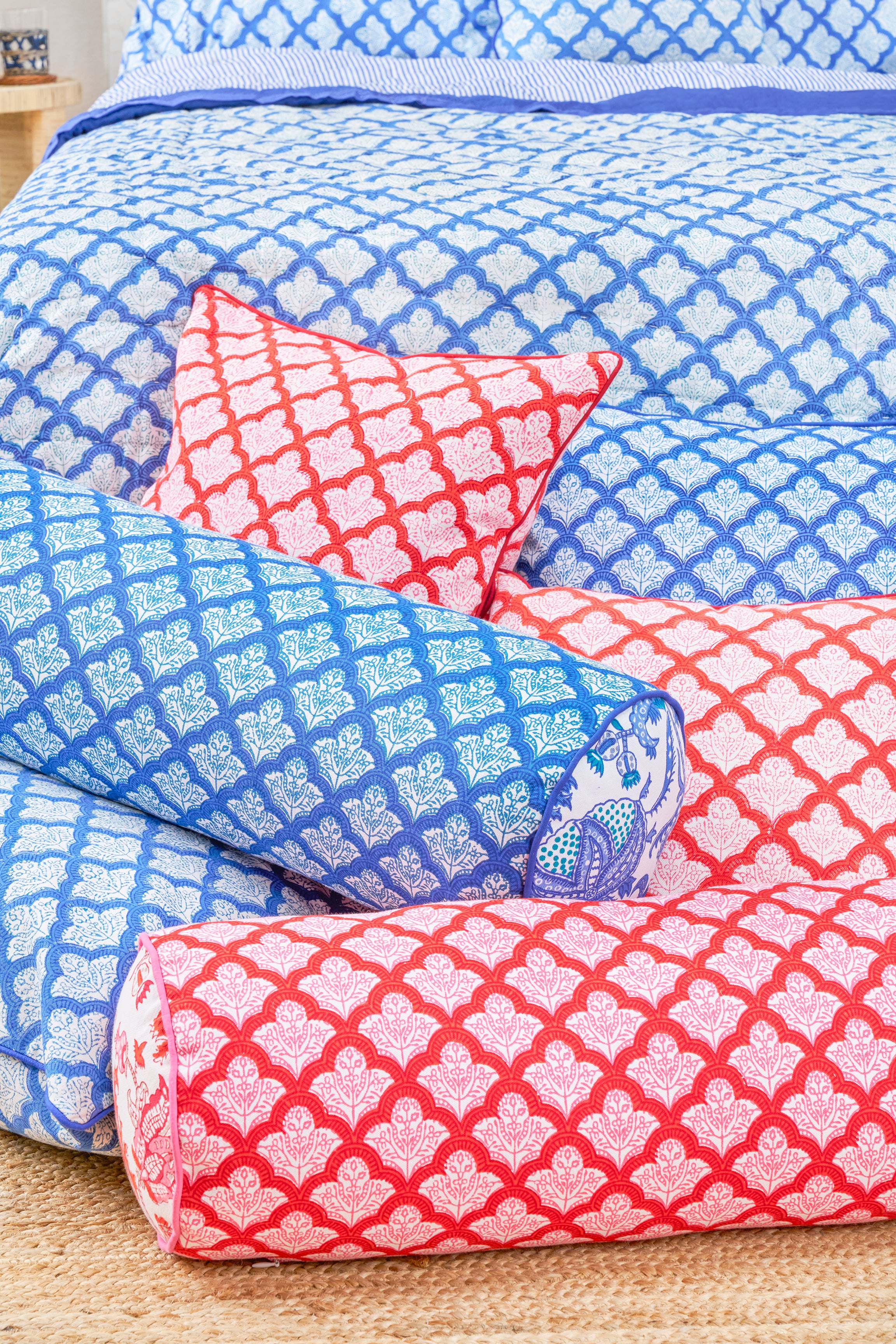 The Jemina Bolster pillow will add a whimsical delight to any room, especially in our classic red Jemina print. Use it as an accent pillow or in your reading nook for the best results!