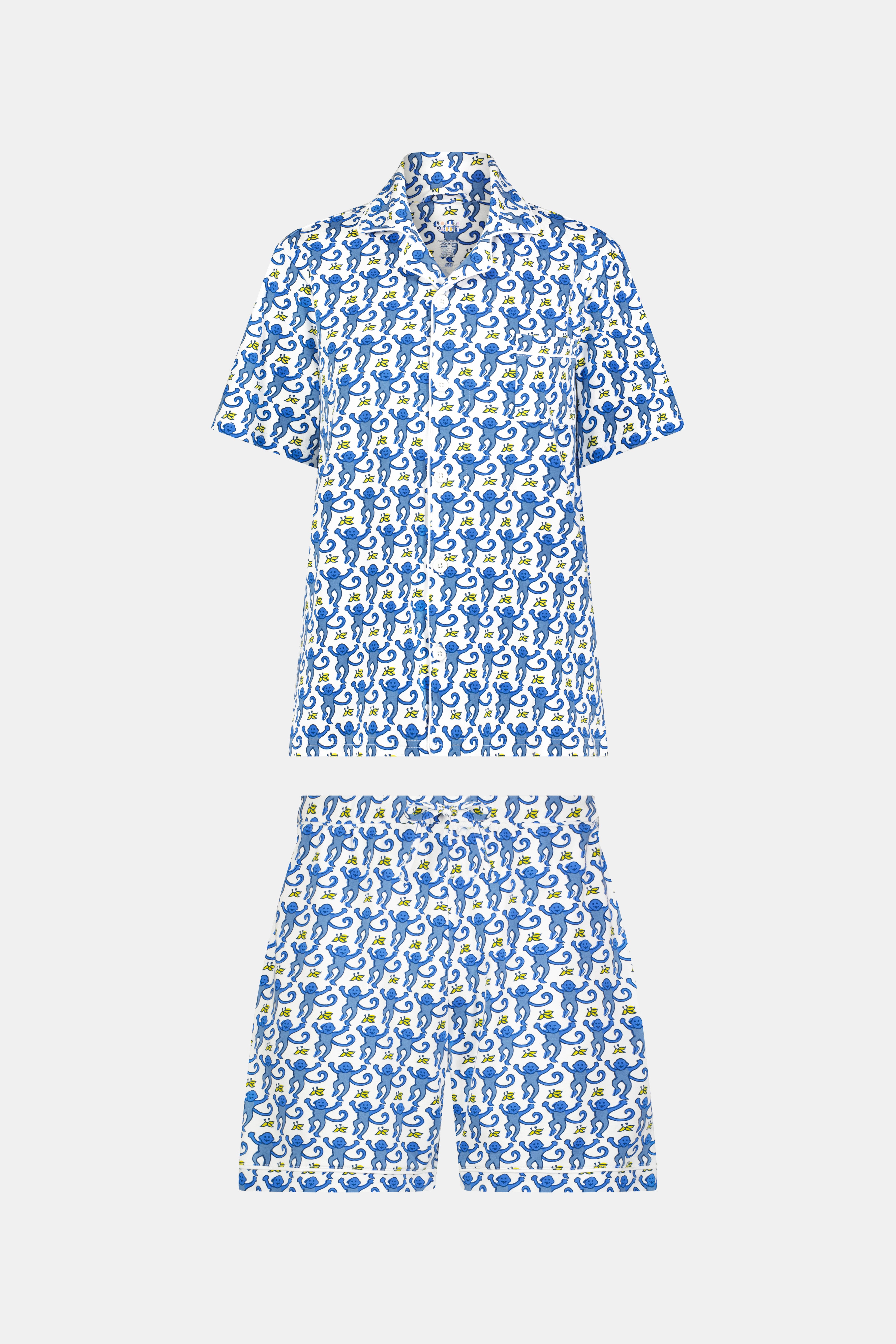 Give yourself permission to monkey around at bedtime in these super comfy PJs that feature our playful monkey print in which you can match the whole family! This pajama set includes a short-sleeve polo top and matching shorts.