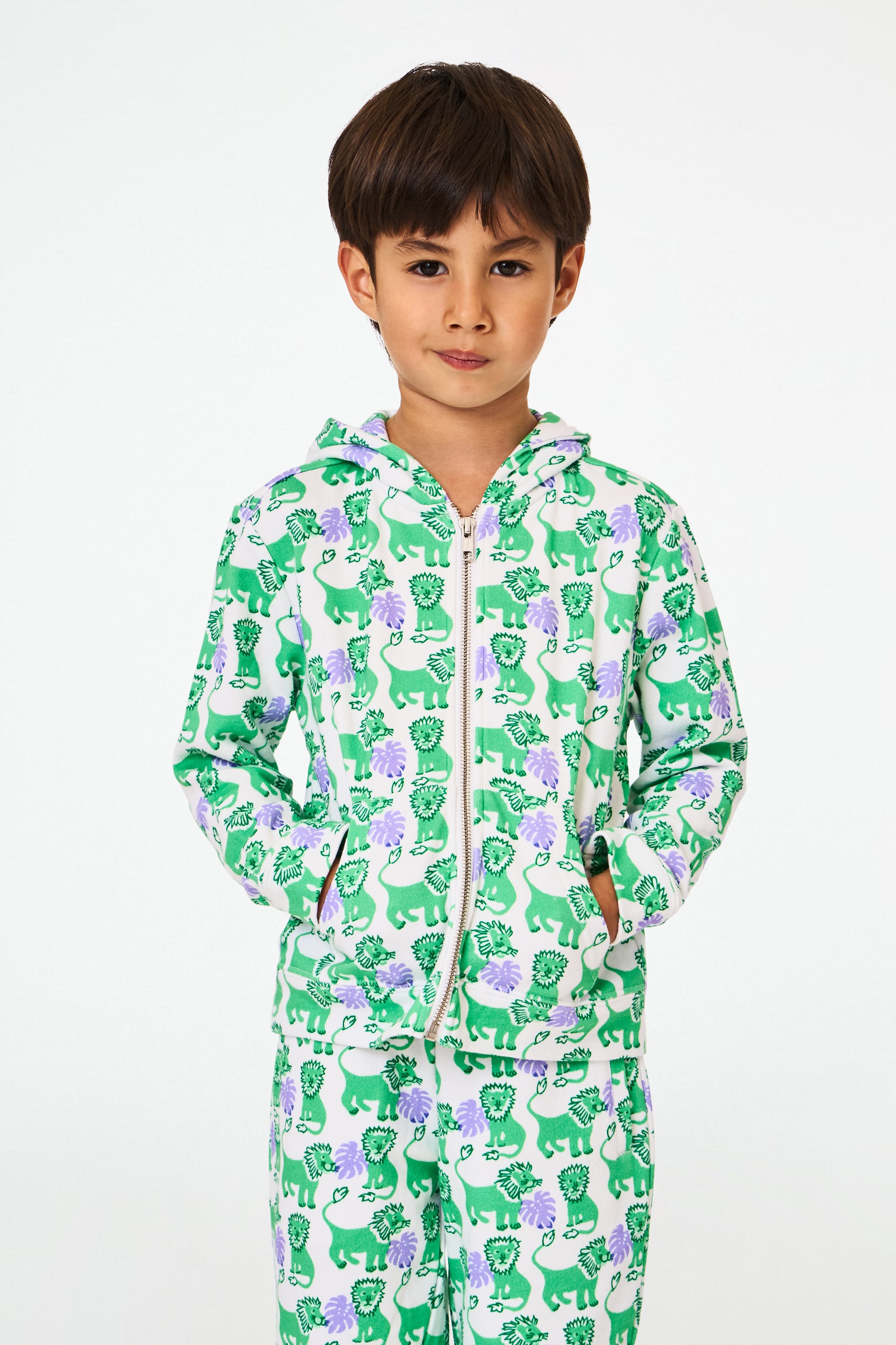 Make 'em roar with delight in the Kids Harley Hoodie, a French terry zip-up style in the bright green Leo the Lion print. It's perfect for back-to-school and can be worn over T-shirts, dresses, or the matching Kids Jogger for an adorable sweatsuit.