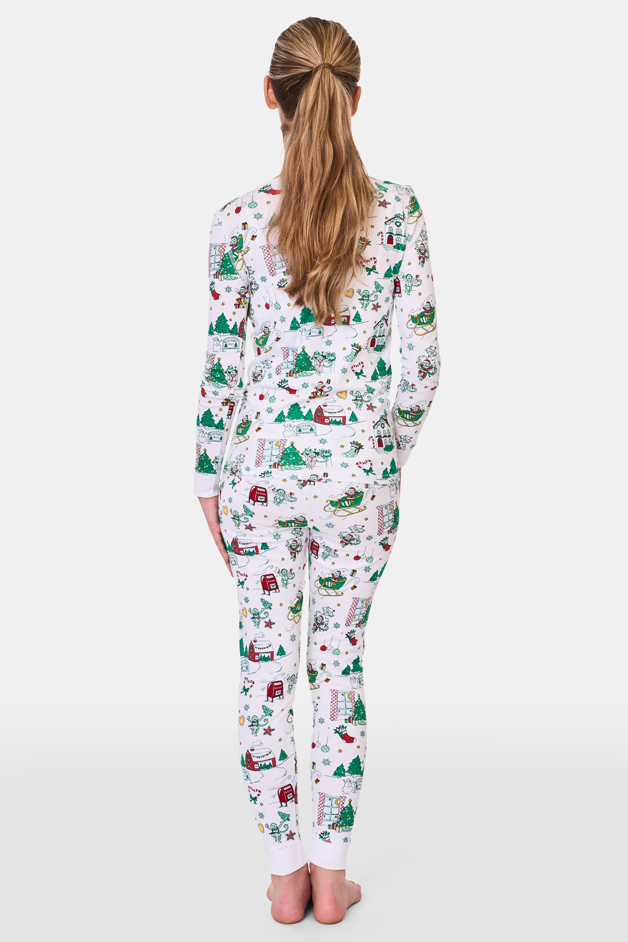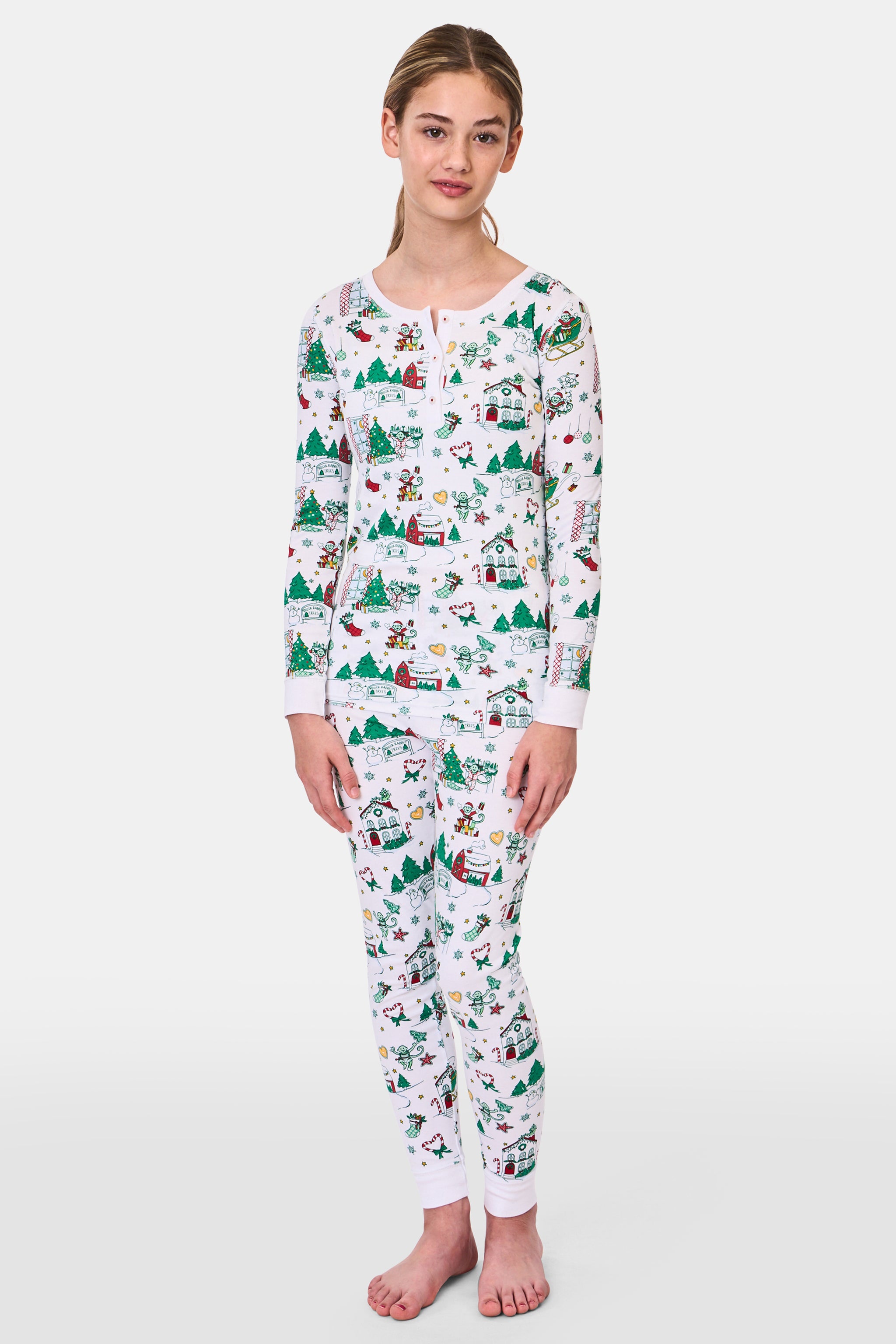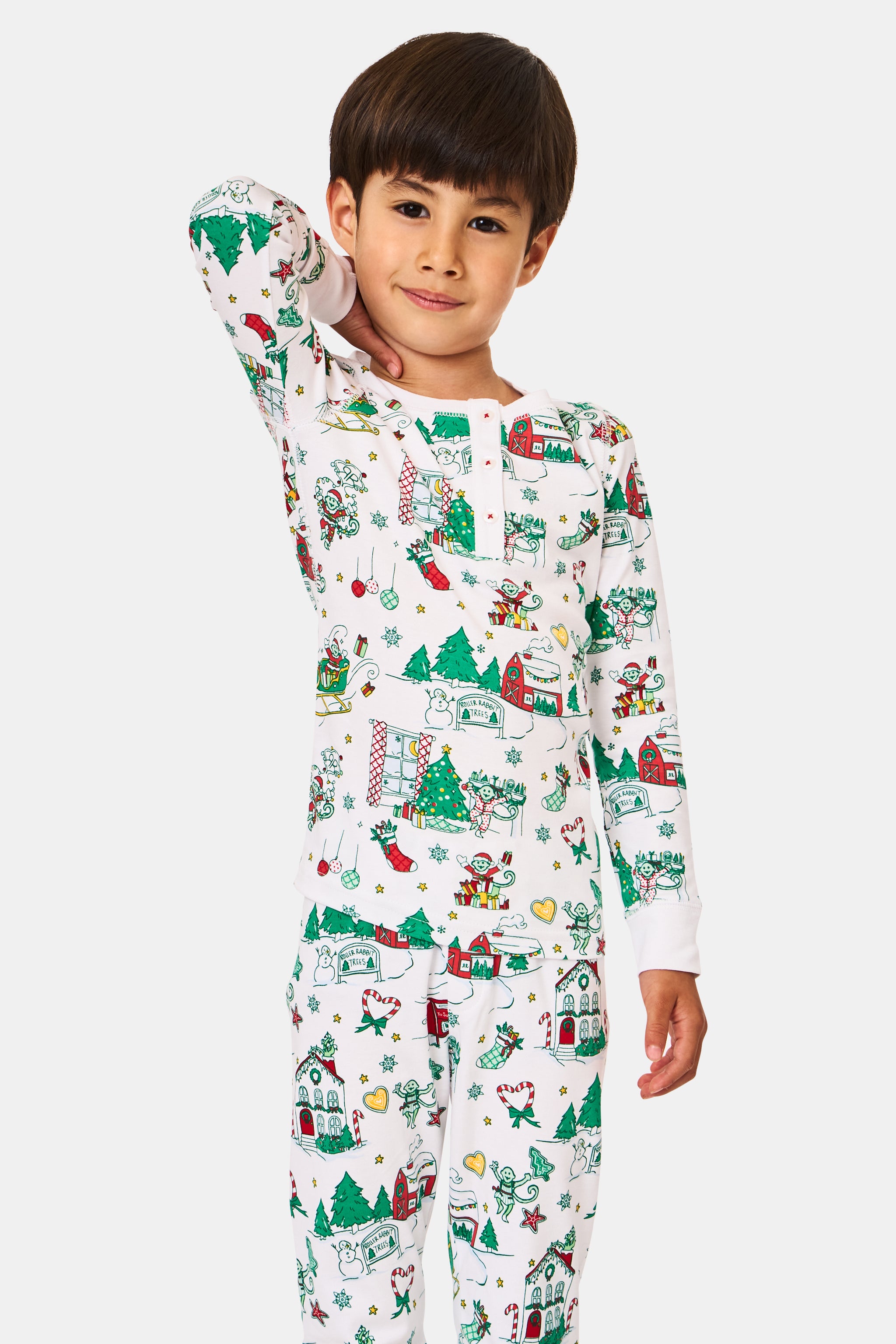 Let the festive bedtime stories come to life in our Snow Villages Kids Pajamas. Crafted from buttery-soft Pima cotton, this cheerful set features a whimsical snowy village scene that captures the wonder of the season. Comfy, cozy, and irresistibly cute — perfect for snow days, sleepovers, and holiday mornings.