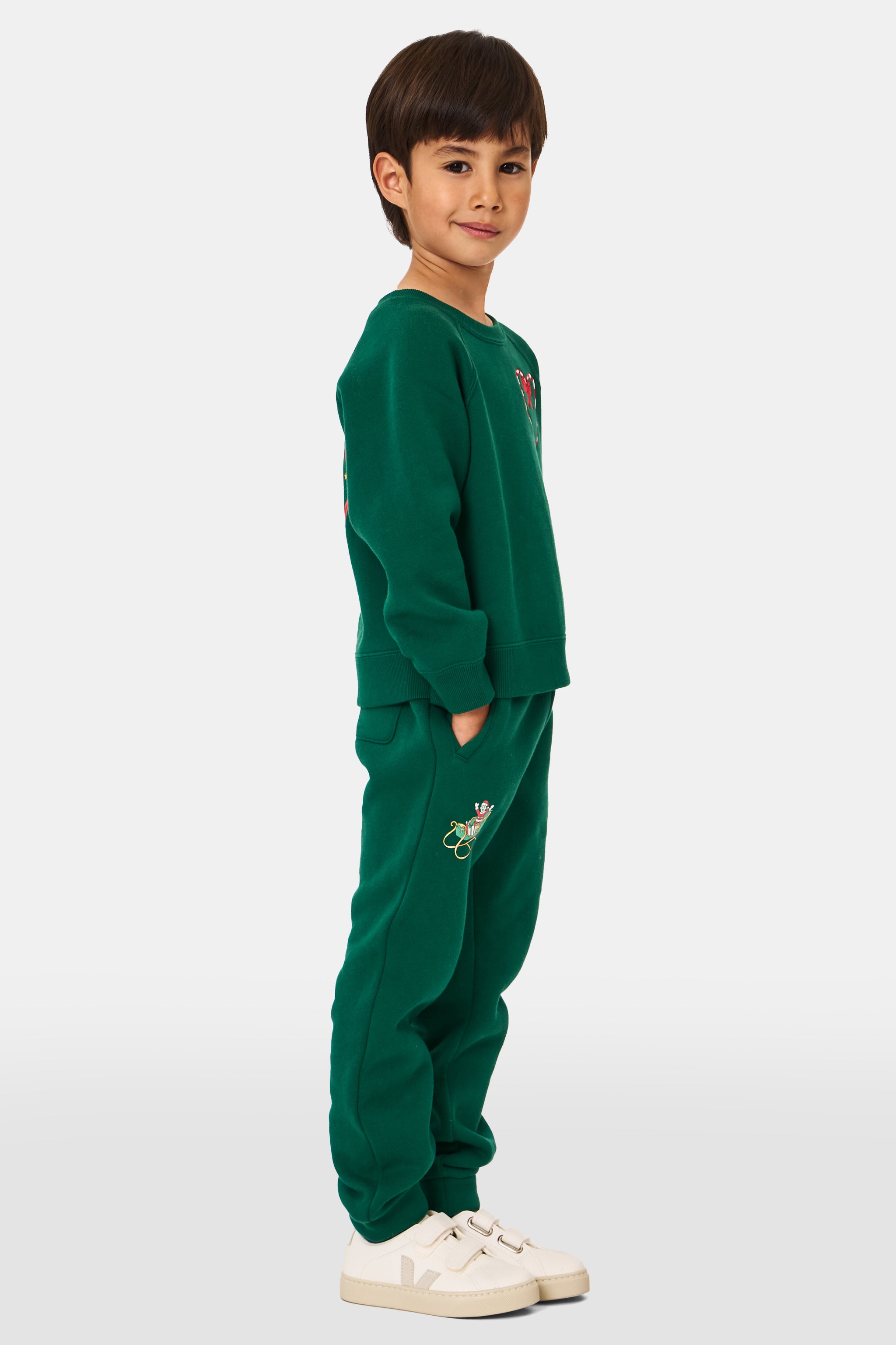 Made for merry adventures, our Kids Jogger brings comfort and charm all season long. Designed in the softest green cotton with a whimsical sleigh! These joggers are ready for snow days, movie nights, and every festive moment in between.