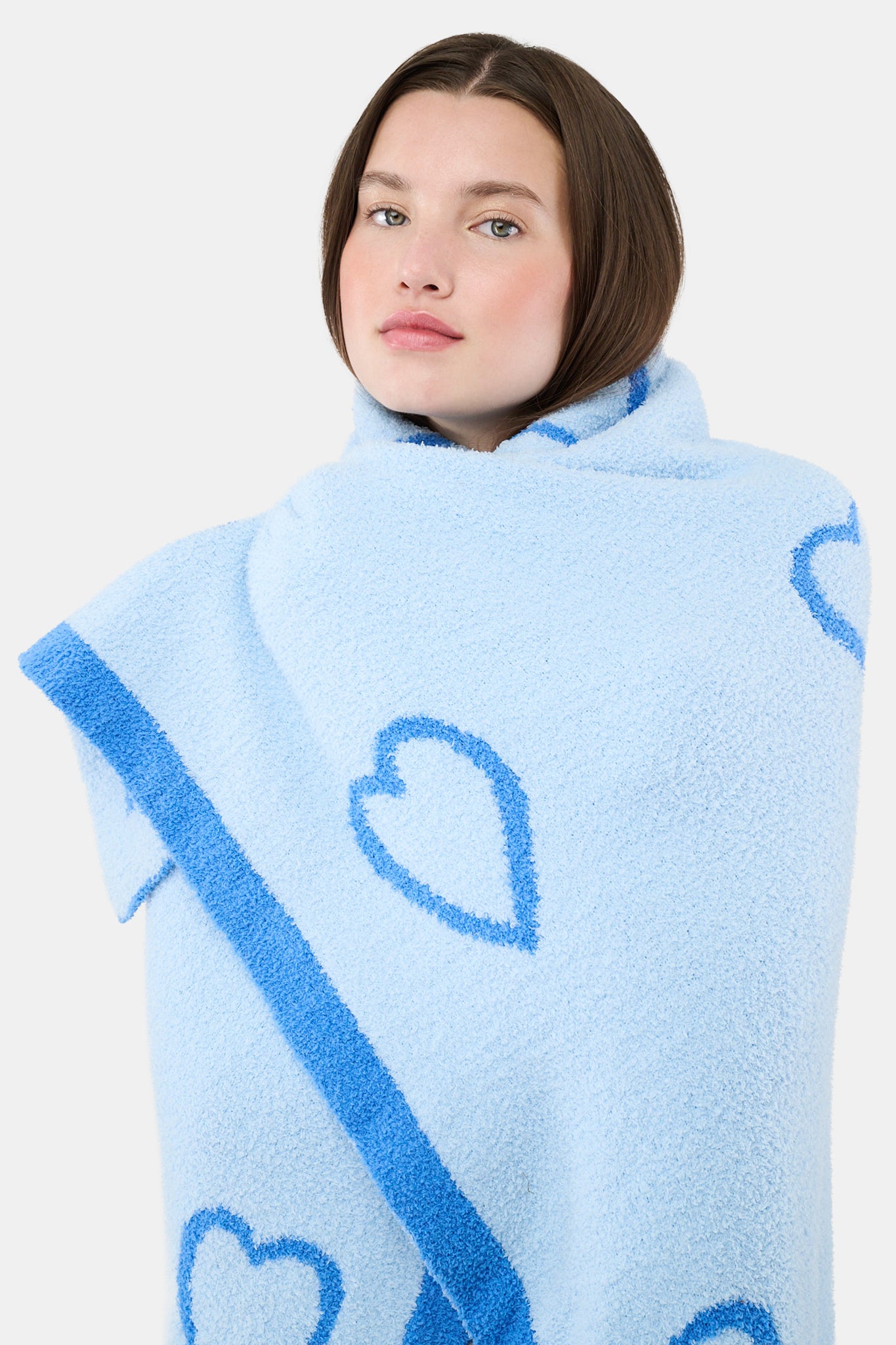 Get cozy covered in Roller Rabbit Hearts. This royal blue jacquard blanket is an incredibly soft, adorable throw or kids' blanket.