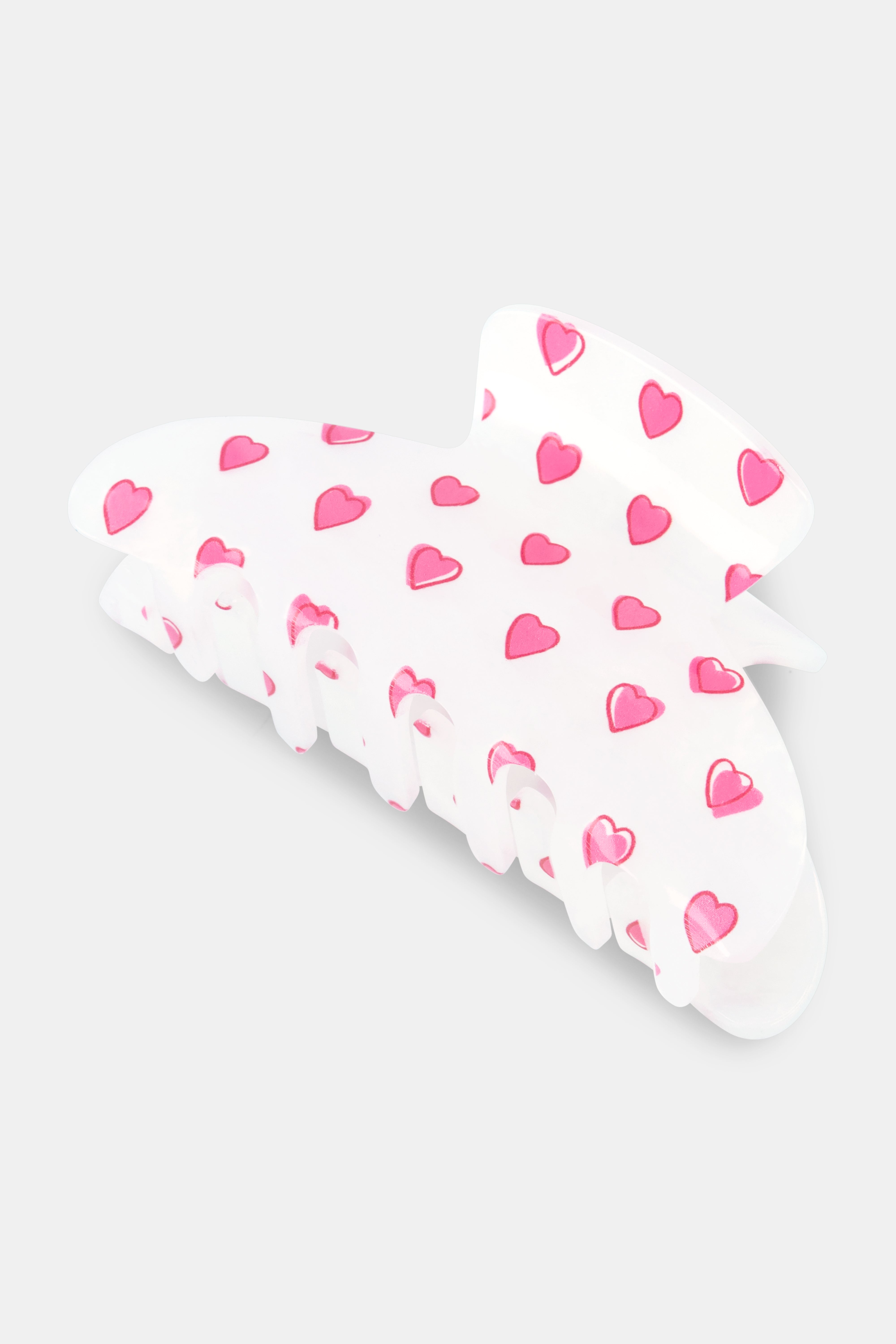 The claw clip is back and even better! Pull your hair up and away with the pink classic hearts.