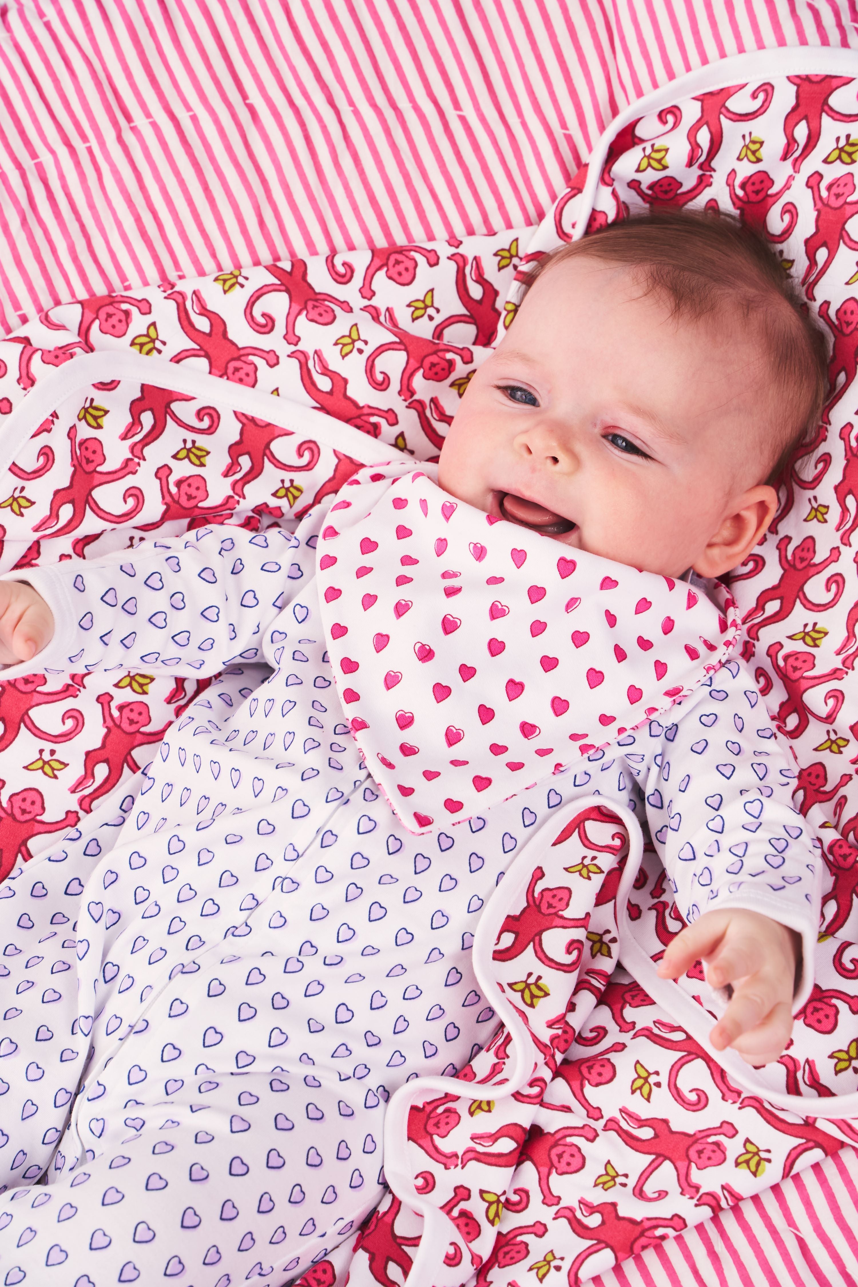 Our super soft and snuggly 100% Premium Cotton bibs are the ultimate luxury for your little ones dribbles. This set of two reversible bibs features our beloved Hearts and Hathi print with a snap at the neck.