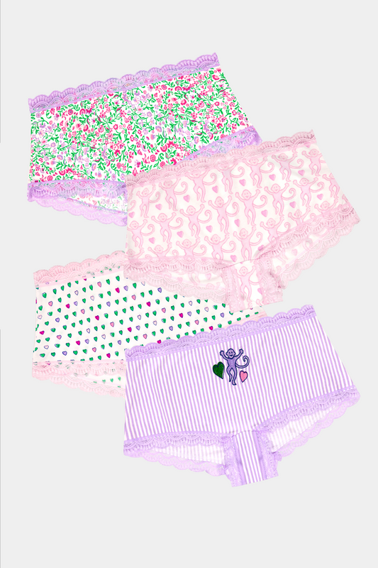 Boyshorts are practically the definition of comfort, especially when they're made with ultra-soft, breathable cotton modal. Choose between sweet pastel prints or our signature Disco Hearts and monkey motifs.