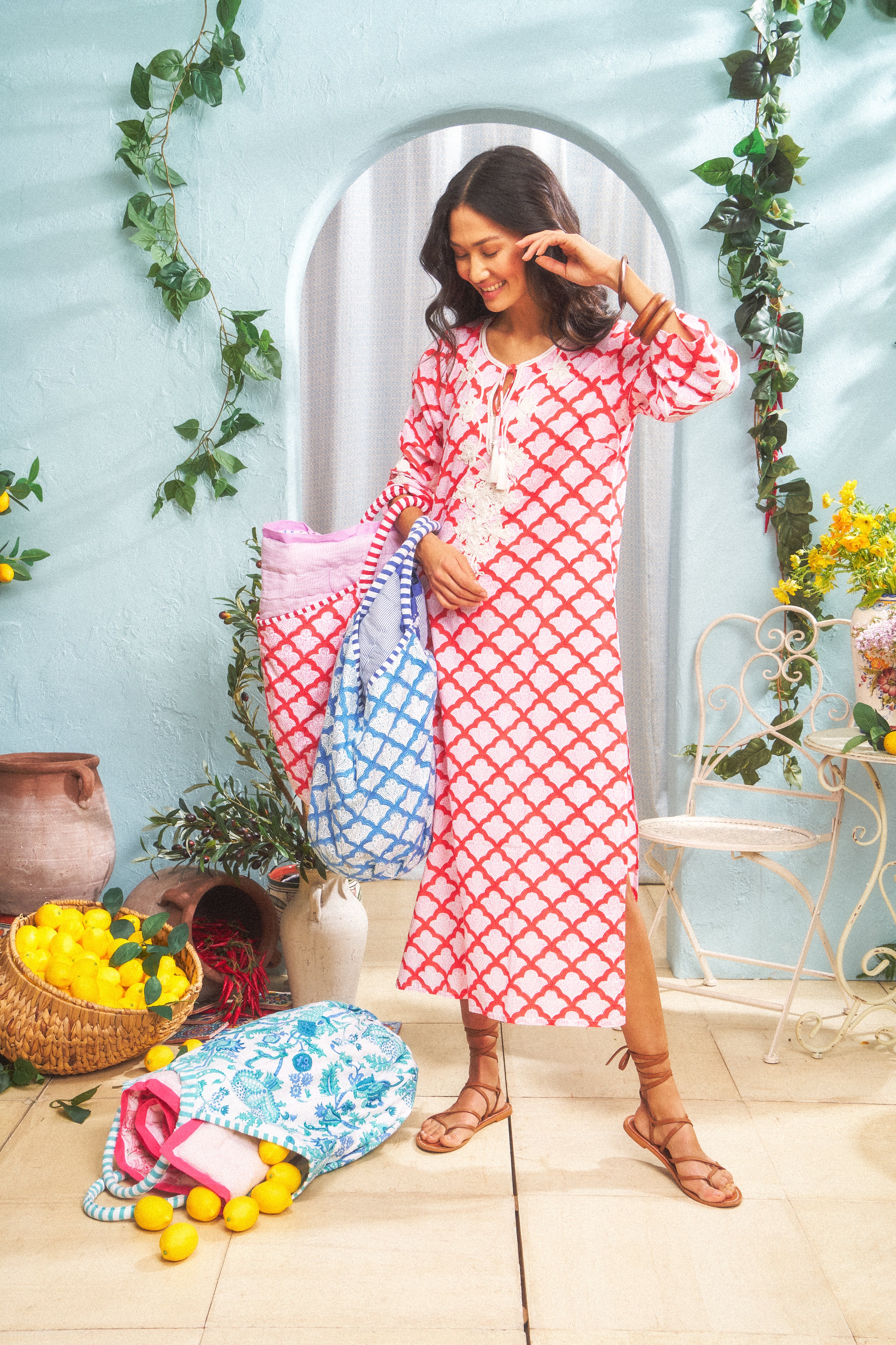 Bring the drama with the Punta Long Kurta in the vibrant red and pink '60s Cambric pattern. This 100% cotton pullover maxi kurta works as a beach coverup or a glam gown — it's all in how you style it!
