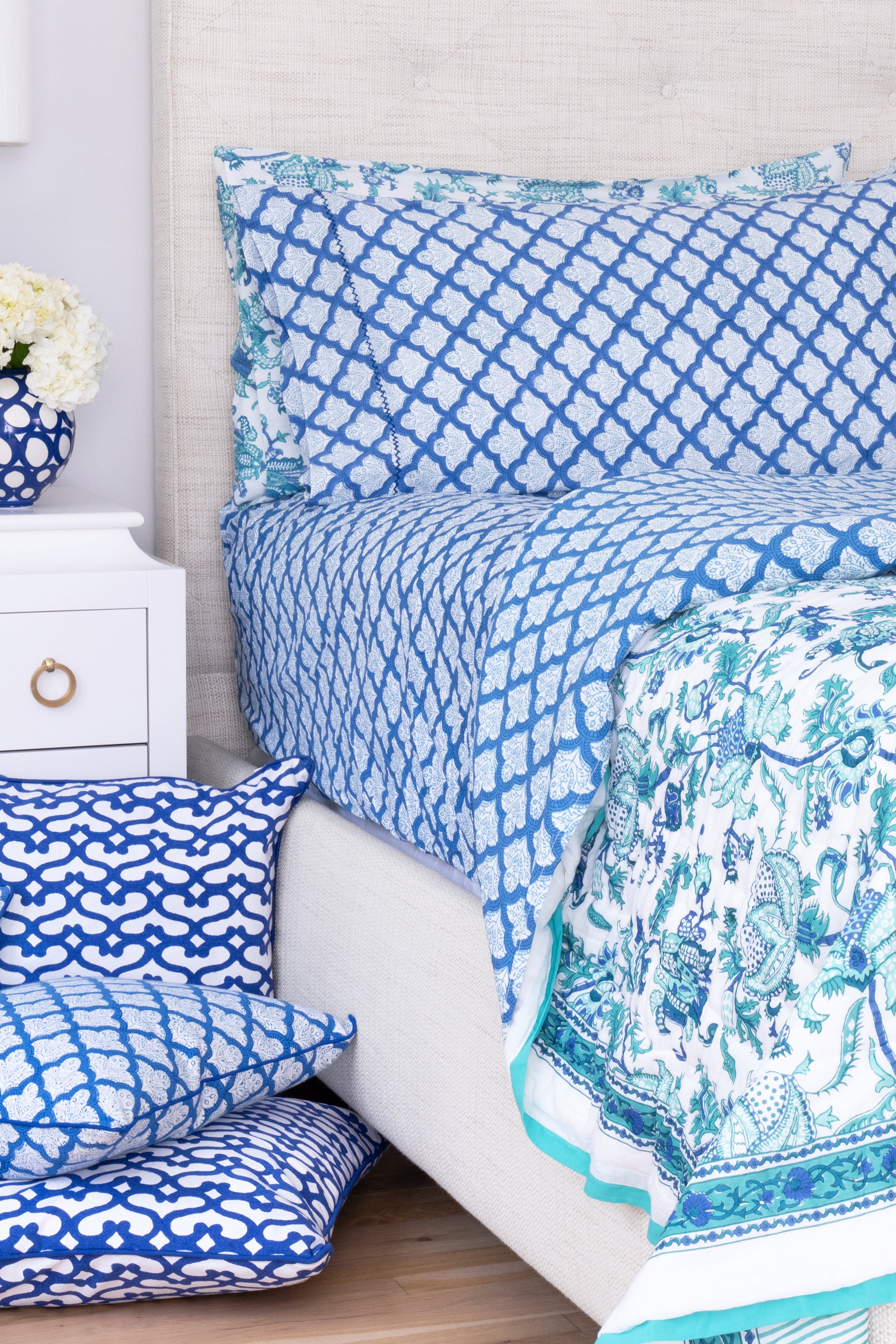 Turn any bedroom into a vibrant and comfortable retreat with our block-printed Jemina Sheet Set. This 4-piece cotton set features a new take on our classic print and includes a flat sheet, fitted sheet, and two pillowcases.