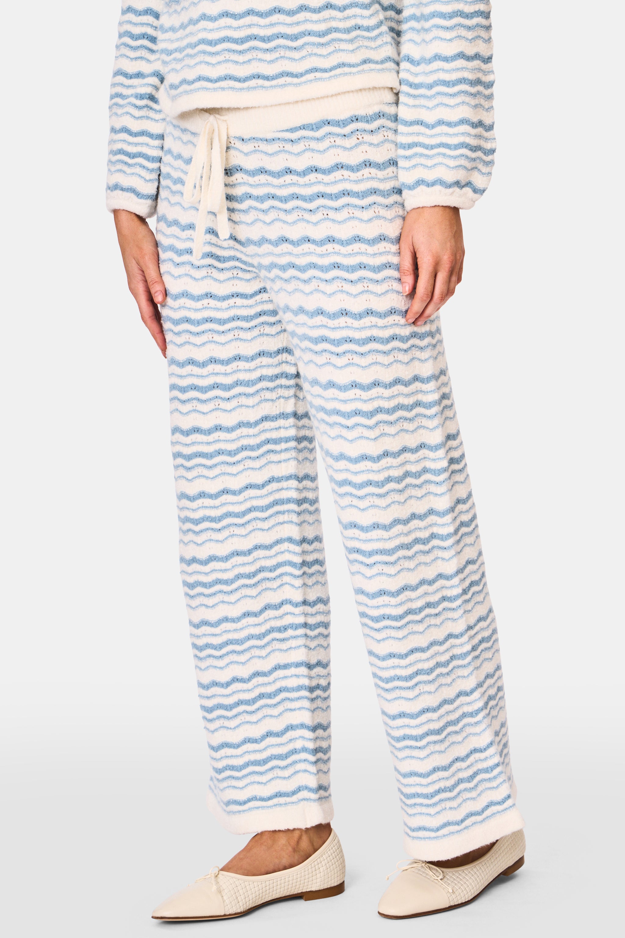 Chill vibes ahead! You'll be living in the cotton cashmere Gaia knit pants all season. They're soft and cozy but not too heavy for a warm fall day and the high-waisted silhouette with a drawstring waist makes comfort key without sacrificing style. Pair them with the matching Georgie Sweater for a maximalist moment.