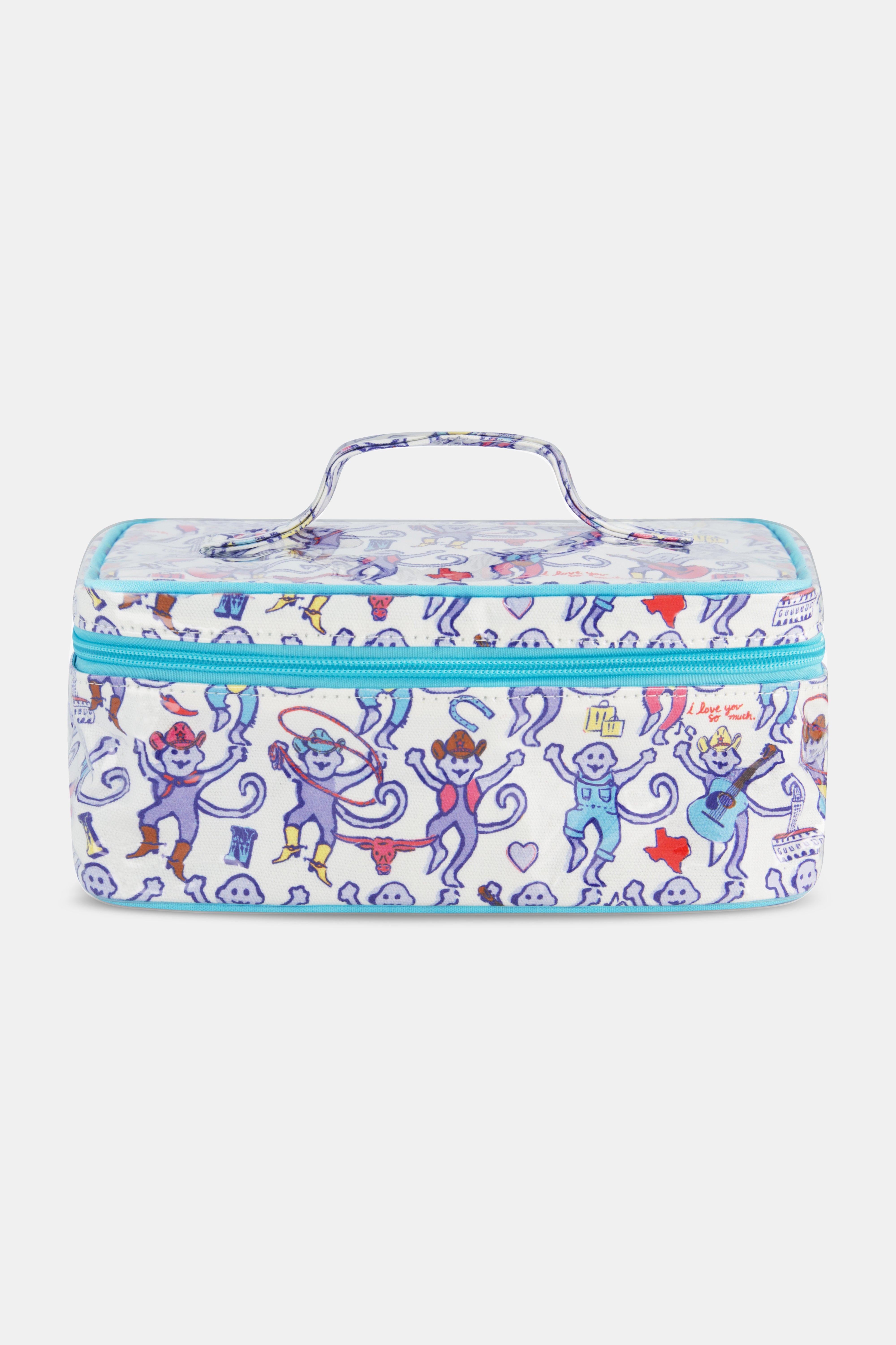 Yee haw! Saddle up for a little trip to Texas with this cheeky illustrated cosmetic case. It won't fit a cowboy hat, but it will fit your go-to glam routine! The top handle and zip-around case make it ideal for travel or at-home use.