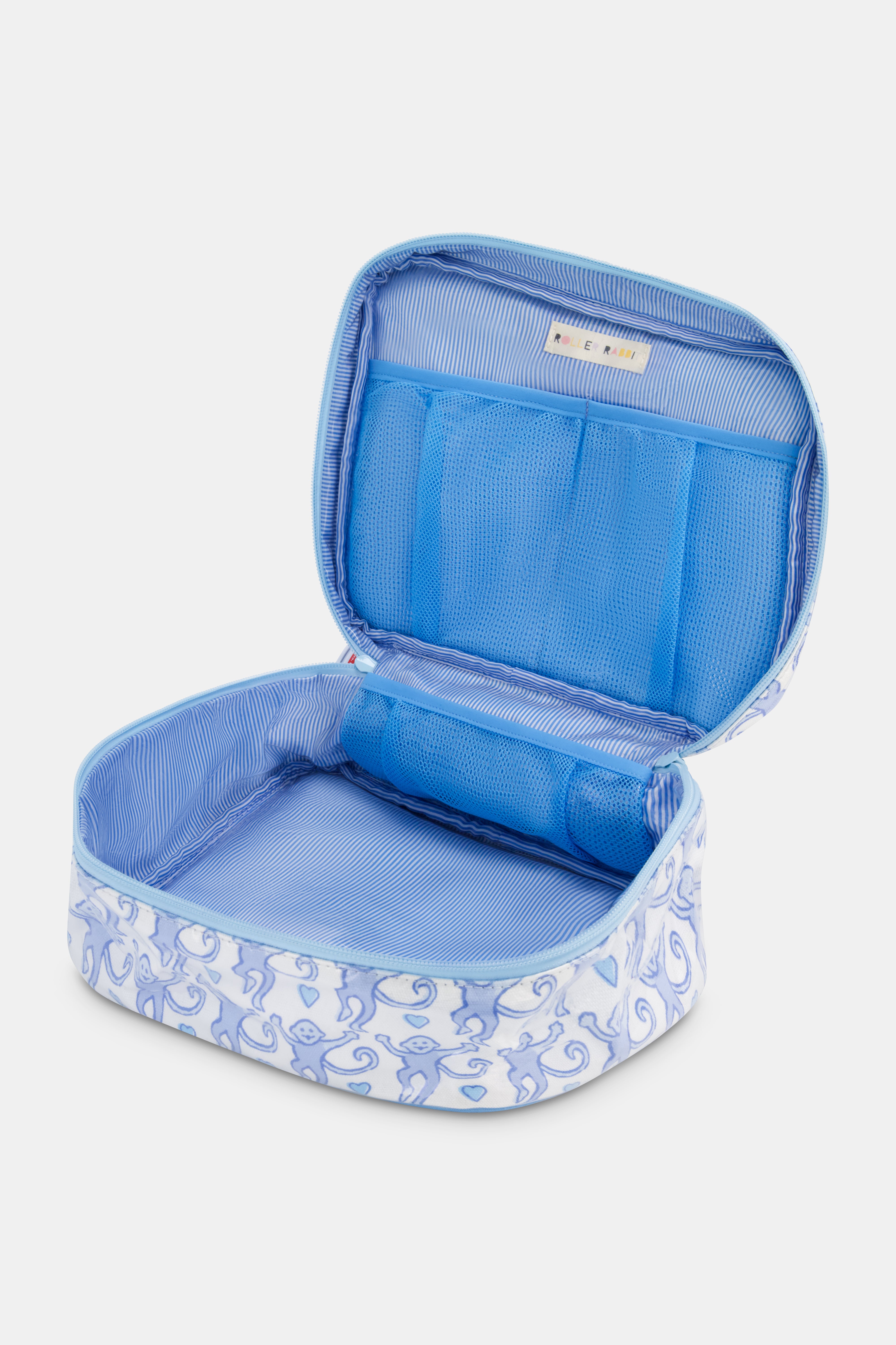 Packing will become leisurely rather than a chore with the Lovely Monkey Carryall Case. This is the perfect travel companion for all your bulkier items; hair appliances, vitamins, and chargers... it can fit them all! Featuring a zipper closure and water-resistant polyvinyl-covered canvas, this carryall will be your new best friend.