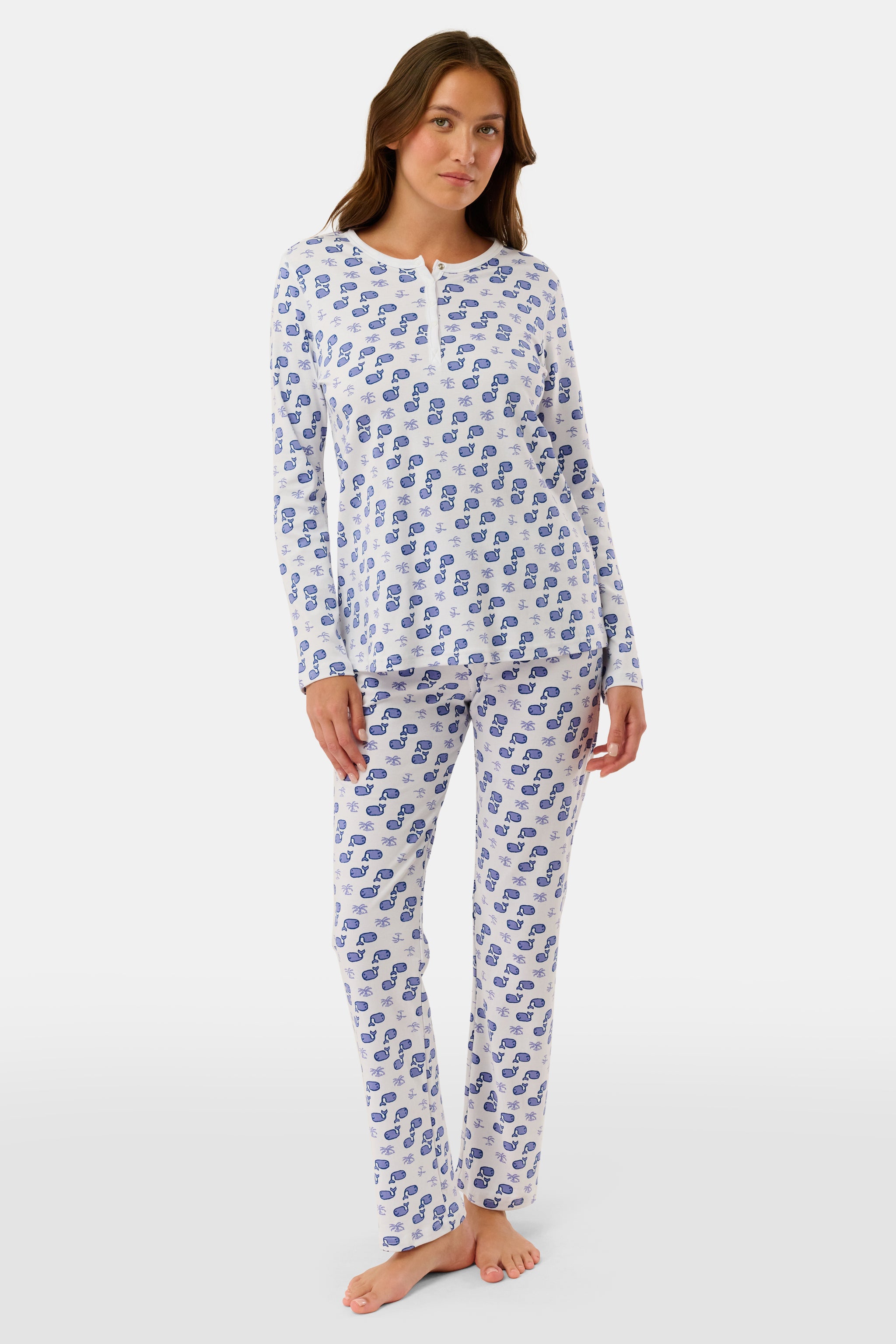Make bedtime fun and cozy with our jersey pajama set that includes a long-sleeve top with a placket at the neckline and matching relaxed-fit pants. Featuring our soft and breathable cotton fabric with the original charming Moby print.