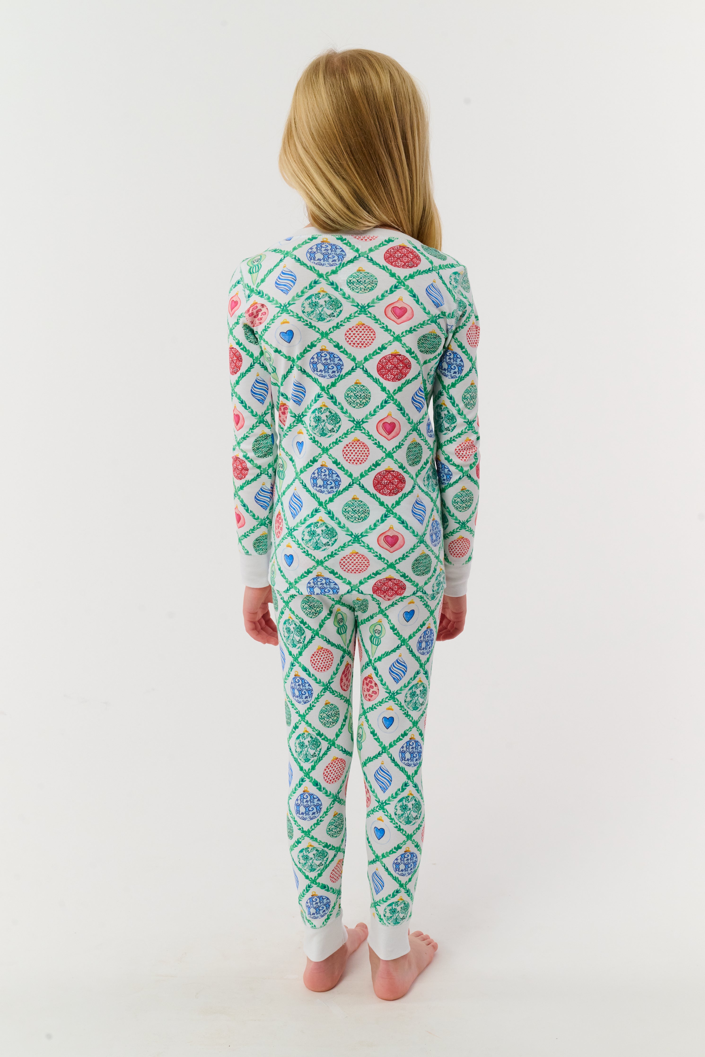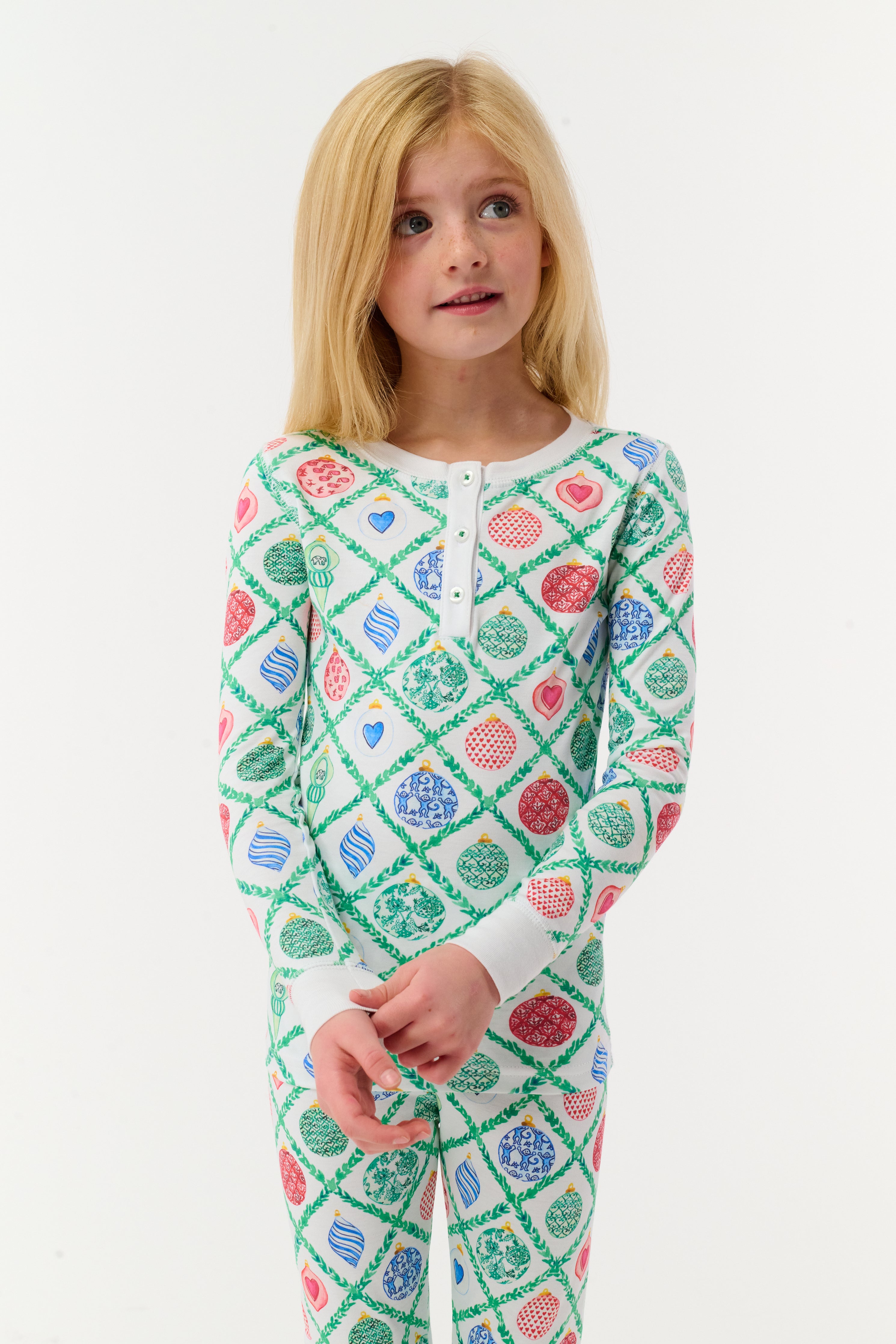 After a fun-filled day of decking the halls, wind down for bedtime in our Ornament Trellis-print Kids Pajamas, the ever-classic two-piece style in dreamy-soft Pima cotton. They'll love the cheery, festive print and you'll love the quality and durability—one set will last from sibling to sibling!