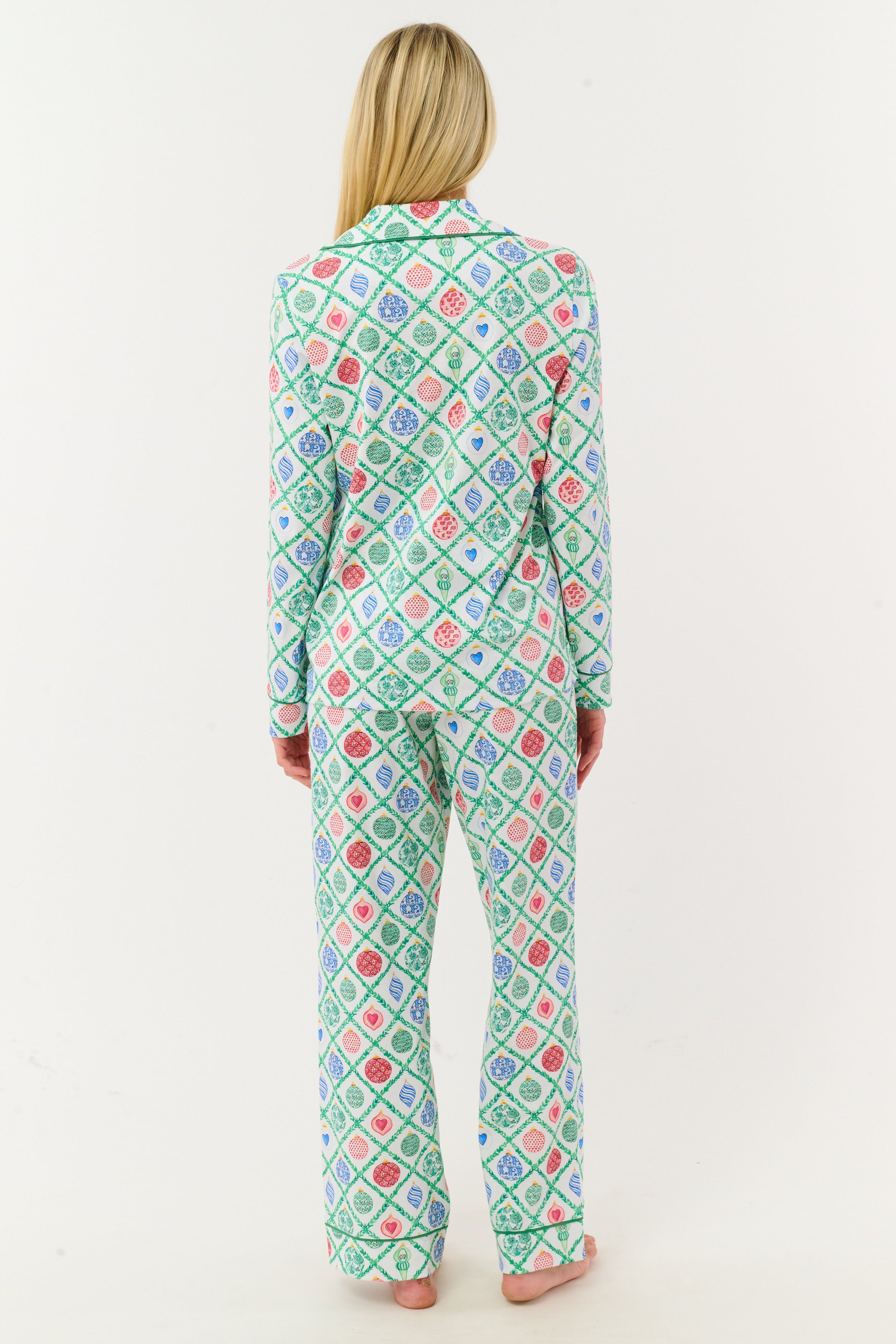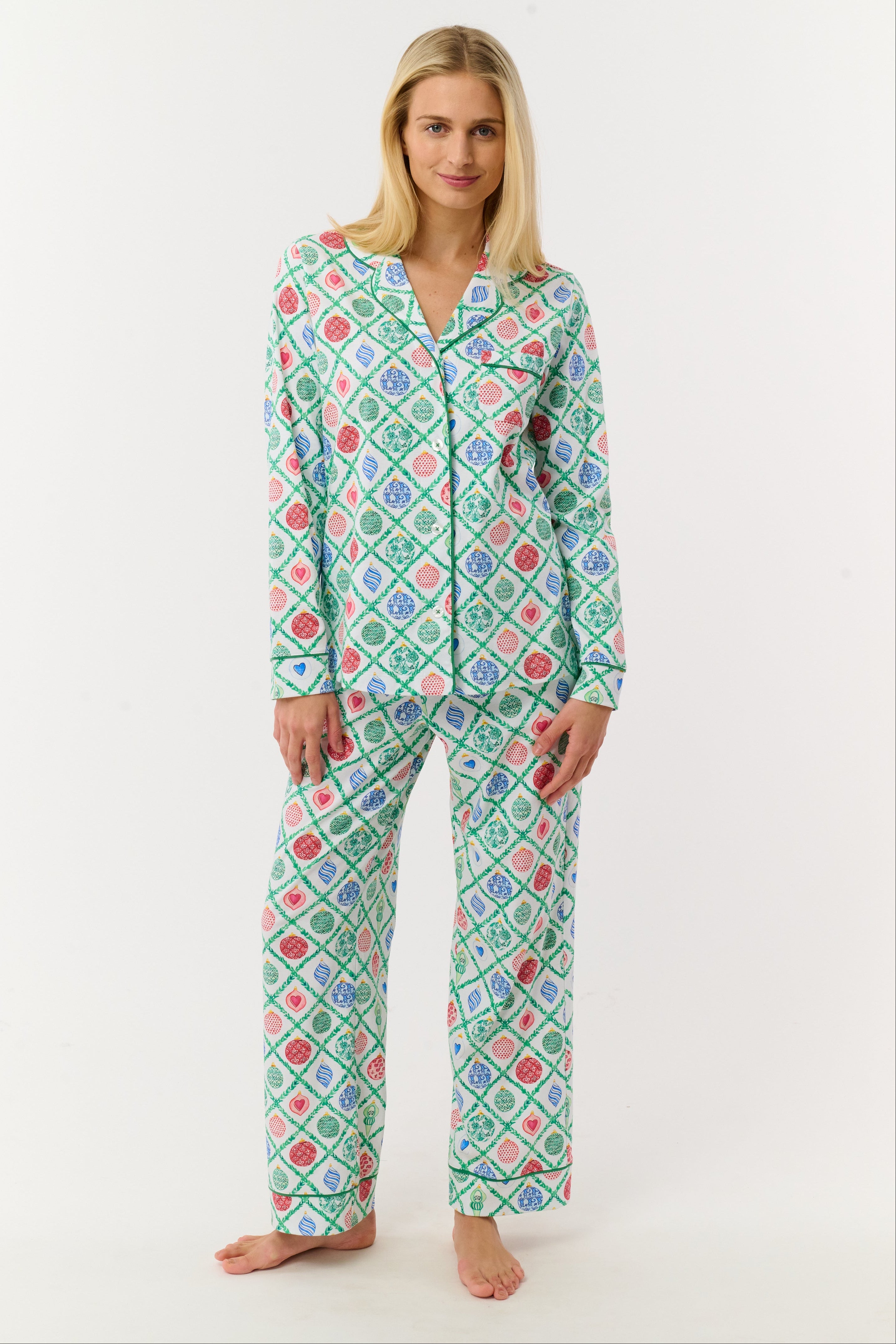 Deck the halls—and your PJs!—with charming ornaments in delightfully festive shades. Our long-sleeved Ornament Trellis Women's Polo PJs make the holiday season even more magical.