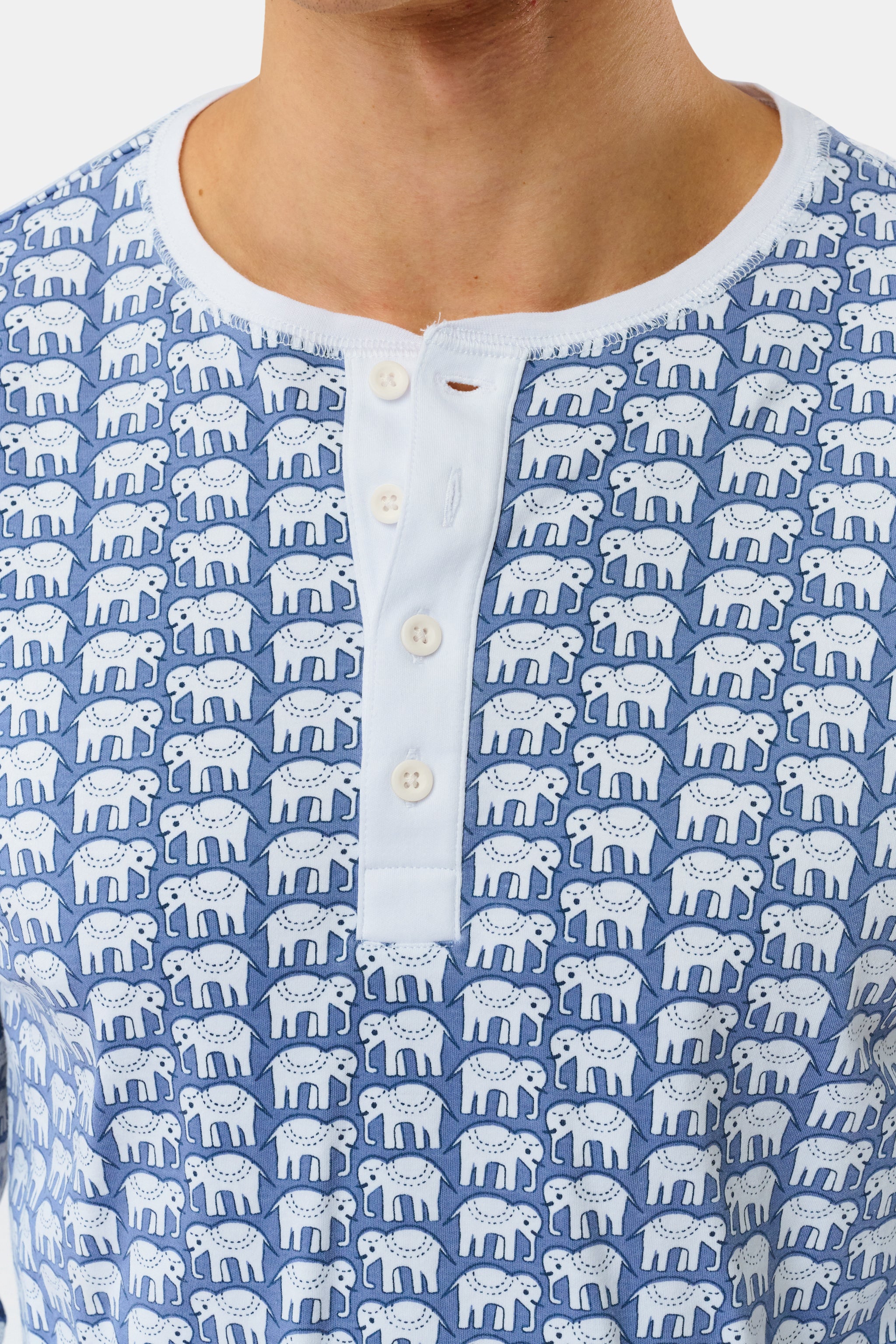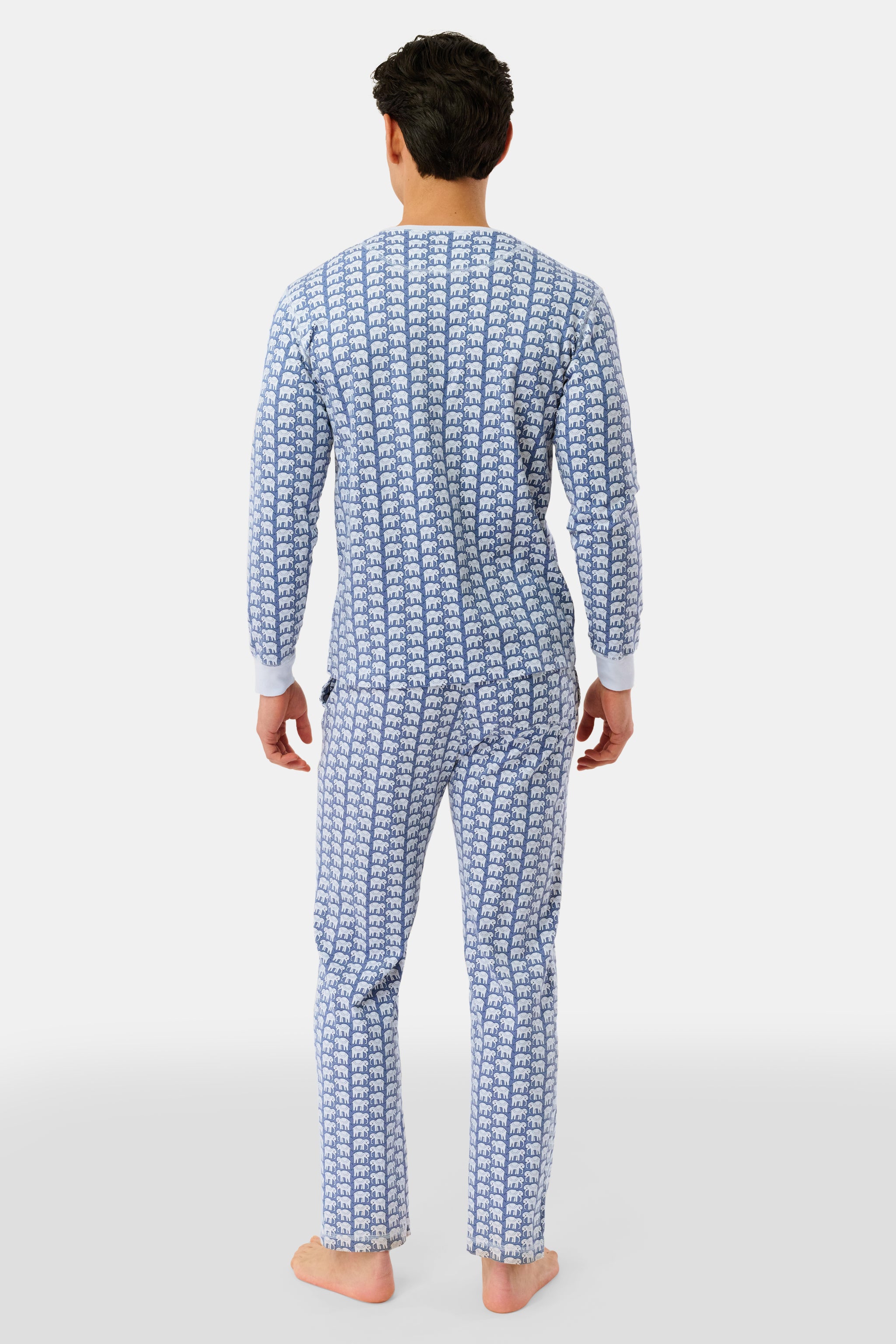 The whole family can partake in the pajama party fun thanks to our Men's Hathi Spencer Pajamas. Crafted with 100% premium cotton, this pajama set includes a solid long-sleeve top with a button placket and drawstring pants embellished with the original Hathi elephant print, featuring a soft color twist.