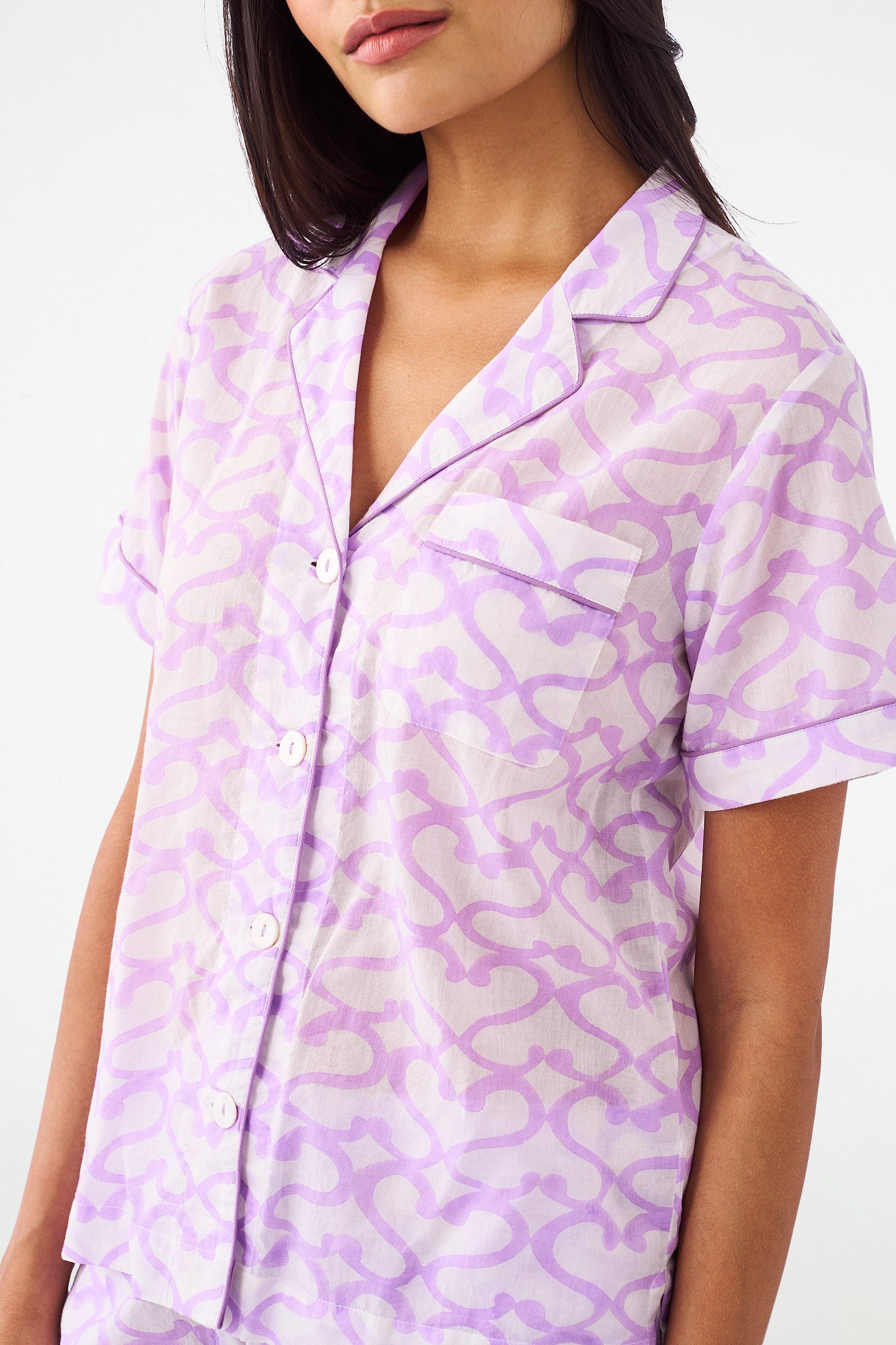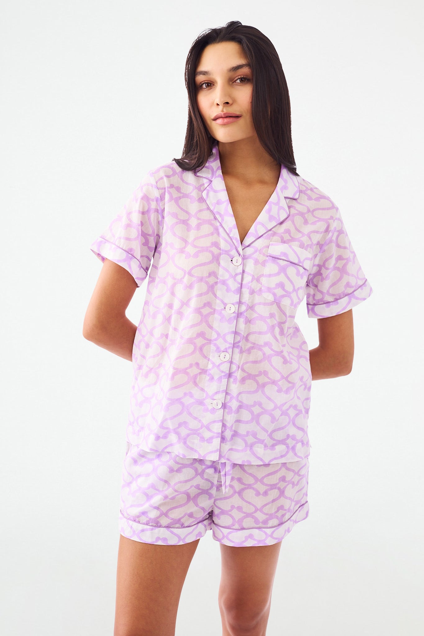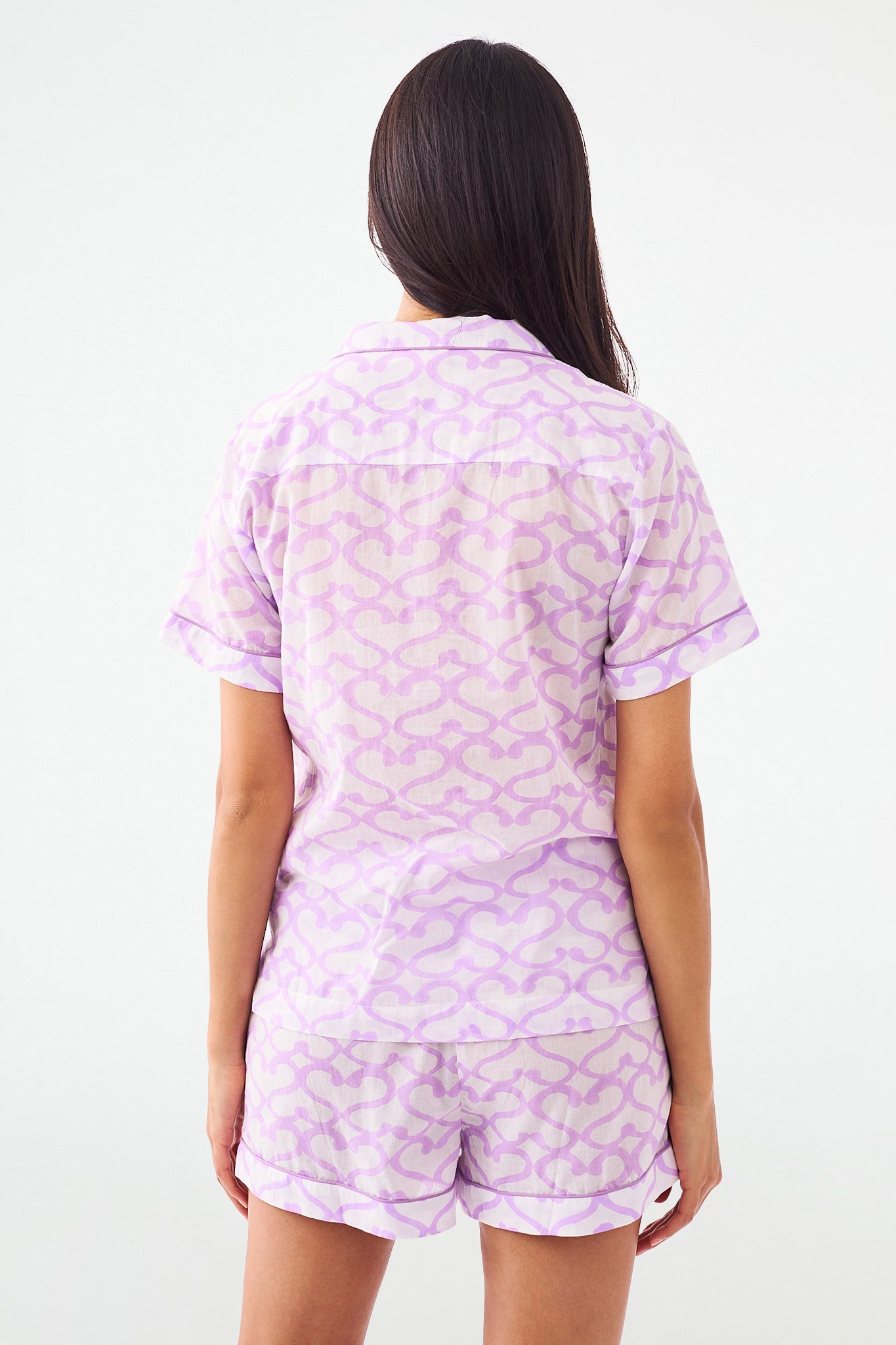 A matching set makes getting ready a (spring) breeze. Our Livy Set features a cute button-down top and shorts in a lavender-and-white Big Cata print. Wear it with sandals and a tote bag for a trip to the farmers market.