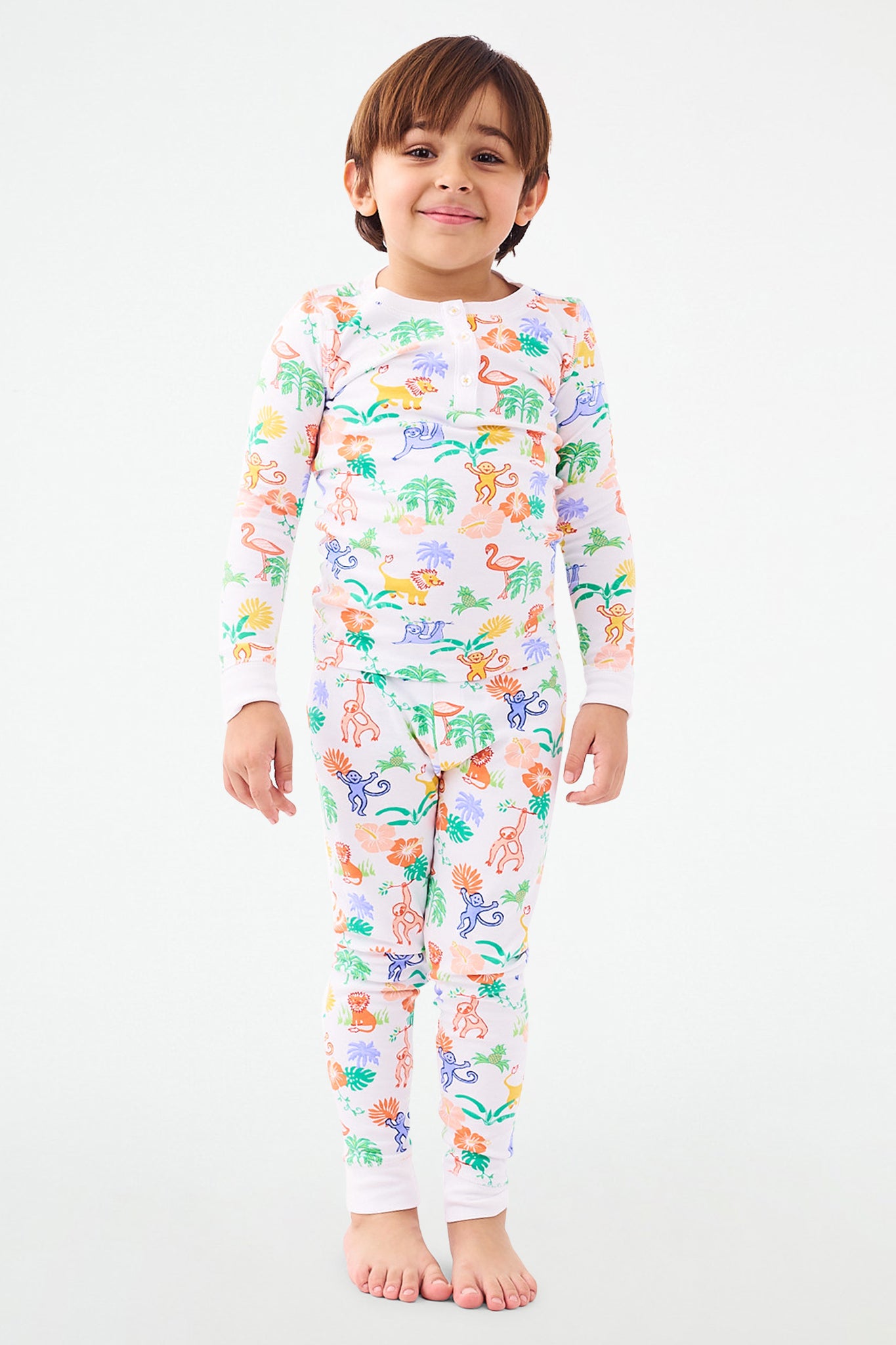 Your little animal lover won't want to take these PJs off! With a bright, colorful jungle print and our signature baby soft Pima cotton, the Kids Pajamas are designed for all-day and all-night comfort and cuteness.