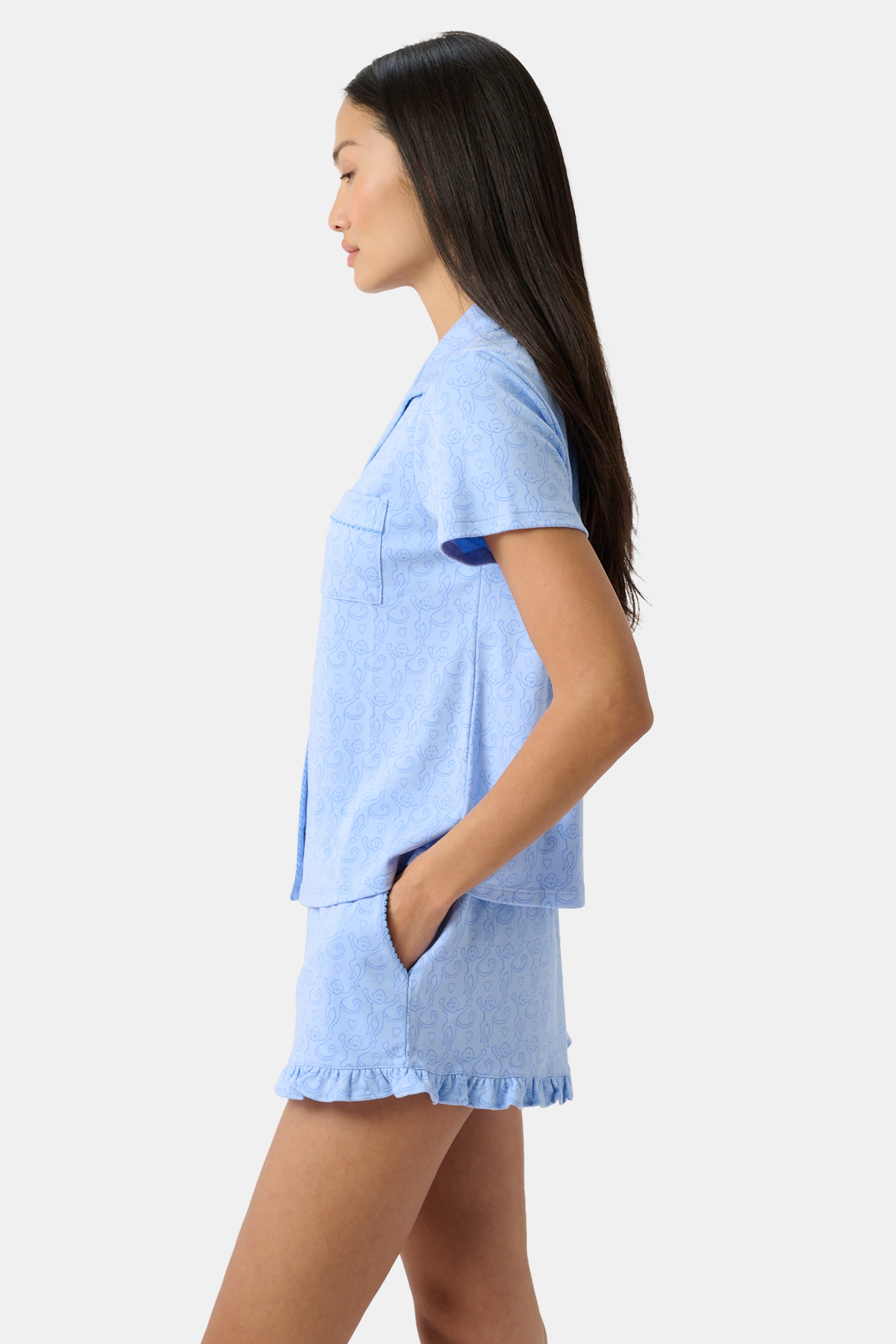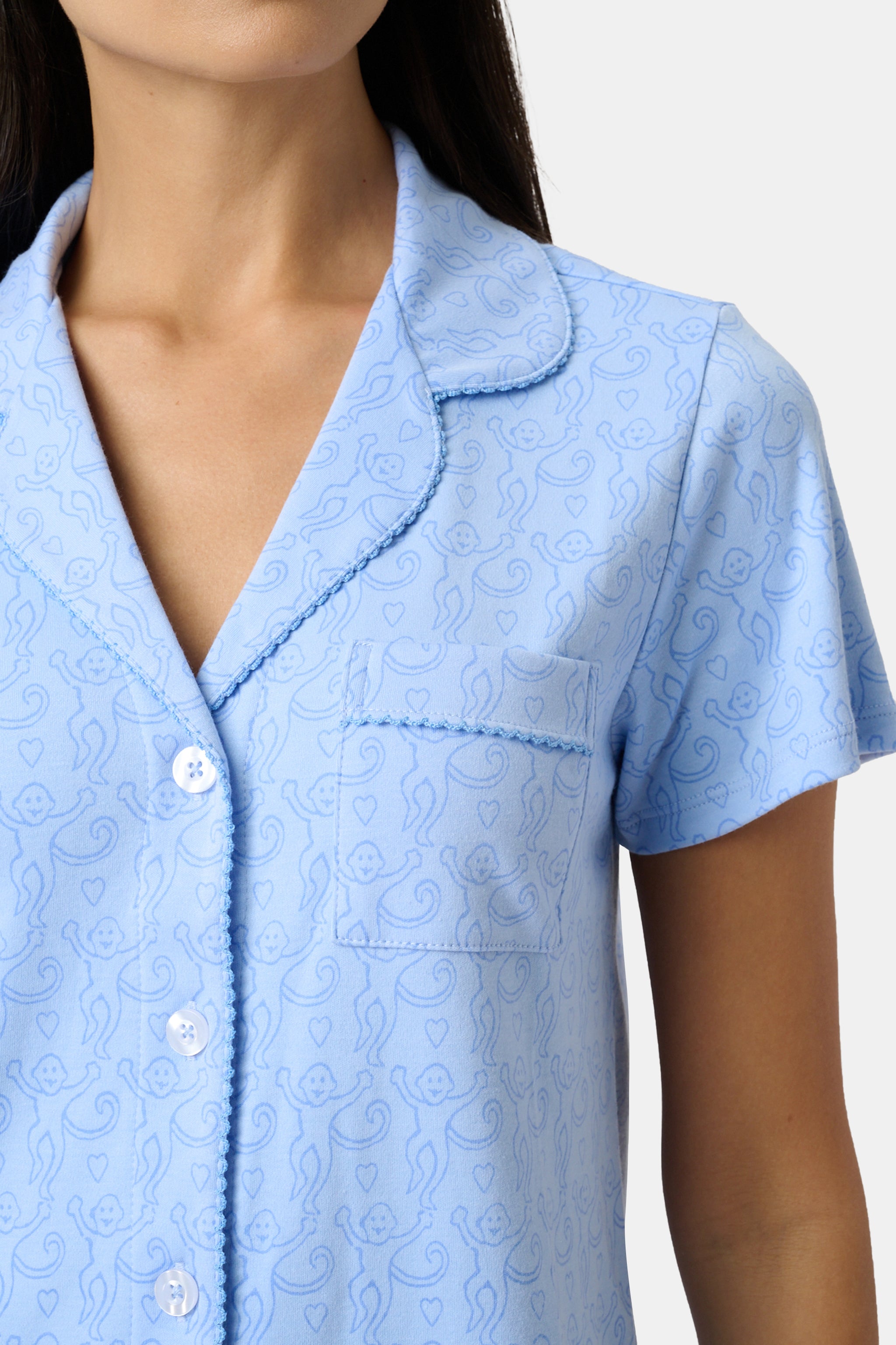 You deserve a little comfort at the end of the day, so unwind in the Wyatt Polo Pajamas, a buttery-soft Pima/Modal blended set in the sweetest Lovely Monkey print.