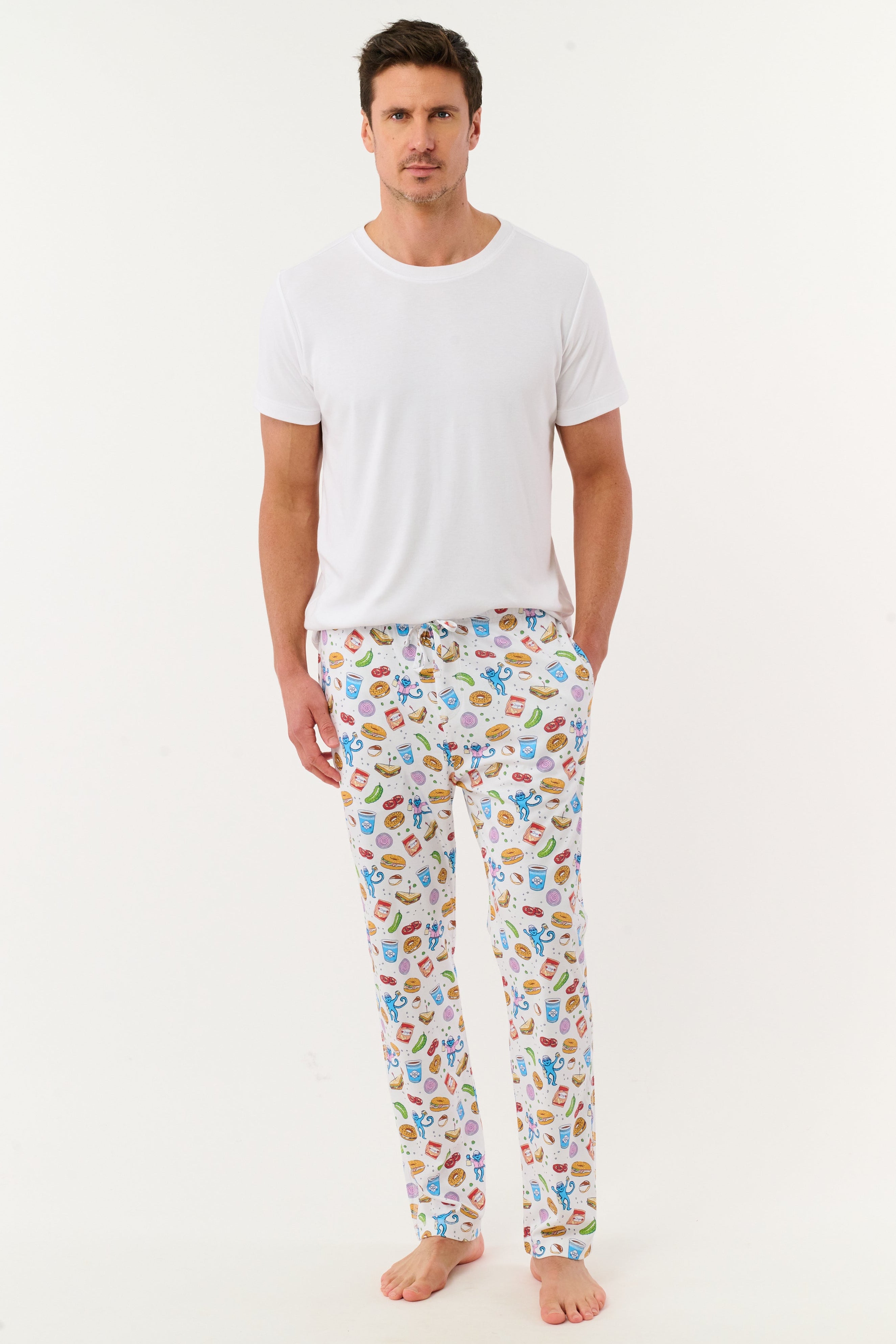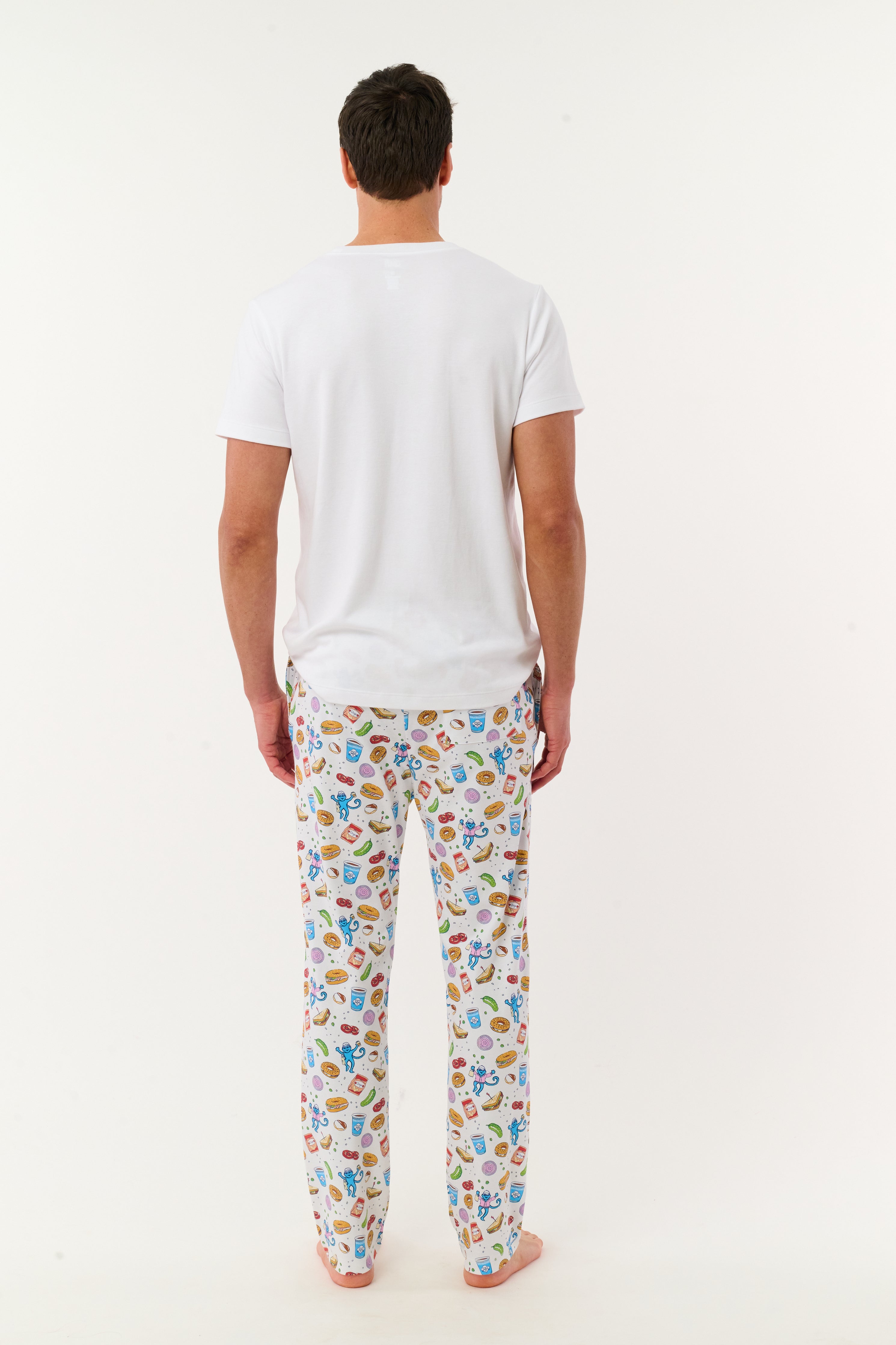 Have breakfast in bed in the Men's Troy Set, a T-shirt and PJ pants duo made for those long, lazy weekends in the city. The Pima interlock cotton tee and printed pants are made for lounging, snoozing, and indulging in your favorite deli bites.